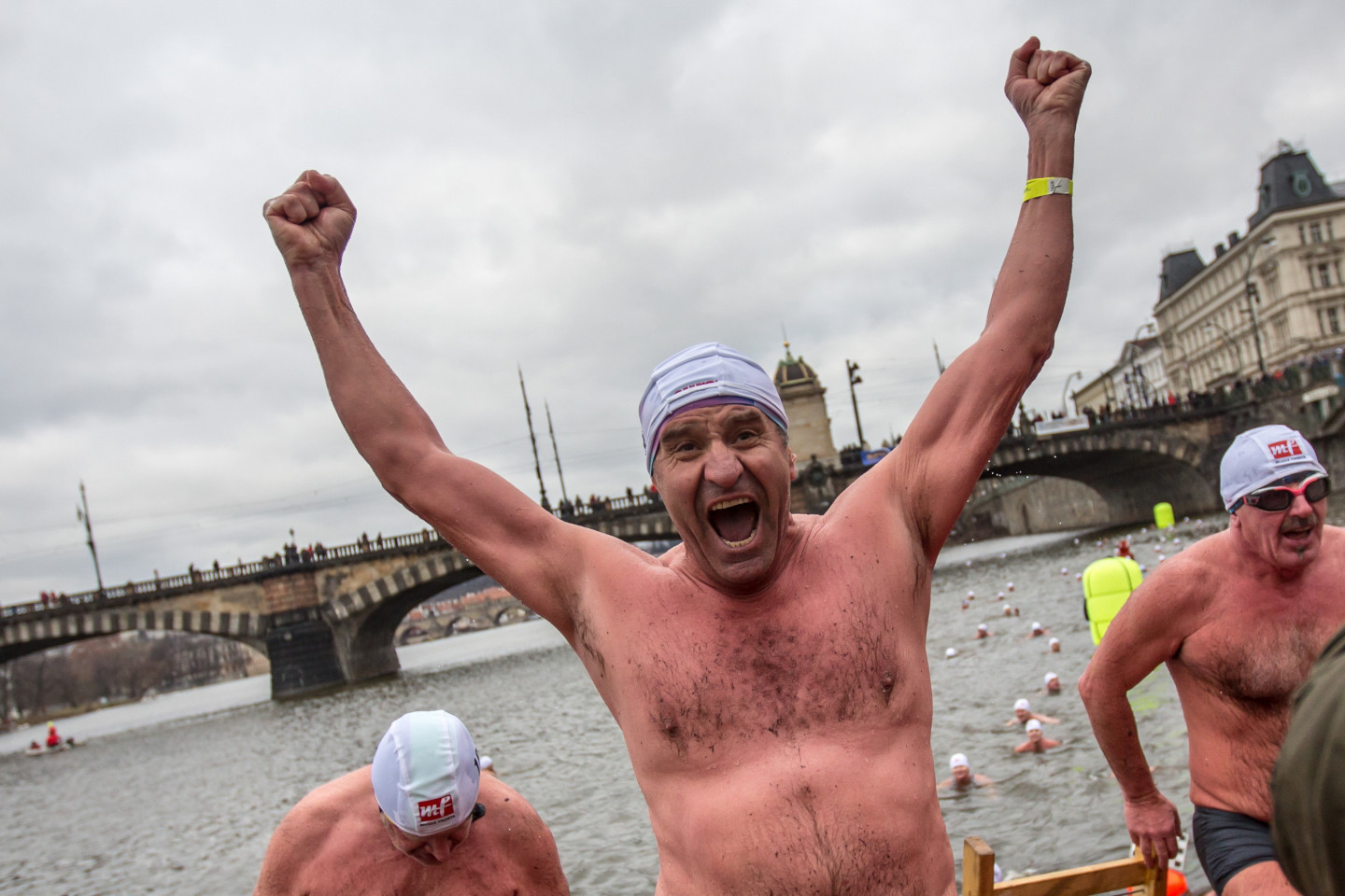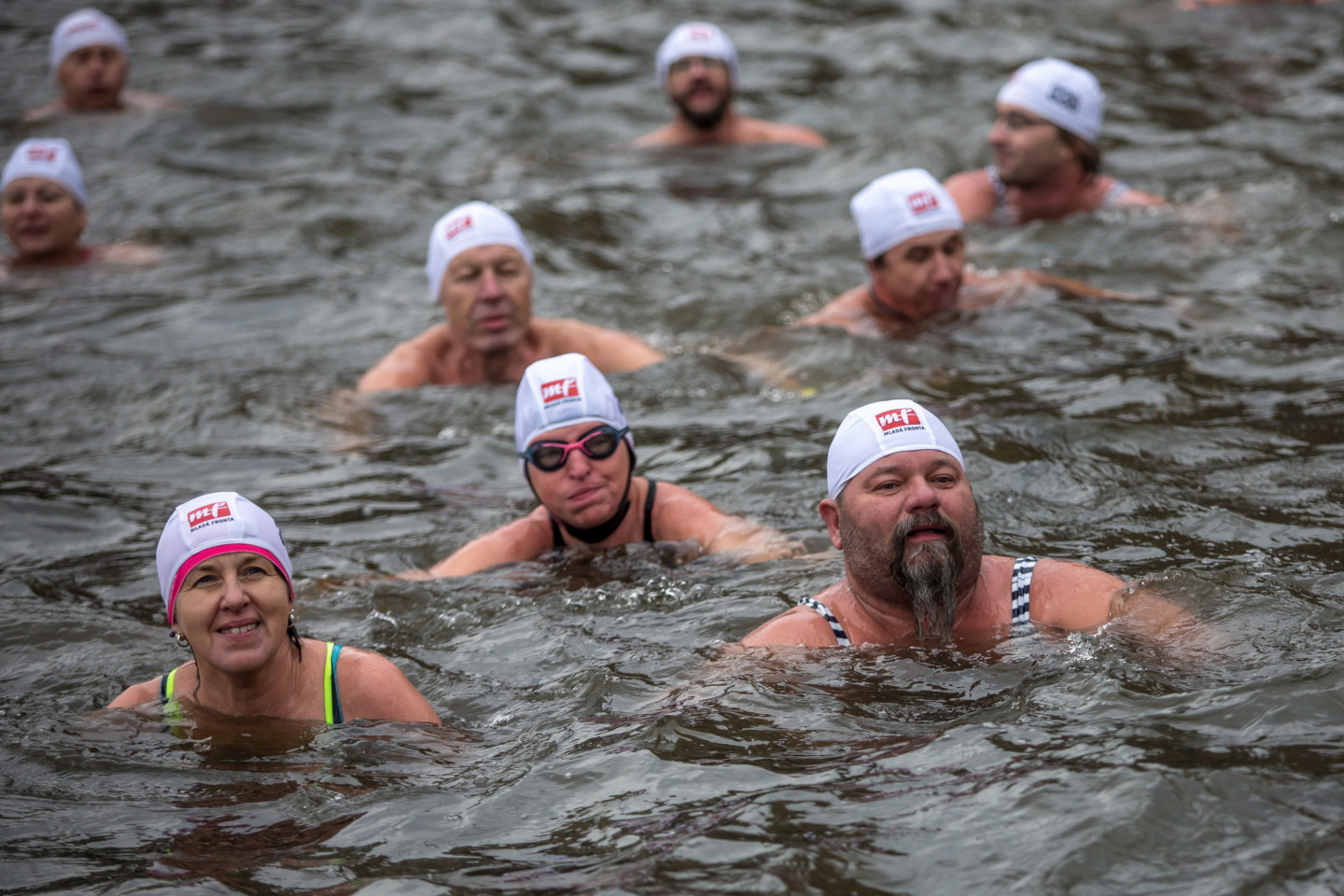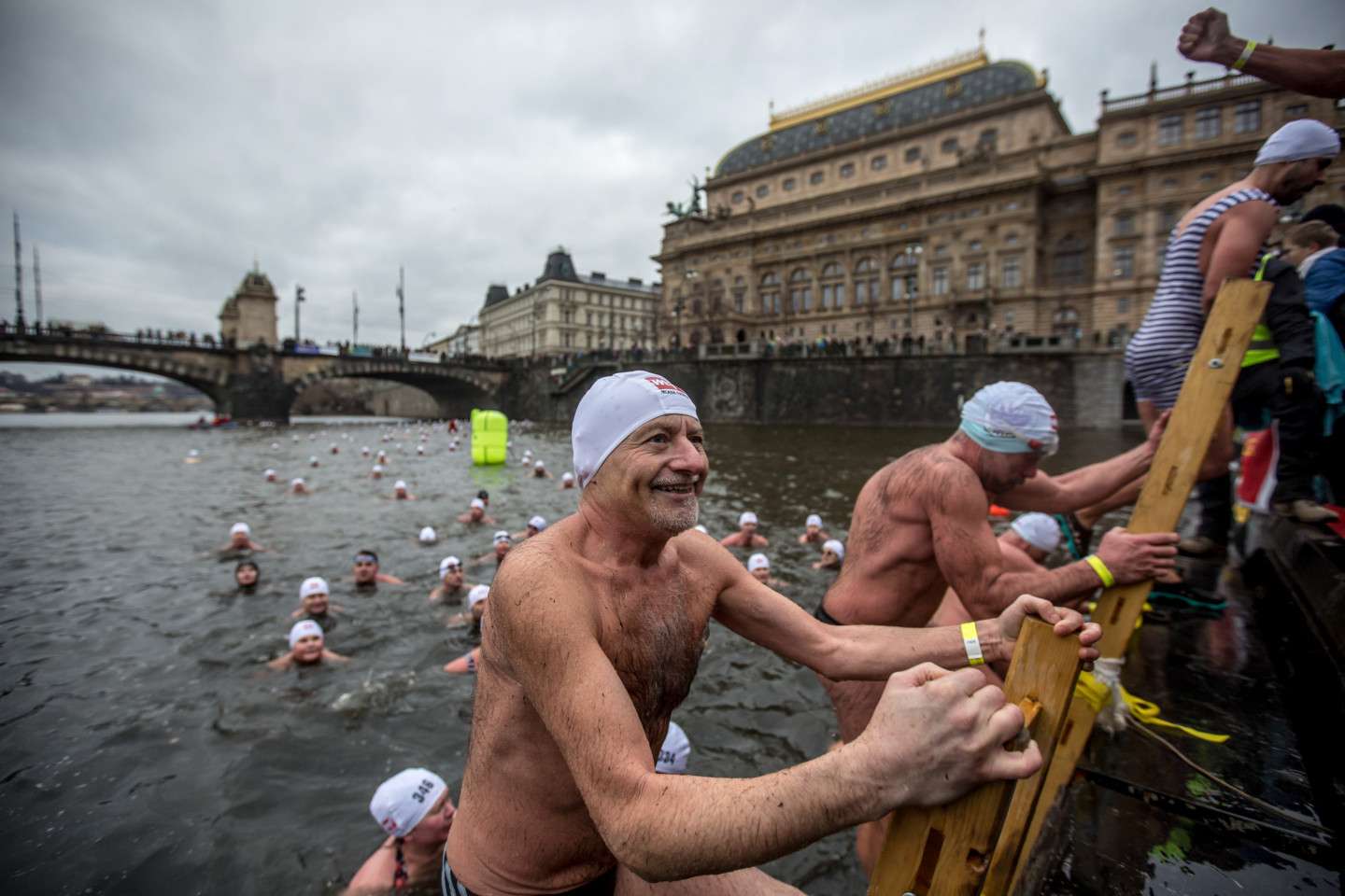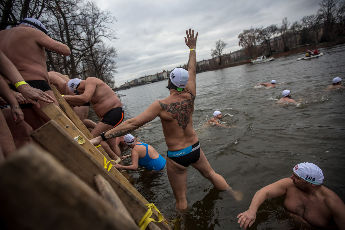 Bezbailīgie čehi Prāgā peldas stindzinoši aukstā ūdenī