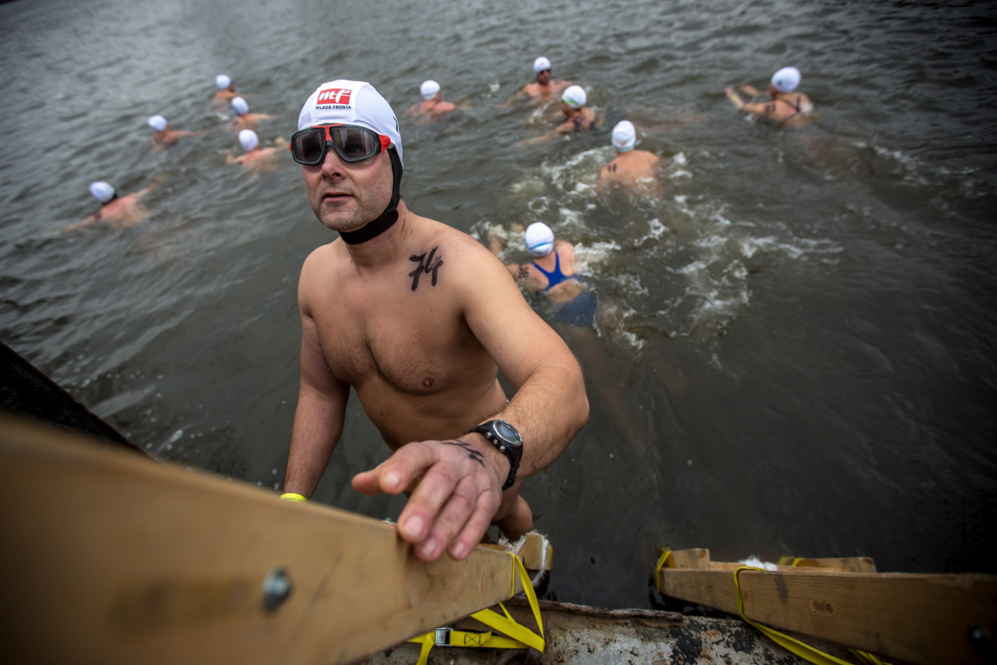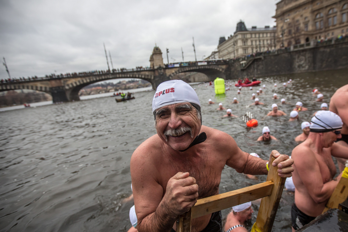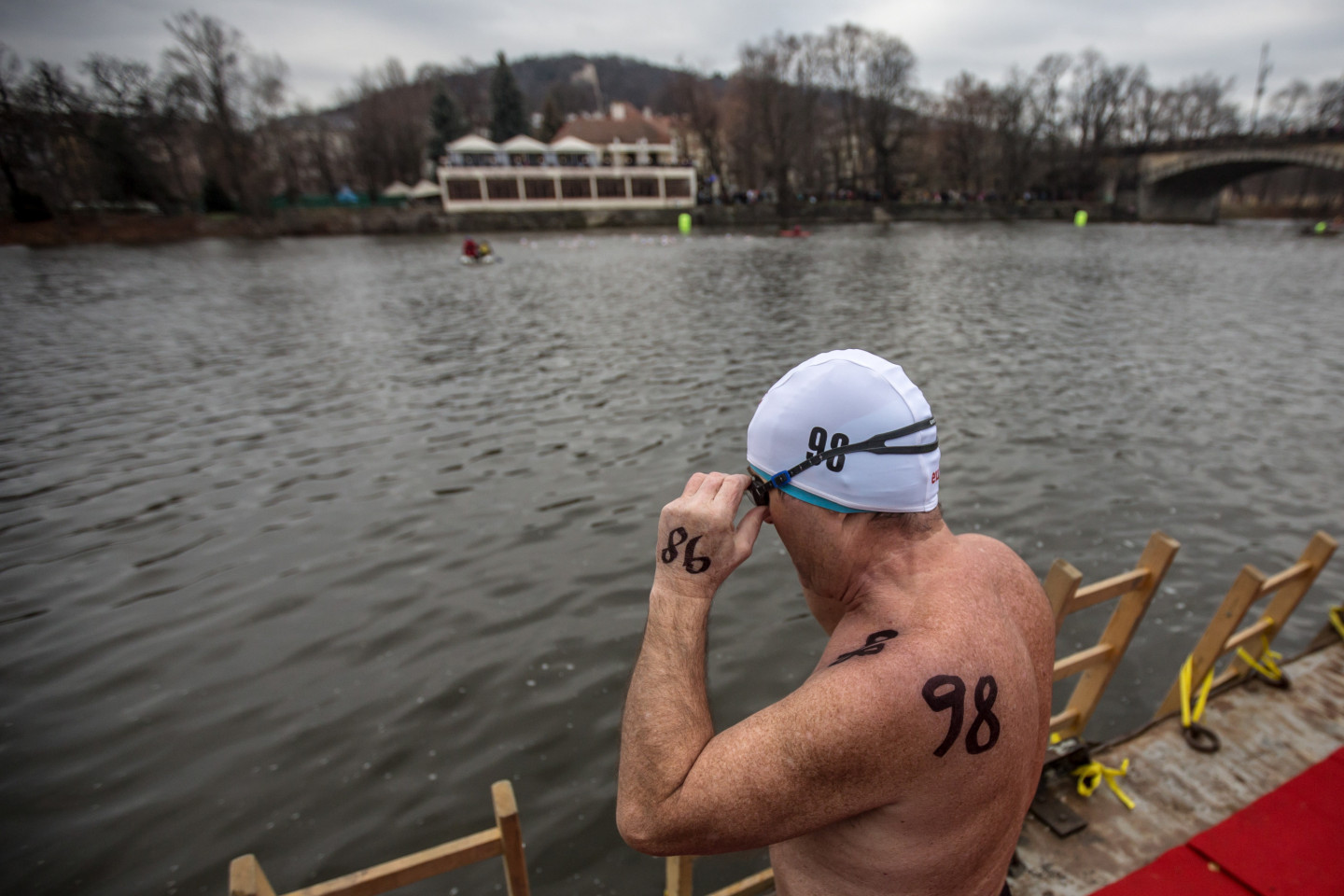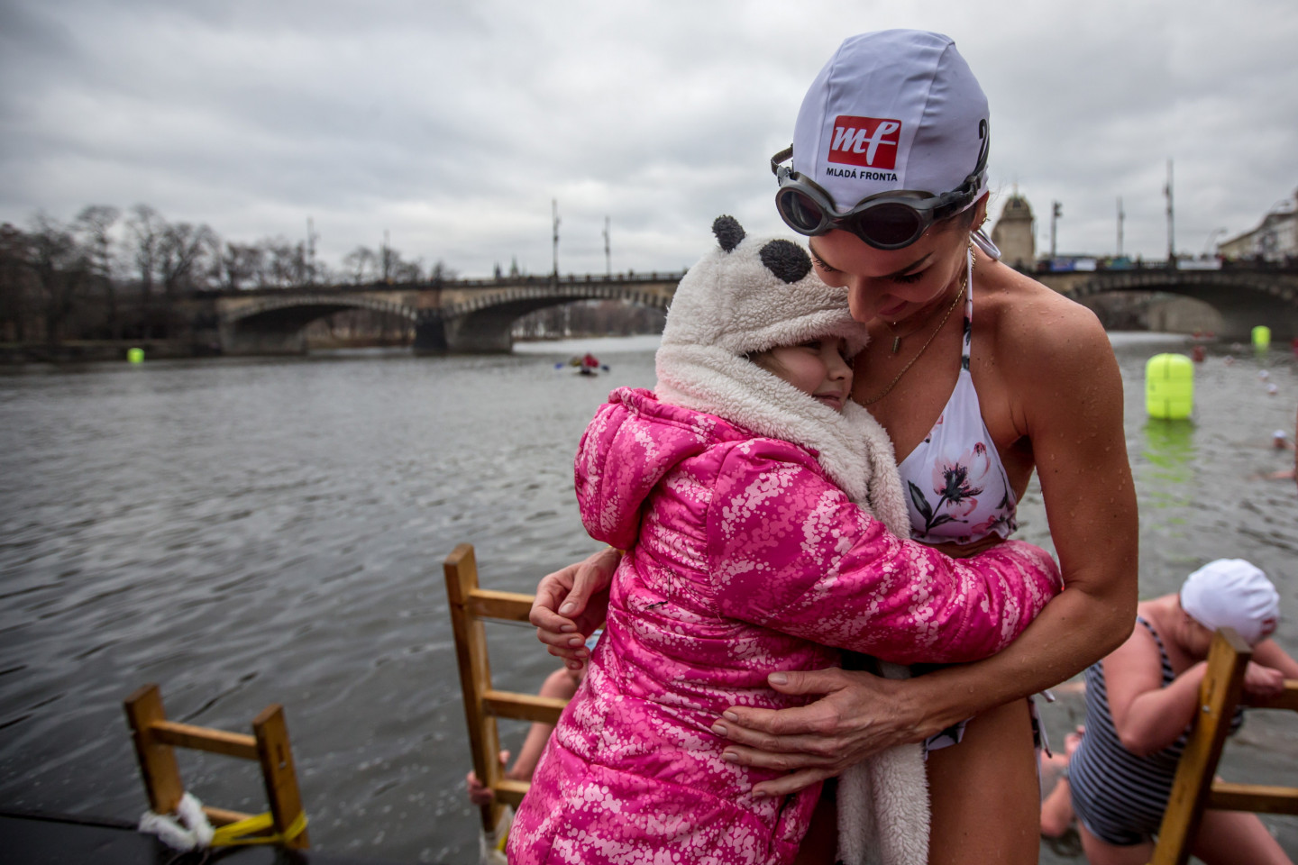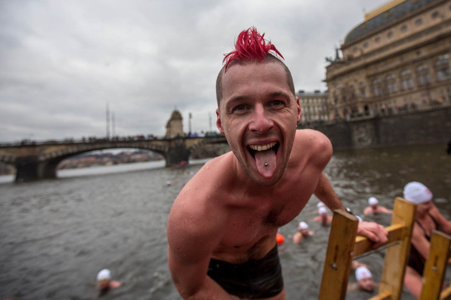 Bezbailīgie čehi Prāgā peldas stindzinoši aukstā ūdenī