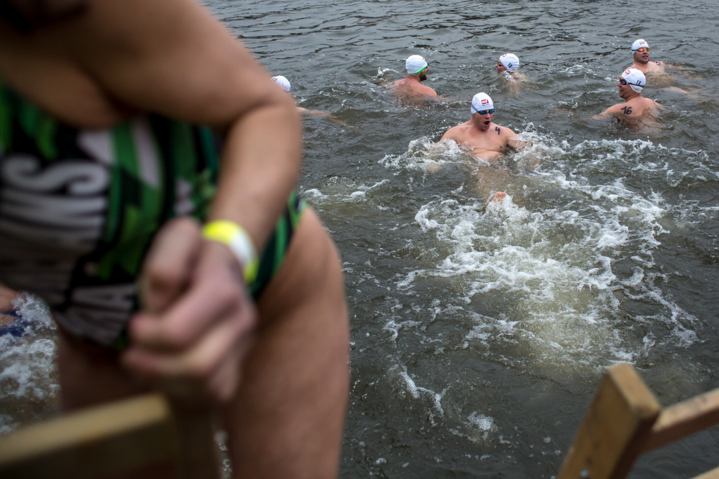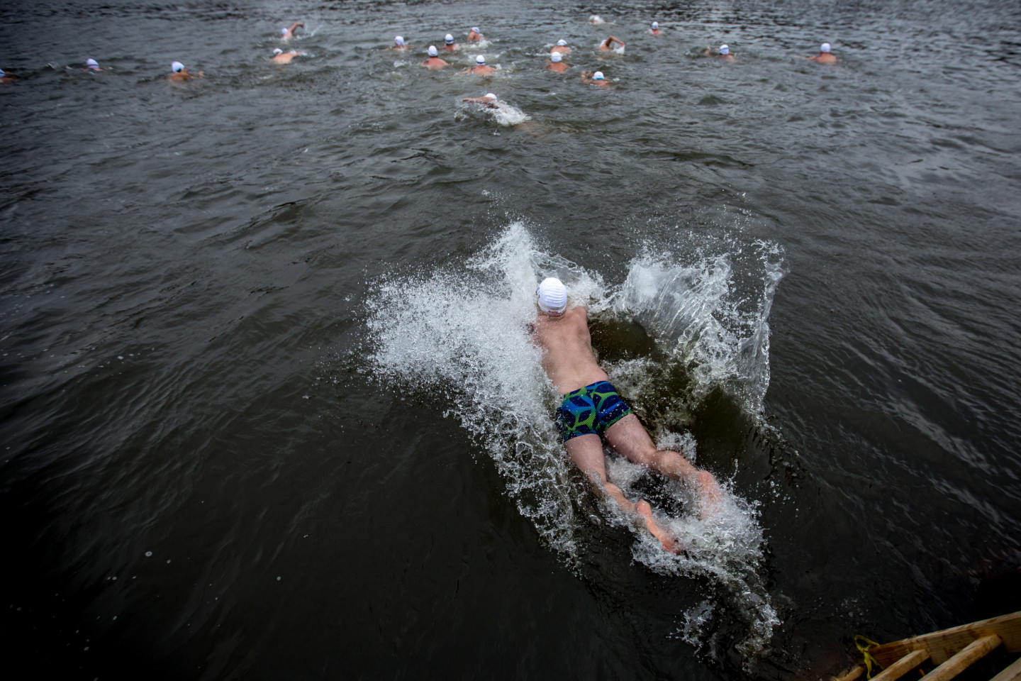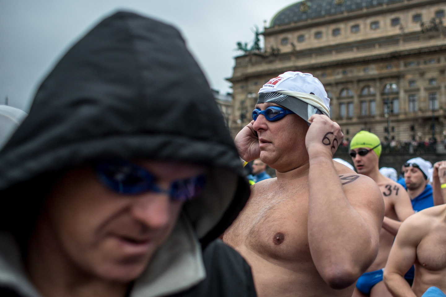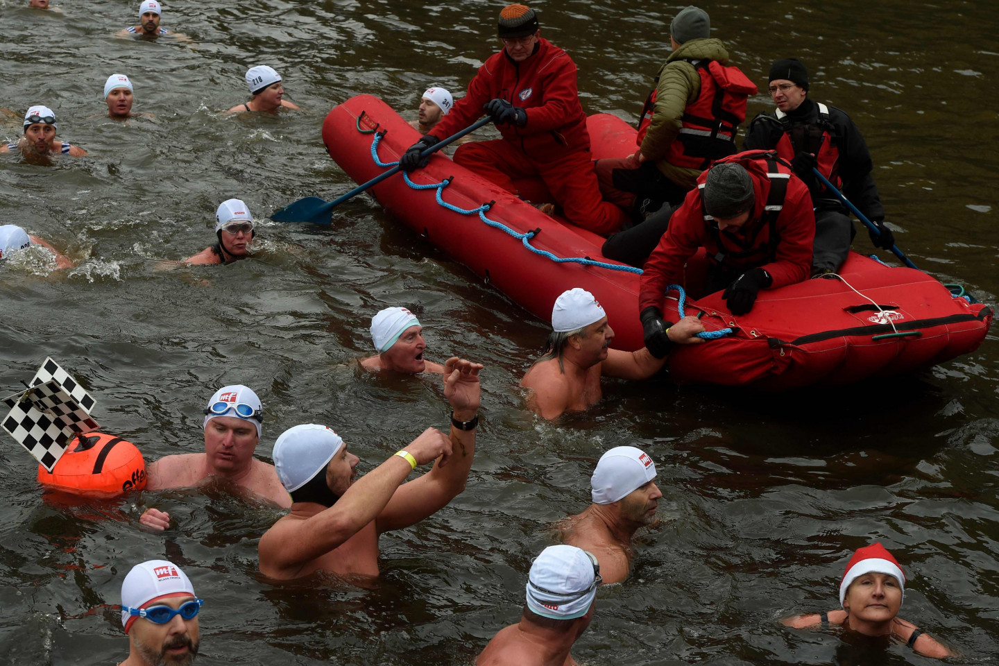 Bezbailīgie čehi Prāgā peldas stindzinoši aukstā ūdenī