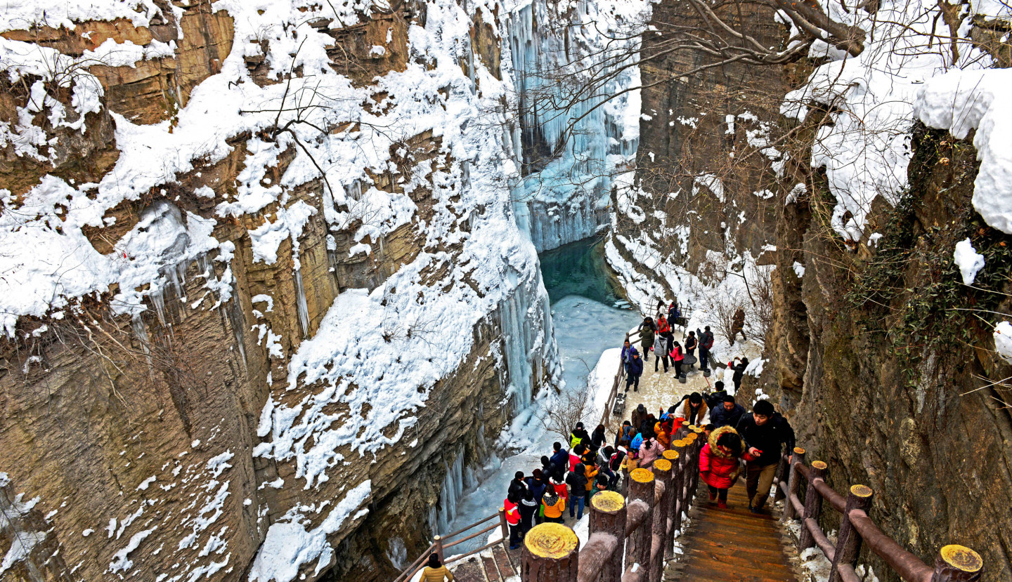 Skaisti kadri no ziemas ainavas kalnos Ķīnā