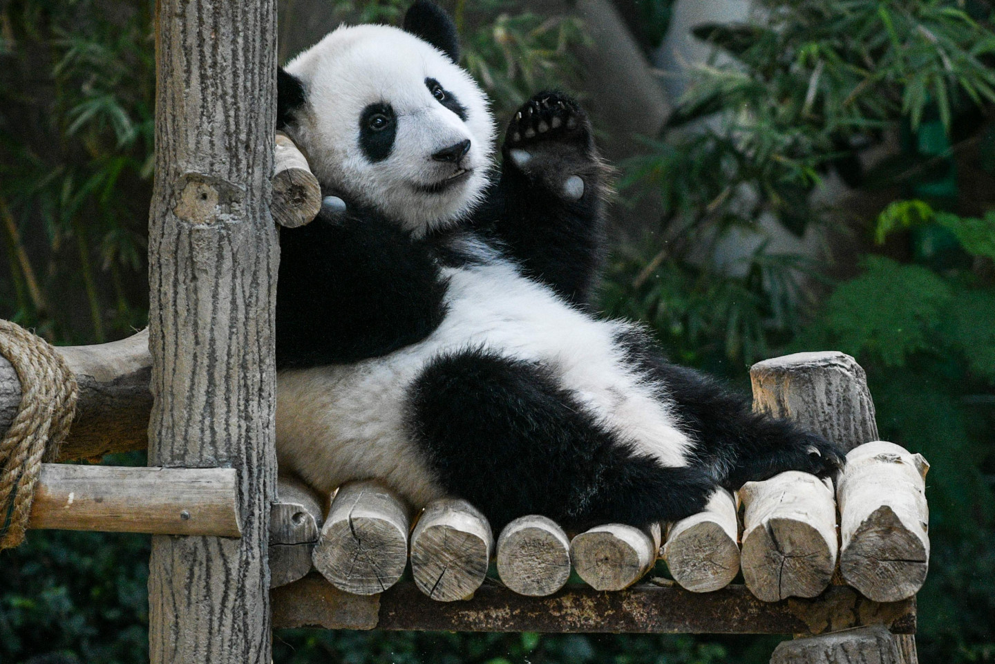 Panda laiskojas zoodārzā Malaizijā