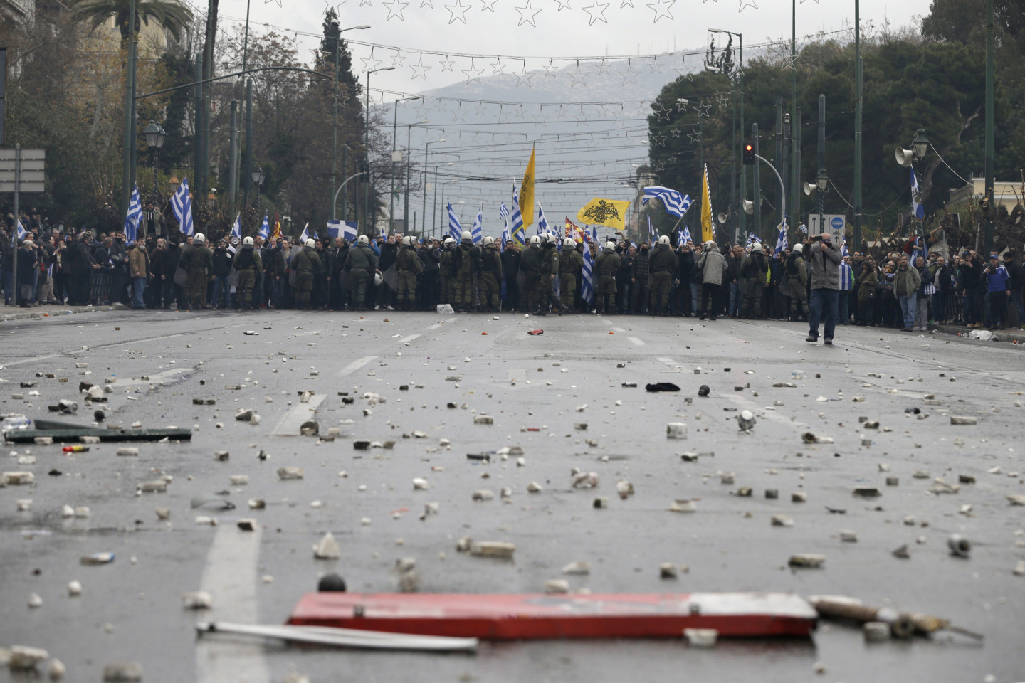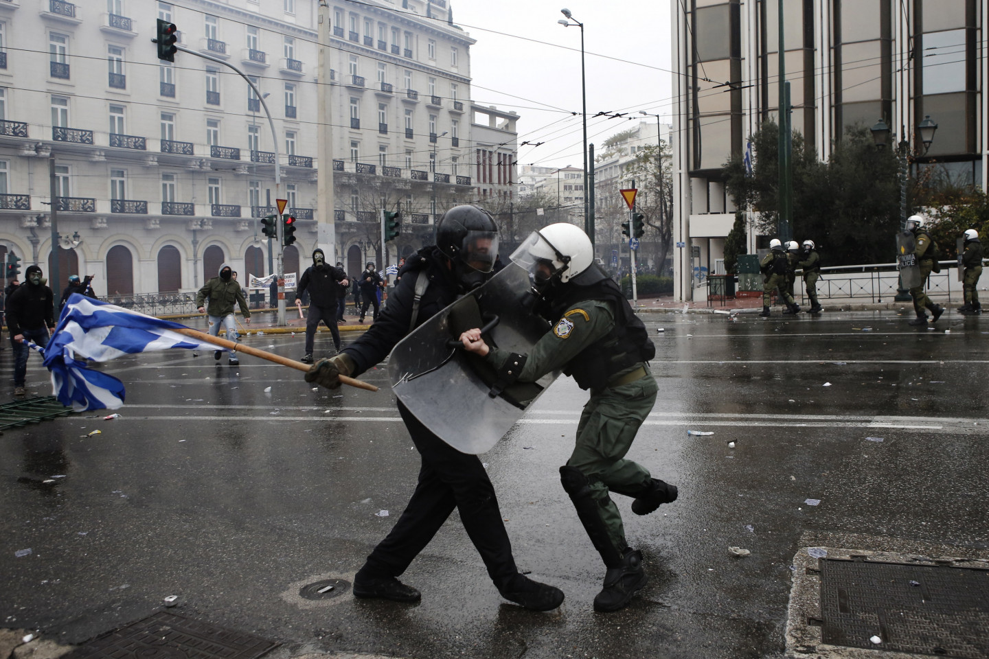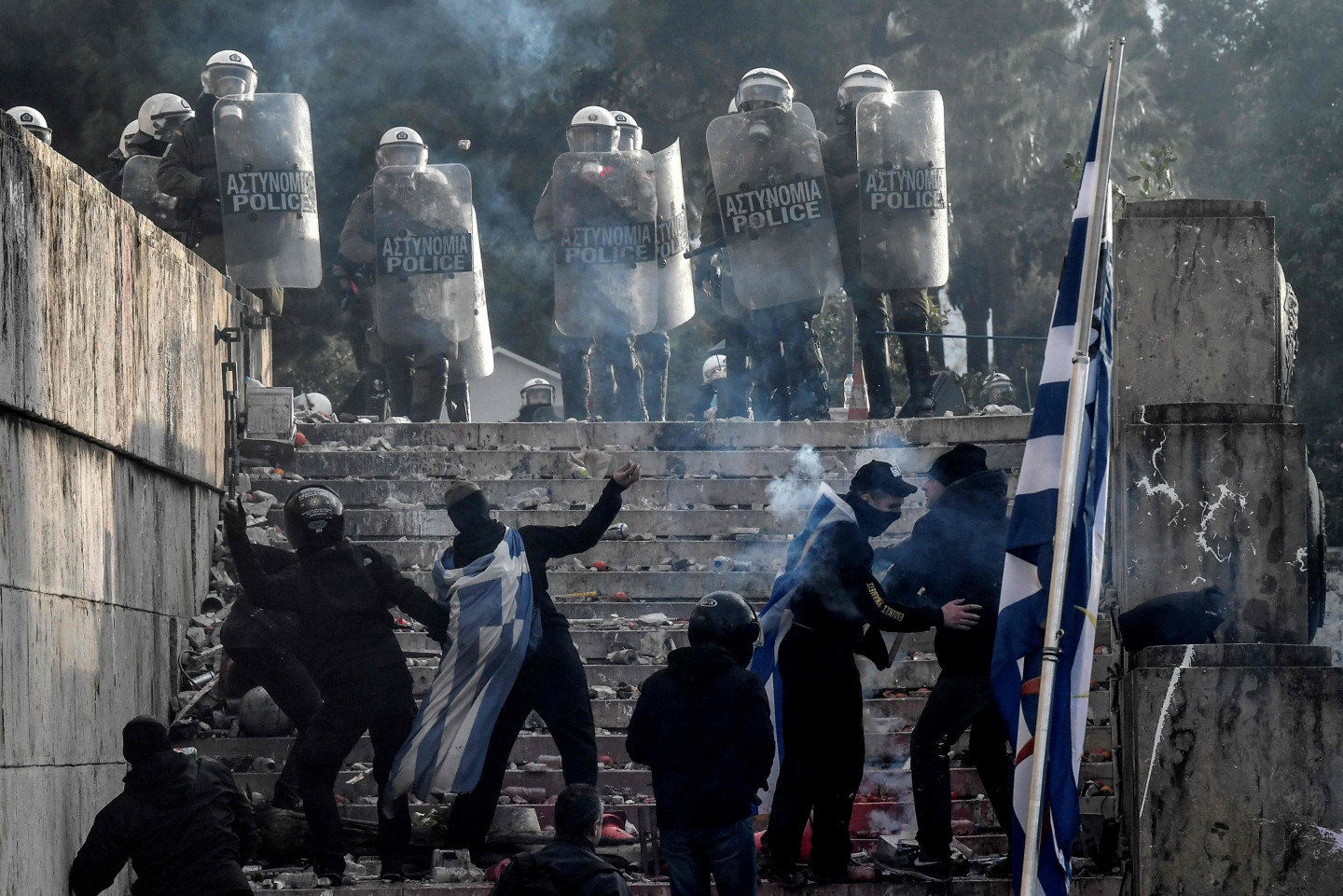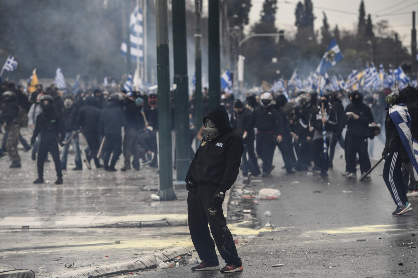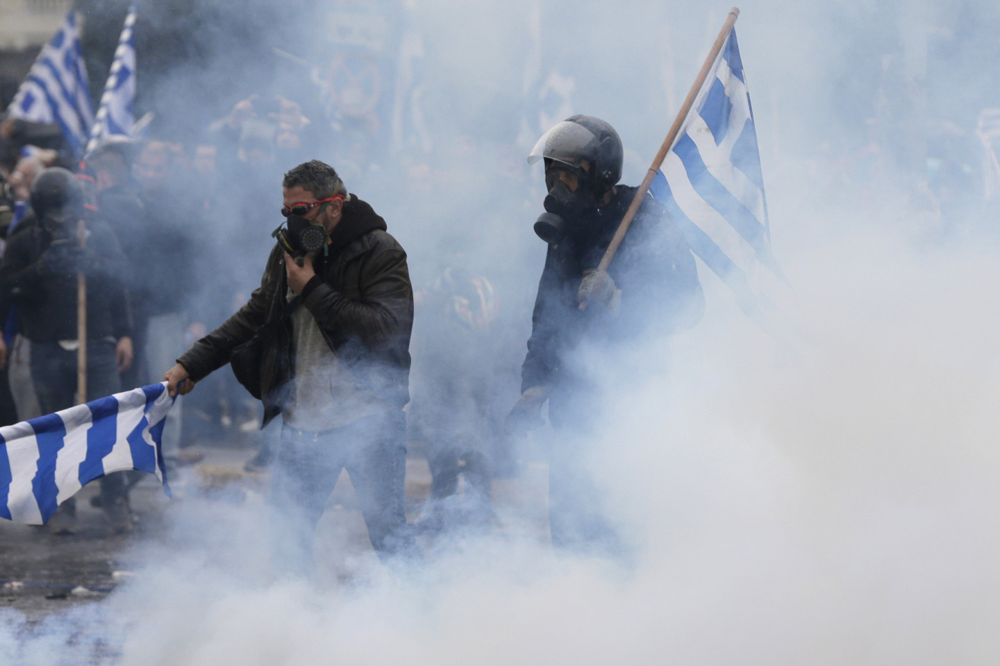 Atēnu centrā svētdien izcēlušās sadursmes starp policiju un protestētājiem, kas iestājas pret vienošanos ar Maķedoniju par tās nosaukuma maiņu. Policijas aplēses liecina, ka uz protestiem sapulcējušies aptuveni 60 000 cilvēku, bet protestu organizētāji ziņoja, ka ieradušies 100 000. Par kārtību protestu laikā gādā gandrīz 2000 policistu, novērošanai tiek izmantoti bezpilota lidaparāti un helikopteri. Drošības apsvērumu dēļ Atēnu centrā vairākos rajonos šodien apturēta satiksme un slēgtas vairākas metro stacijas. Grieķijas premjerministrs Aleksis Ciprs jūnijā parakstīja ar Maķedonijas valdības vadītāju Zoranu Zaevu vienošanos, kas paredz pārdēvēt Maķedonijas Republiku par Ziemeļmaķedonijas Republiku, lai tādējādi pieliktu punktu jau desmitgadēm ilgušajam abu valstu konfliktam un pavērtu Maķedonijai ceļu uz Eiropas Savienību un NATO. Maķedonijas parlaments jau veicis attiecīgus grozījumus konstitūcijā, un tagad par šo vienošanos jābalso Grieķijas parlamentam, kur tās ratificēšanai nepieciešams vienkāršs balsu vairākums. Taču domstarpības Grieķijas politiķu vidū par vienošanos ar Maķedoniju pirms nedēļas noveda pie valdošās koalīcijas izjukšanas, bet Cipram izdevās izturēt parlamenta uzticības balsojumu viņa valdībai. Grieķijā daudzi cilvēki iebilst pret šo vienošanos ar Maķedoniju, tostarp vairākas politiskās partijas. "Ir tikai viena Maķedonija, Grieķijas Maķedonija," vēstīja viens no protestētāju plakātiem. "Šī valdība ir nodevēju valdība," sacīja viena no protestētājām.