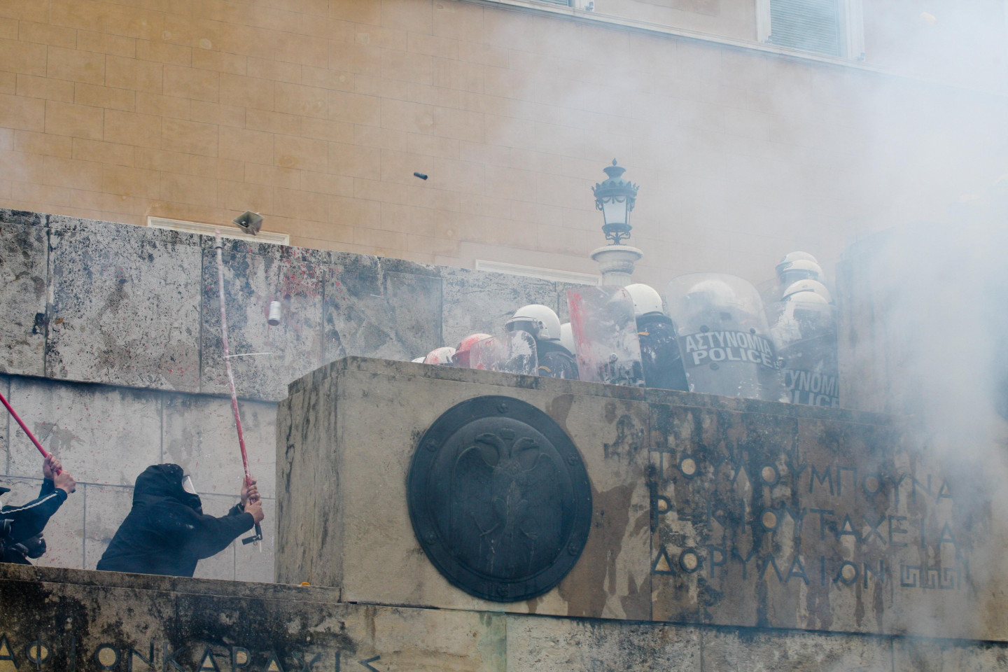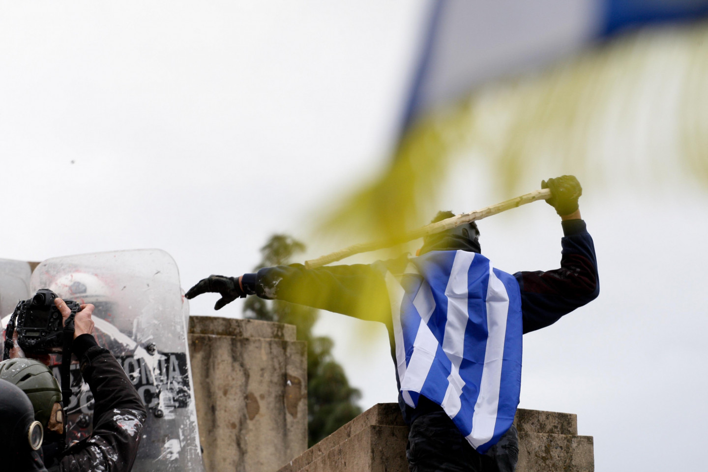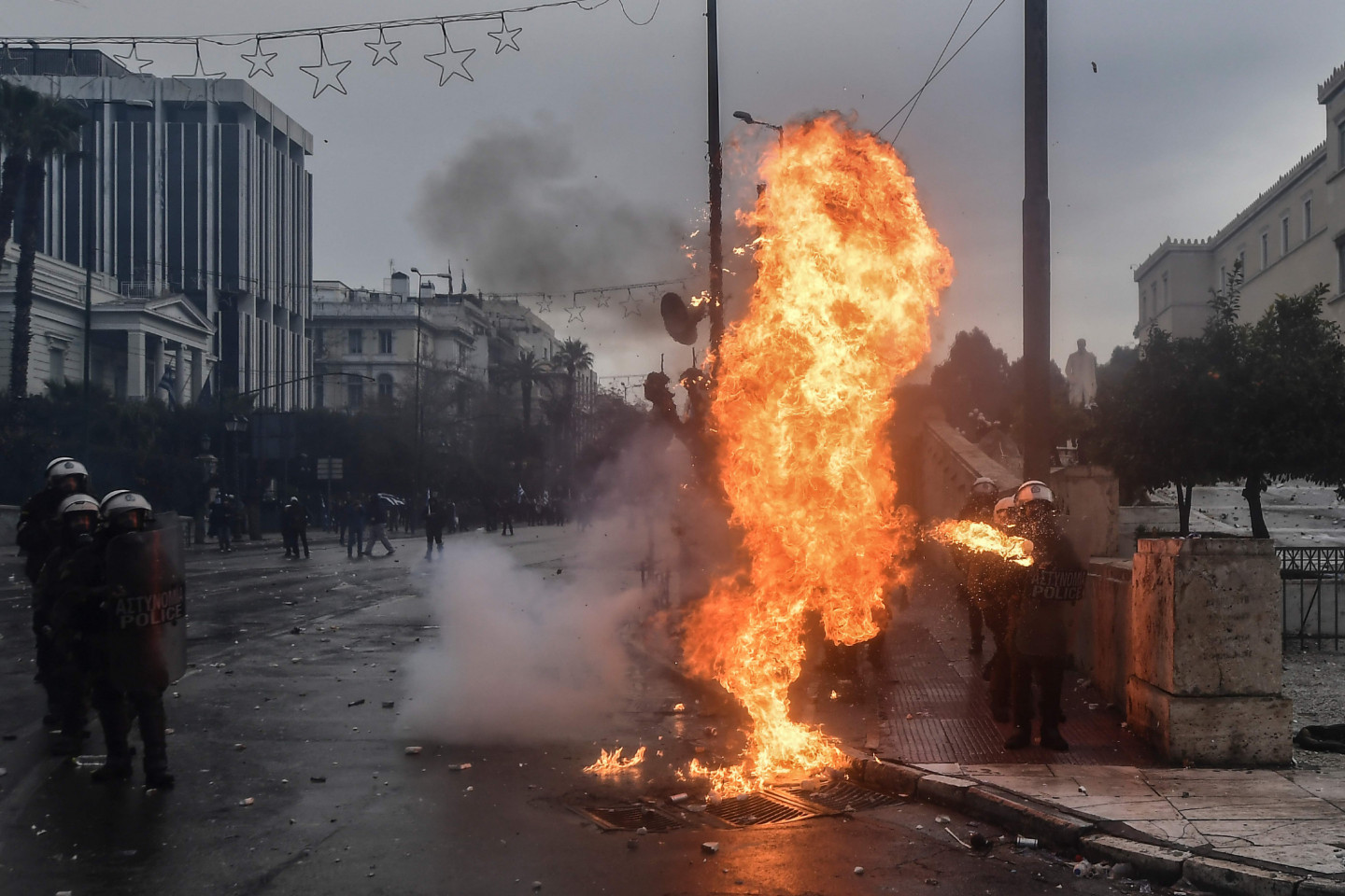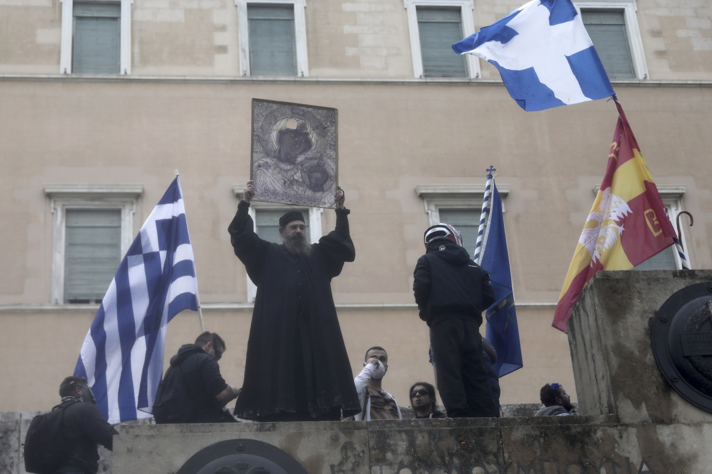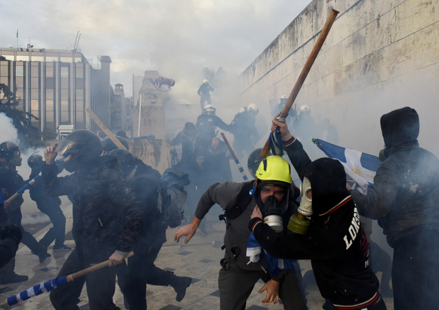 Atēnu centrā svētdien izcēlušās sadursmes starp policiju un protestētājiem, kas iestājas pret vienošanos ar Maķedoniju par tās nosaukuma maiņu. Policijas aplēses liecina, ka uz protestiem sapulcējušies aptuveni 60 000 cilvēku, bet protestu organizētāji ziņoja, ka ieradušies 100 000. Par kārtību protestu laikā gādā gandrīz 2000 policistu, novērošanai tiek izmantoti bezpilota lidaparāti un helikopteri. Drošības apsvērumu dēļ Atēnu centrā vairākos rajonos šodien apturēta satiksme un slēgtas vairākas metro stacijas. Grieķijas premjerministrs Aleksis Ciprs jūnijā parakstīja ar Maķedonijas valdības vadītāju Zoranu Zaevu vienošanos, kas paredz pārdēvēt Maķedonijas Republiku par Ziemeļmaķedonijas Republiku, lai tādējādi pieliktu punktu jau desmitgadēm ilgušajam abu valstu konfliktam un pavērtu Maķedonijai ceļu uz Eiropas Savienību un NATO. Maķedonijas parlaments jau veicis attiecīgus grozījumus konstitūcijā, un tagad par šo vienošanos jābalso Grieķijas parlamentam, kur tās ratificēšanai nepieciešams vienkāršs balsu vairākums. Taču domstarpības Grieķijas politiķu vidū par vienošanos ar Maķedoniju pirms nedēļas noveda pie valdošās koalīcijas izjukšanas, bet Cipram izdevās izturēt parlamenta uzticības balsojumu viņa valdībai. Grieķijā daudzi cilvēki iebilst pret šo vienošanos ar Maķedoniju, tostarp vairākas politiskās partijas. "Ir tikai viena Maķedonija, Grieķijas Maķedonija," vēstīja viens no protestētāju plakātiem. "Šī valdība ir nodevēju valdība," sacīja viena no protestētājām.