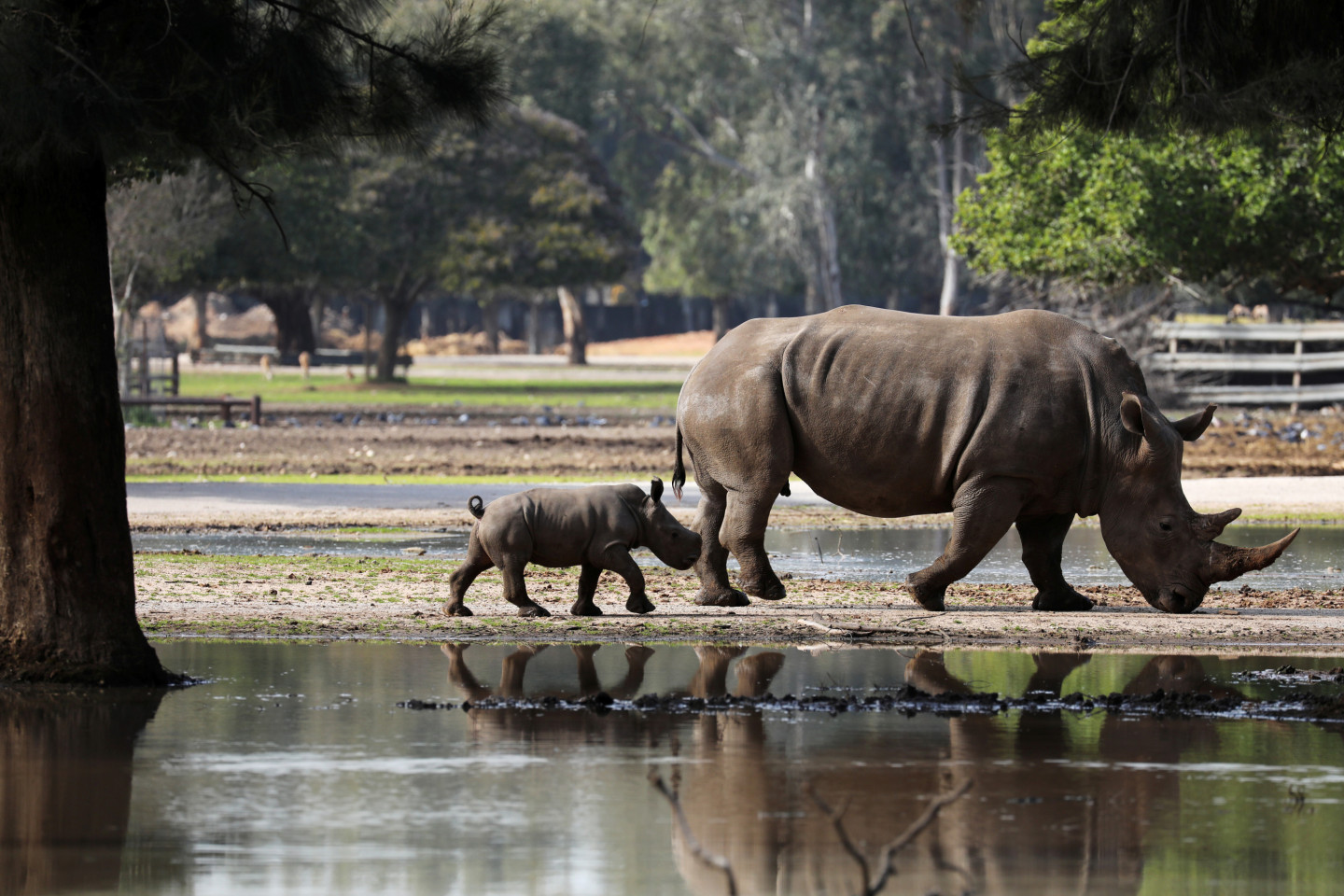 Piemīlīgi! Degunradzēns no mātes neatstājas ne soli