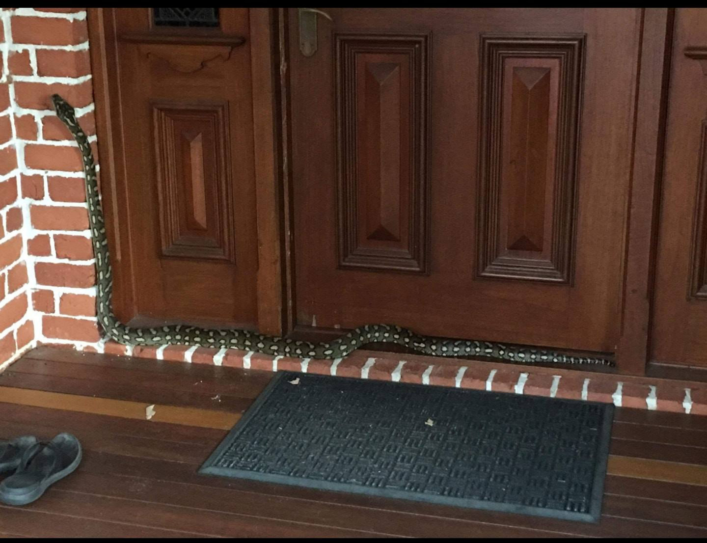 Kāda dāma Austrālijā piedzīvojusi pamatīgas bailes, kad pamanījusi, ka viņas namdurvīm "rosās" branga izmēra čūska.