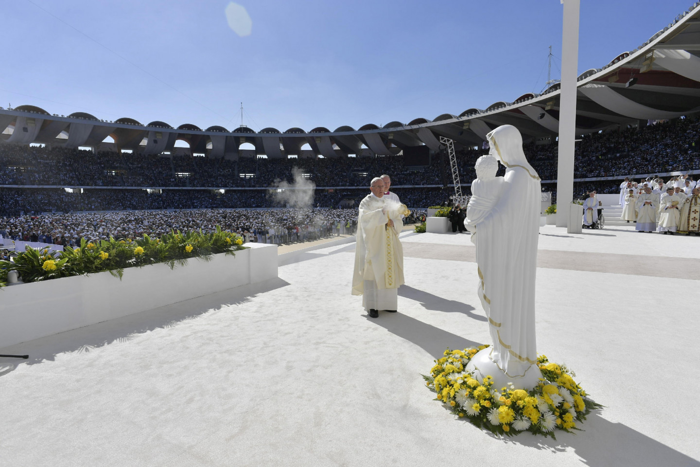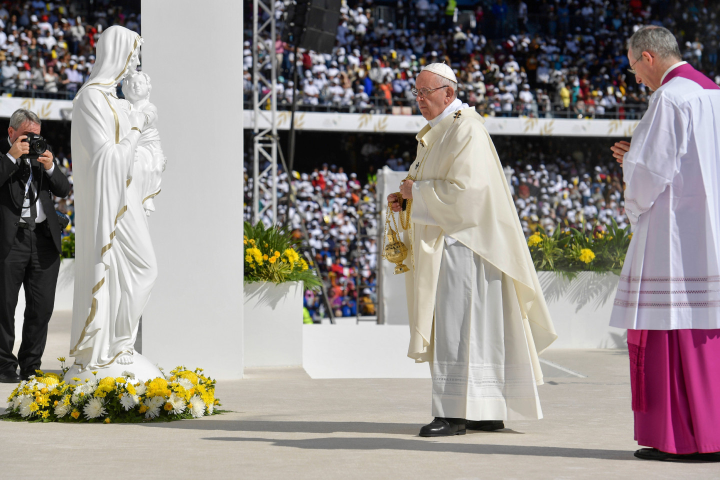Pāvests Francisks, turpinot vizīti Apvienotajos Arābu Emirātos (AAE), otrdien galvaspilsētā Abū Dabī vadīja misi, kas pulcēja desmitus tūkstošus katoļu, kā arī vairākus tūkstošus musulmaņu. Francisks ir pirmais Romas Katoļu baznīcas pāvests, kas apmeklē Arābijas pussalu. Aptuveni 135 000 dievlūdzēju pulcējās Abū Dabī sporta centra stadionā, lai redzētu pāvestu, kurš ieradies Persijas līča valstī centienos sekmēt starpreliģiju dialogu. AAE dzīvo aptuveni divi miljoni katoļu ārvalstnieku. Kā tiek prognozēts, dievkalpojumu būs apmeklējuši katoļi no aptuveni 100 valstīm, kā arī 4000 musulmaņu, ieskaitot valdības amatpersonas, norādīja rīkotāji. Pāvests, kas svētdien ieradās AAE, atsaucoties Abū Dabī kroņprinča ielūgumam, izmantojis vizīti, lai nosodītu reģionālos karus, arī Jemenā, kā arī lai aicinātu uz lielāku sadarbību kristiešu un musulmaņu starpā. AAE ir to Persijas līča valstu vidū, kur kristiešu reliģiskajai dzīvei ierobežojumi noteikti salīdzinoši mazākā mērā, atzīst diplomāti un priesteri. Dievnamu ēkās, saņemot īpašas atļaujas, drīkst notikt kristiešu reliģiskās sanāksmes. Tiesa gan, tāpat kā citās Persijas līča arābu valstīs, nesankcionētas reliģiskas sanāksmes ir aizliegtas, tāpat nemusulmaņu reliģiju pārstāvji nedrīkst pievērst savai ticībai jaunus sekotājus vietējo vidū. Laikrakstos kaimiņvalstī Saūda Arābijā, kur baznīcas ir aizliegtas, publicēti attēli, kuros redzama pirmdien Abū Dabī notikusī Franciska tikšanās ar Ēģiptes mošejas "Al Azhar" vecāko imamu, Abū Dabī kroņprinci un Dubaijas valdnieku.