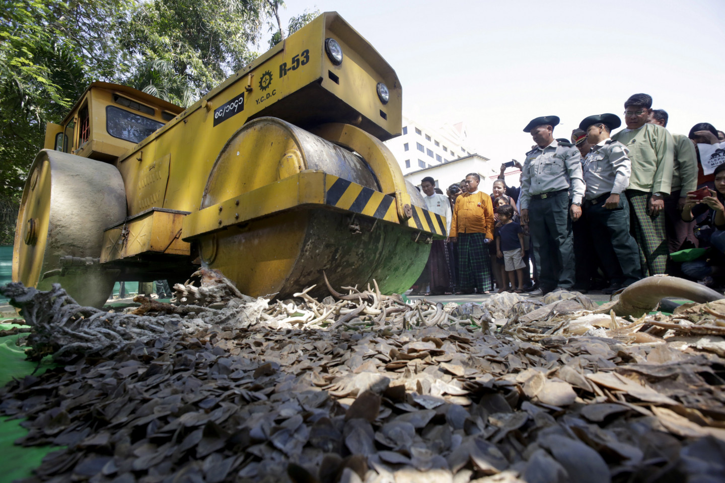 Kā iznīcina malumednieku "trofejas" Mjanmā