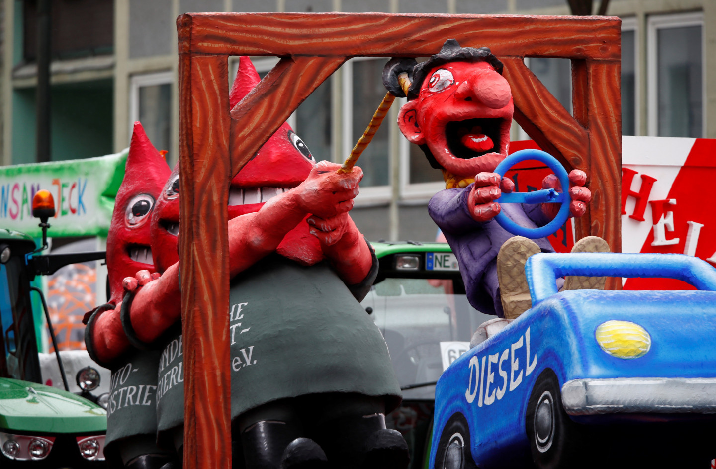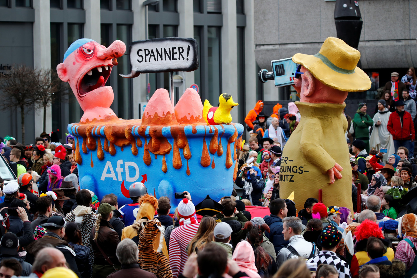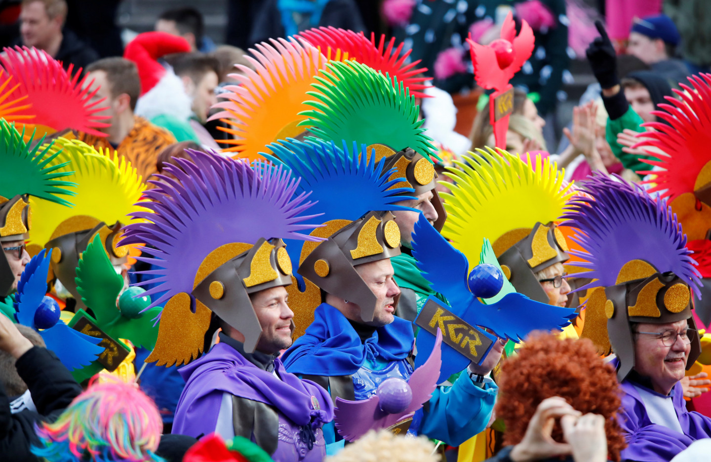 Vācijas pilsētā Diseldorfā noticis ikgadējais "rožu pirmdienas" karnevāls, kura parādē redzamas pasaules politiskās zvaigznes.