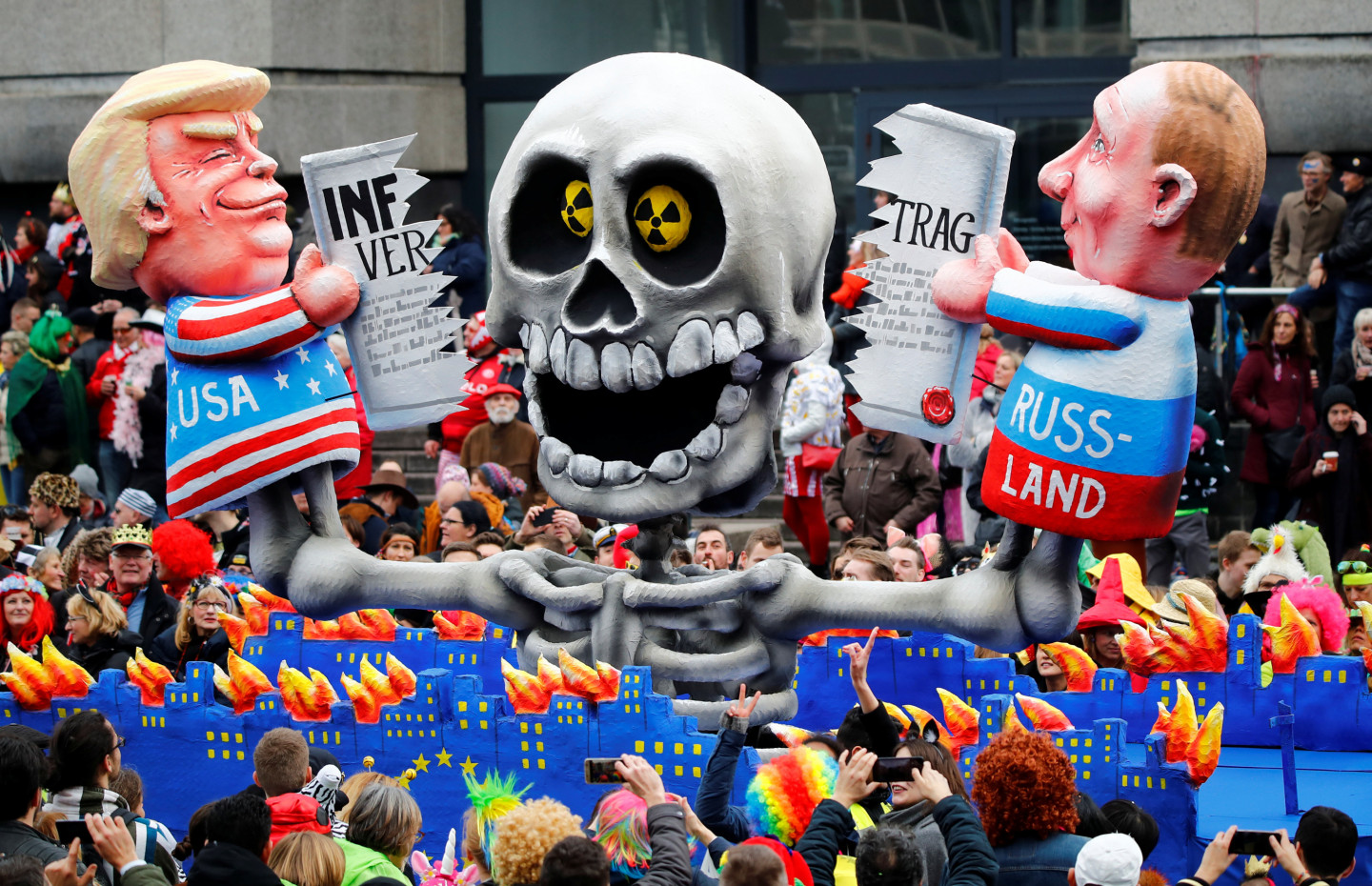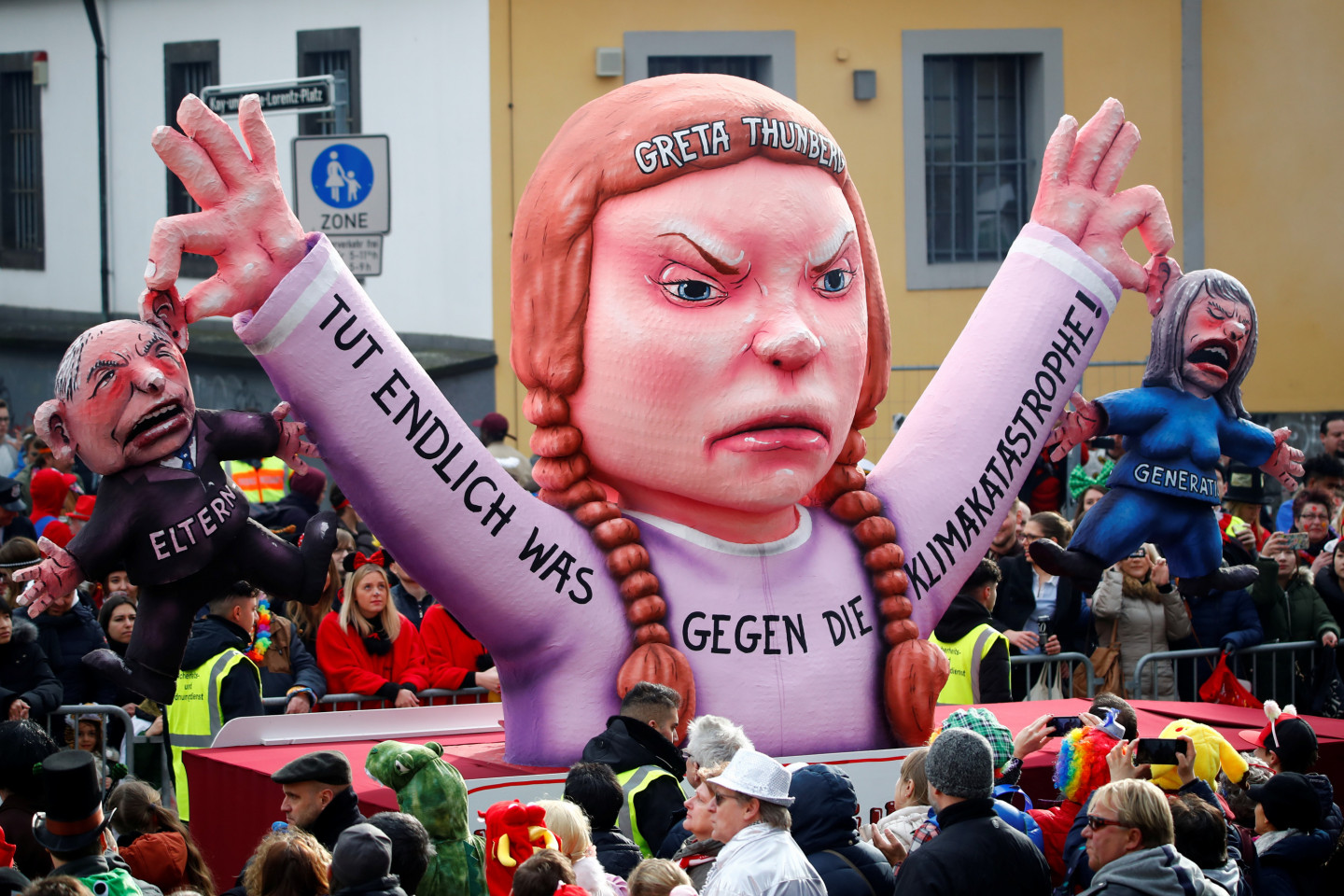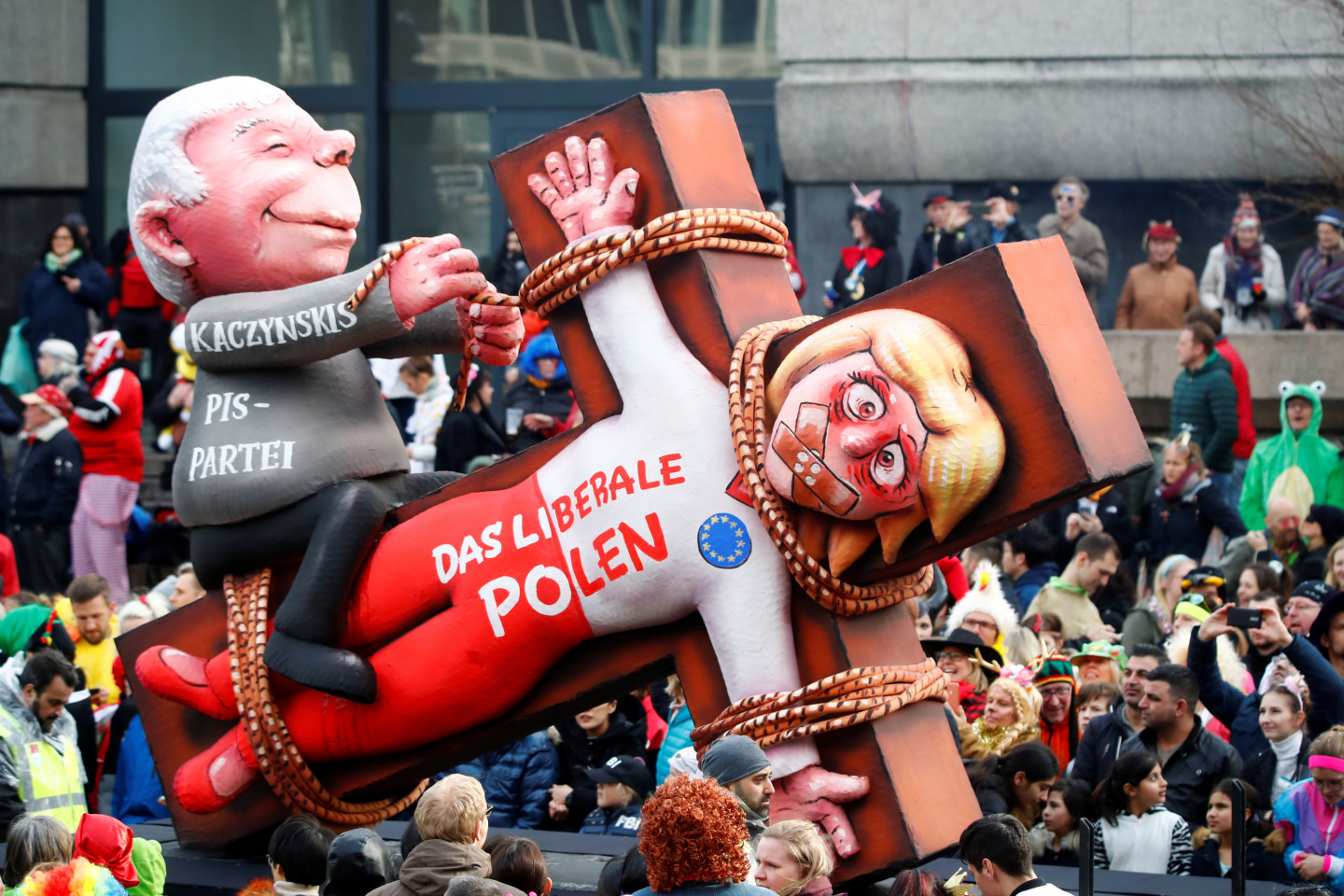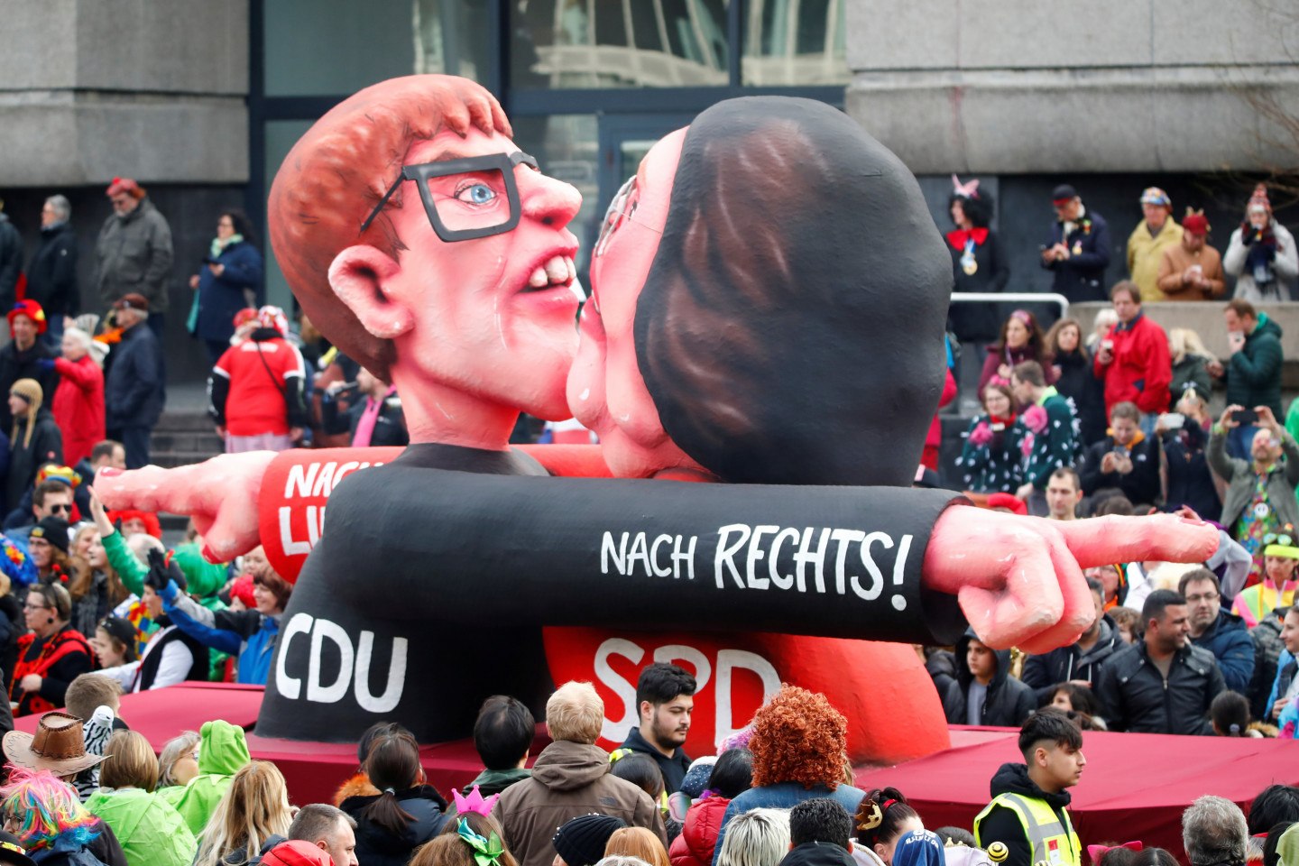 Vācijas pilsētā Diseldorfā noticis ikgadējais "rožu pirmdienas" karnevāls, kura parādē redzamas pasaules politiskās zvaigznes.