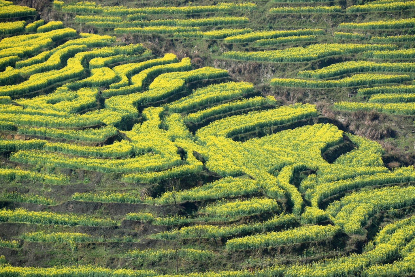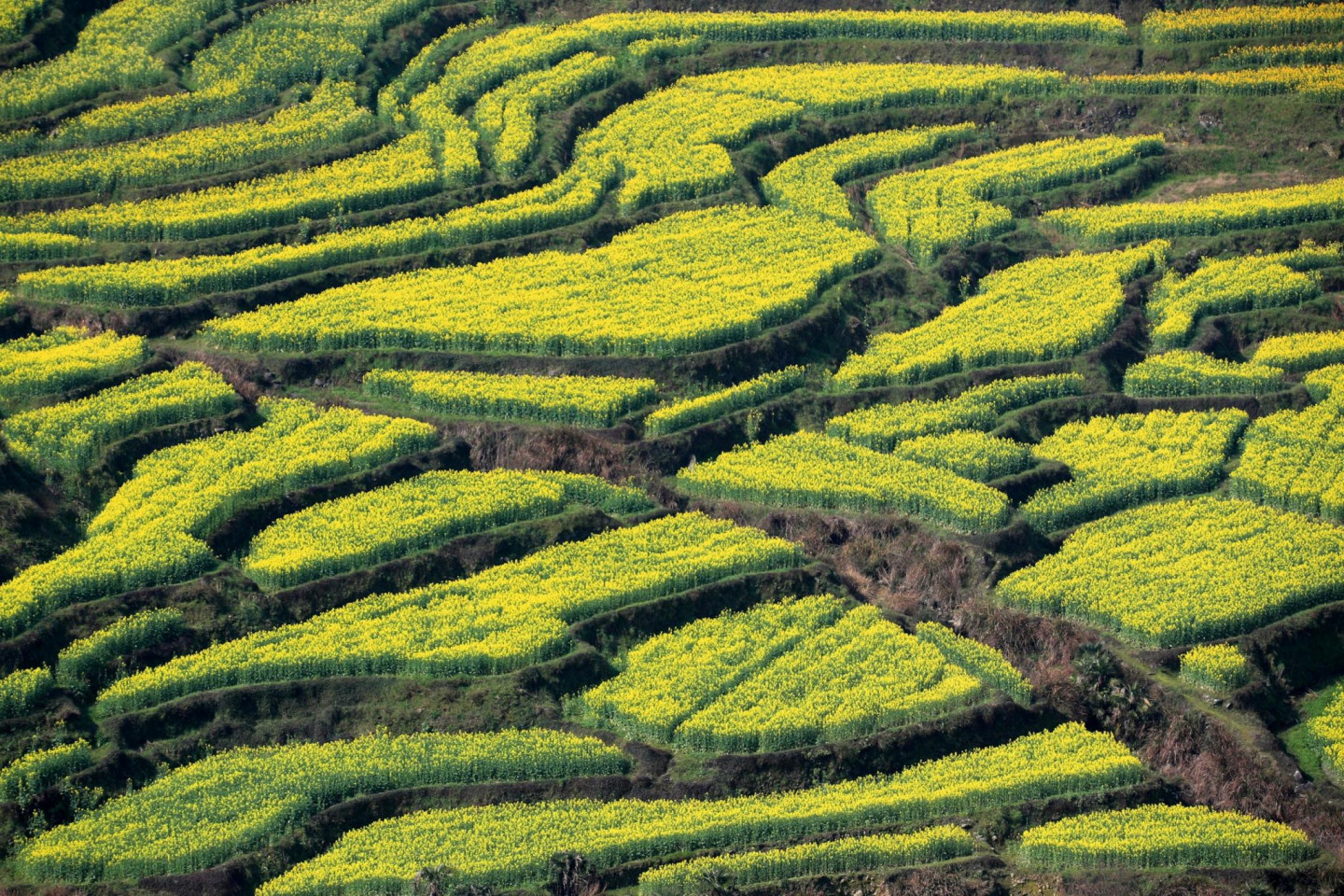 Pasakainās rapšu lauku terases Ķīnas austrumos