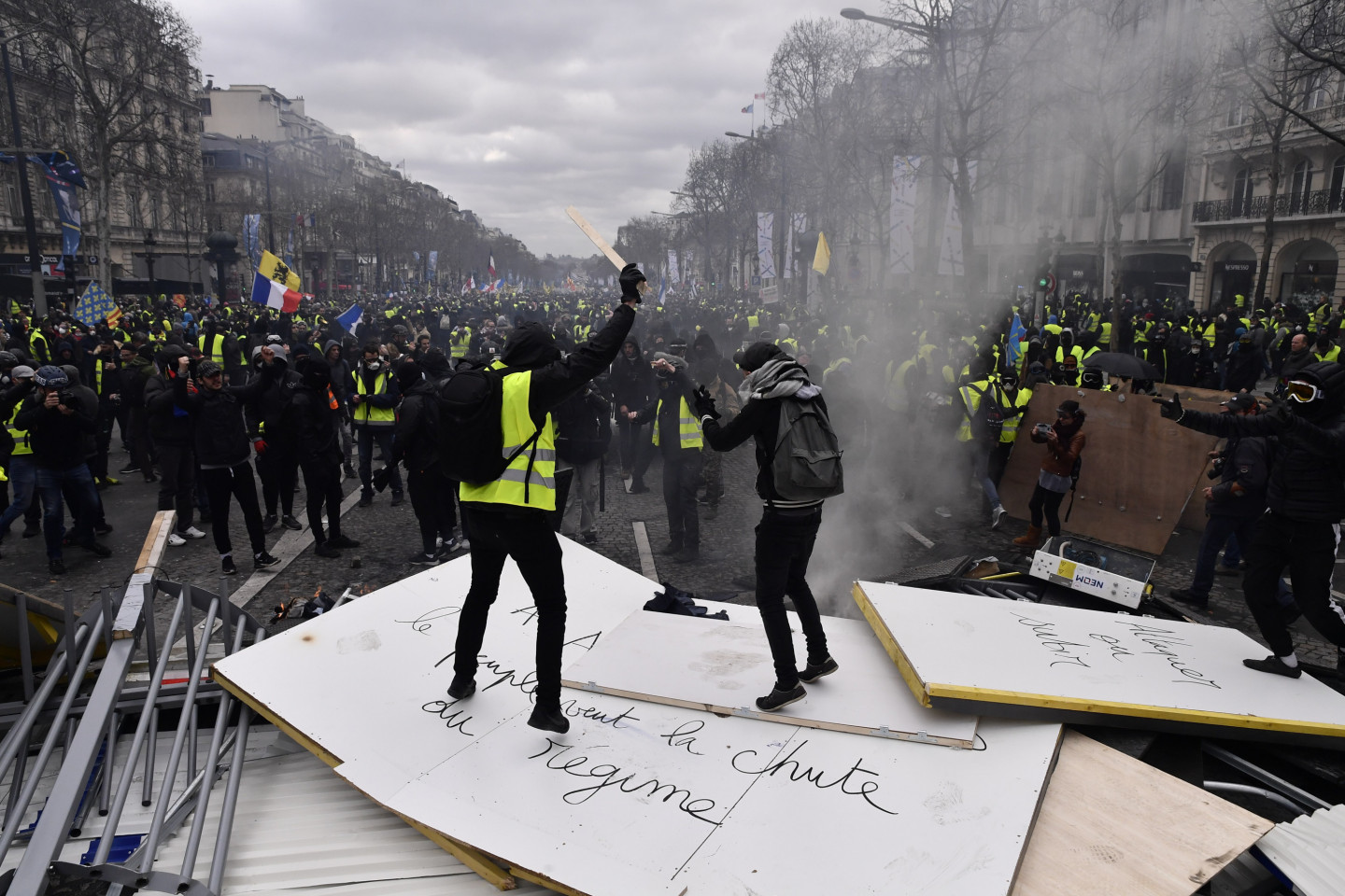 Francijas "dzelteno vestu" protesta akcijas organizatori sestdien izsludinājuši "ultimāta" akciju, kas sestdien Parīzes centrā pulcējusi lielu skaitu cilvēku un ātri pāraugusi vardarbībā. "Dzelteno vestu" protesta akcijas notiek jau 18.sestdienu pēc kārtas un šajā sestdienā liels skaits cilvēku sapulcējās uz Elizejas lauku avēnijas. Policija raidīja asaru gāzi un pielietoja ūdens metējus, lai izdzenātu protestētājus, kas veidoja barikādes Elizejas lauku tuvumā, vēsta ziņu aģentūra LETA.