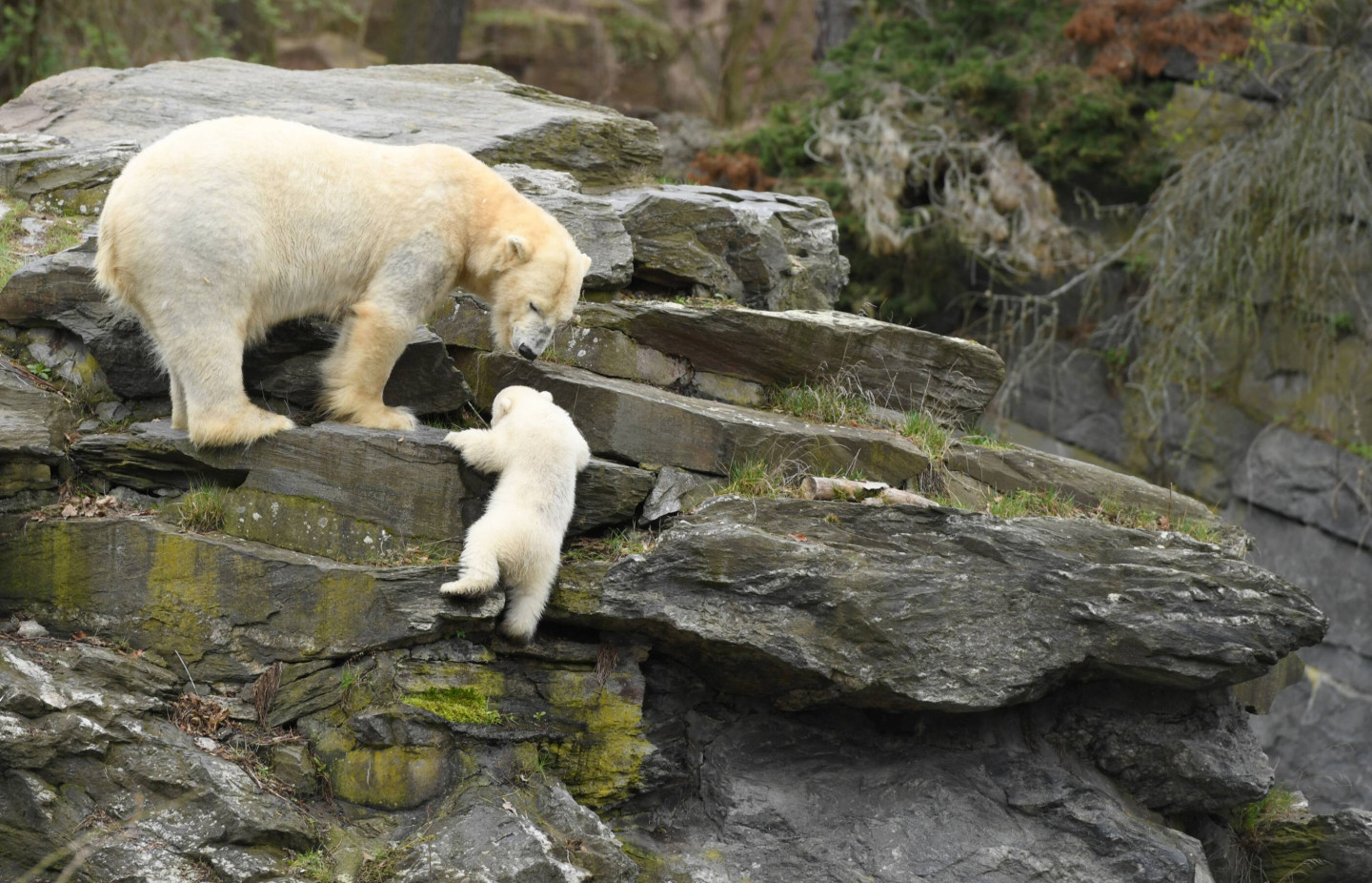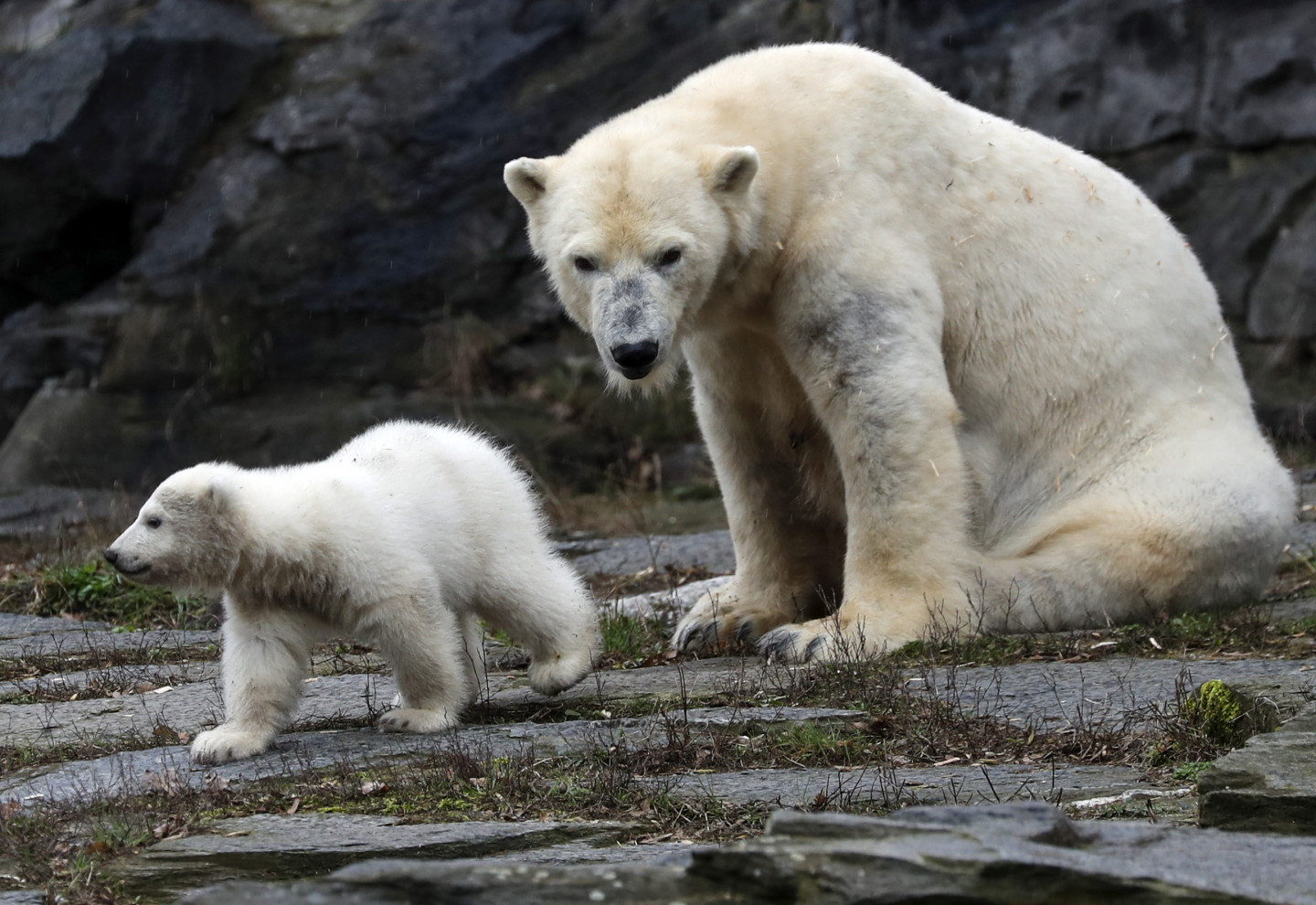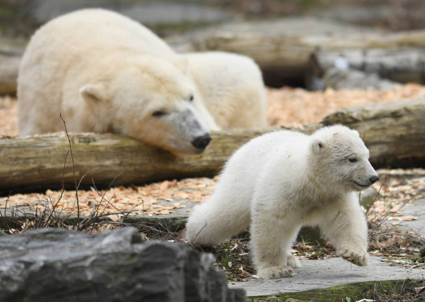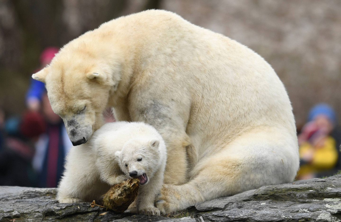Mīļi! Polārlācēns rotaļājas kopā ar māmiņu