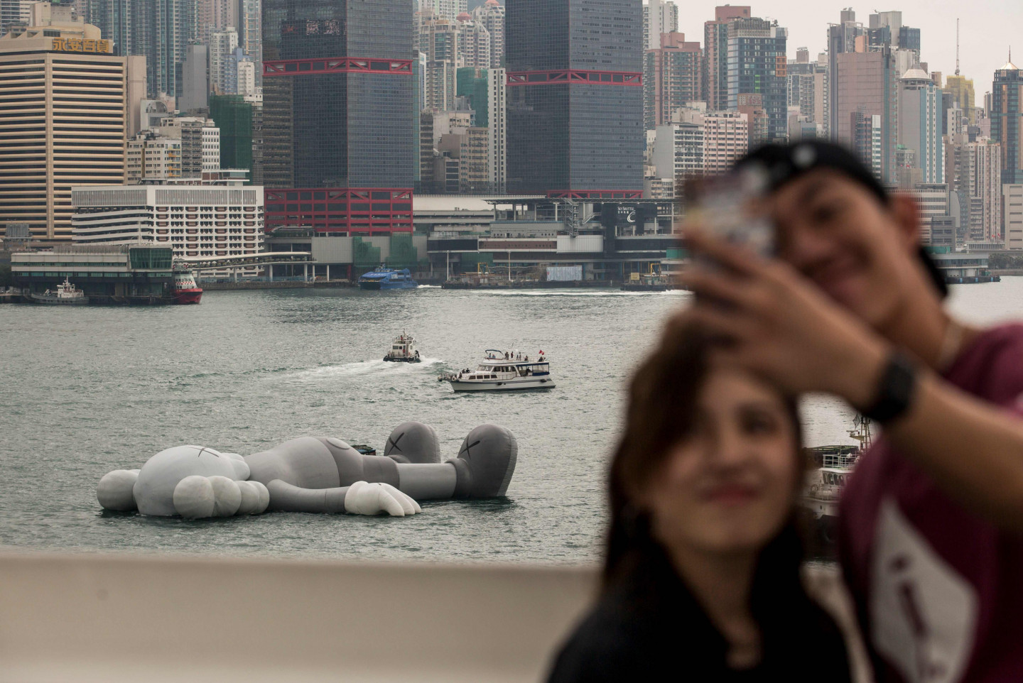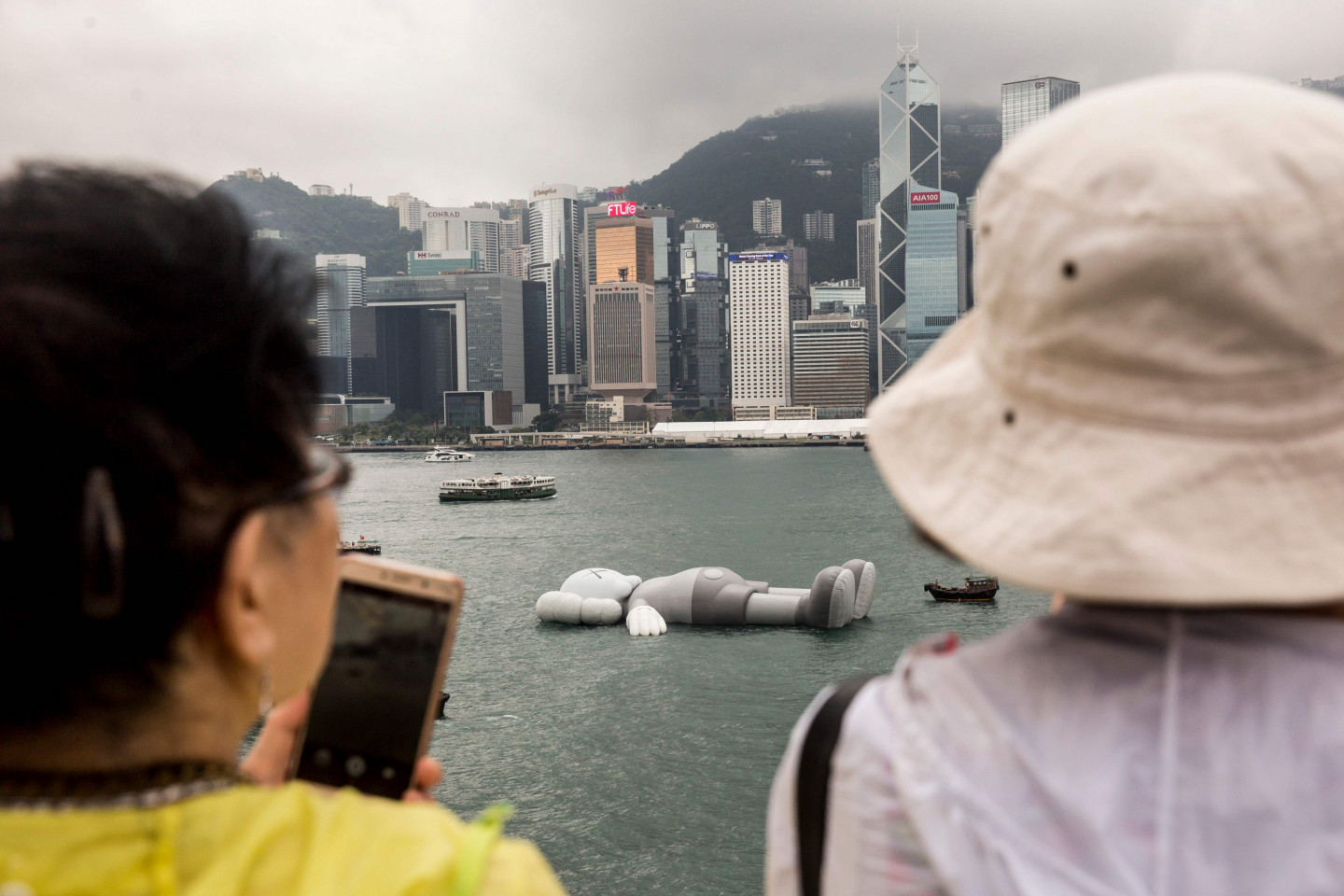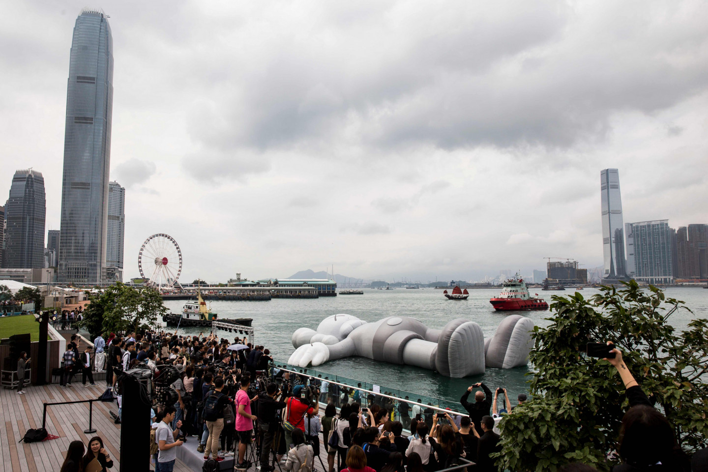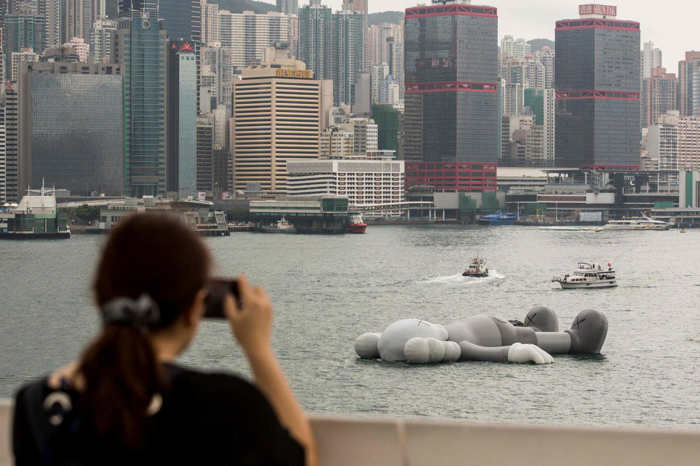 ASV māksliniece ar segvārdu "Kaws" pirms gaidāmās izstādes pārsteigusi Honkongas iedzīvotājus. Viņa Viktorijas ostas ūdeņos demonstrējusi peldošo skulptūru.