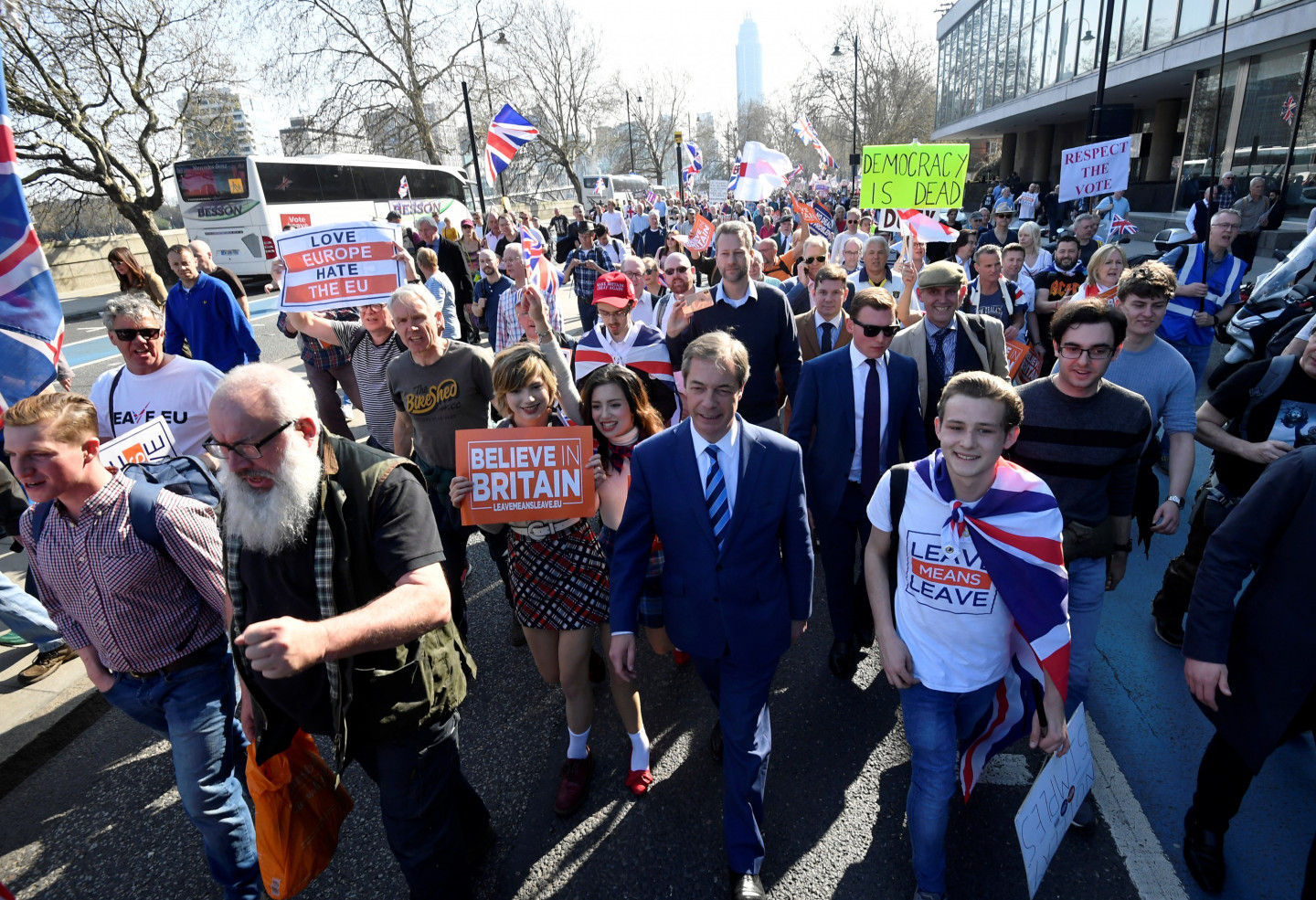 Bijušais Apvienotās Karalistes Neatkarības partijas (UKIP) līderis Naidžels Farāžs paziņojis, ka piektdien pievienosies "Breksita" atbalstītājiem, kas Londonas centrā rīko protesta akciju, pieminot dienu, kad Lielbritānijai vajadzēja izstāties no Eiropas Savienības (ES). "Esmu cīnījies 25 gadus, lai dabūtu mūs ārā no ES," pirms demonstrācijas tviterī norādīja Farāžs. "Vestminstera ir nodevusi lielāko demokrātisko balsojumu mūsu valsts vēsturē, un mēs neļausim viņiem palikt nesodītiem." "Tagad vienīgi revolūcija var labot mūsu politiku," intervijā laikrakstam "The Daily Telegraph" atzinis Farāžs, kas nodibinājis jaunu "Breksita" partiju. "Nekad neesmu redzējis tādu niknumu pret mūsu politiķu šķiru." Farāžs, kurš šobrīd ir Eiropas Parlamenta (EP) deputāts un politiskais komentētājs, vadīja 14 dienas ilgo "Maršu aiziešanai", kas noslēdzas ar piektdienas mītiņu pie parlamenta.