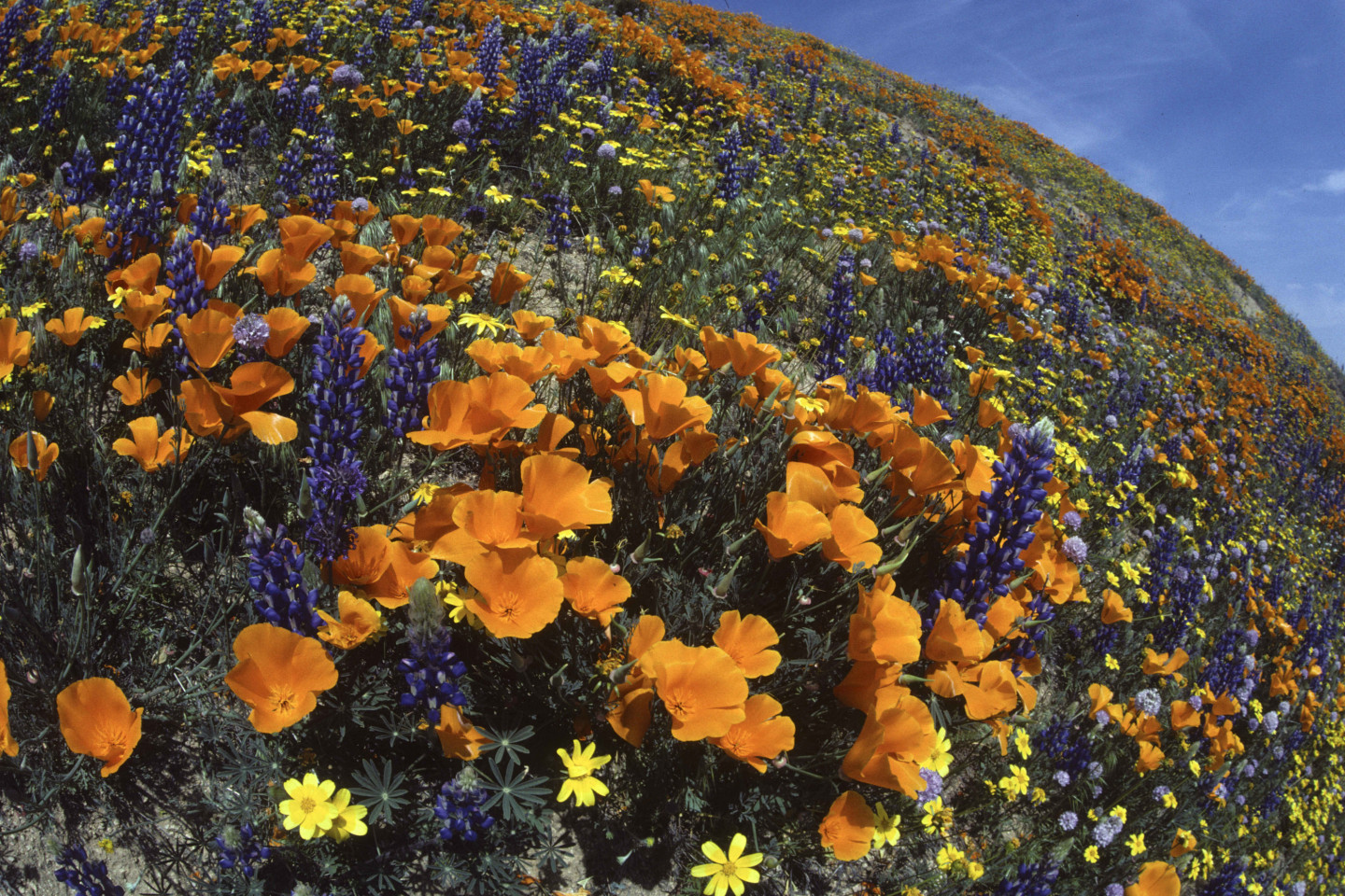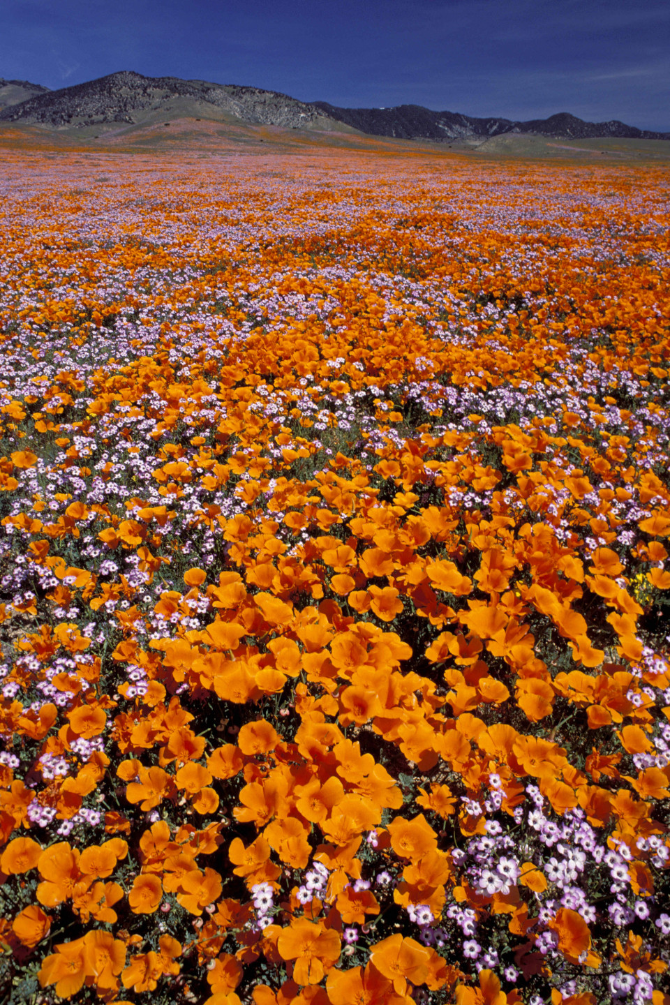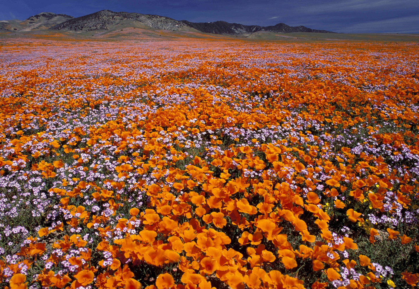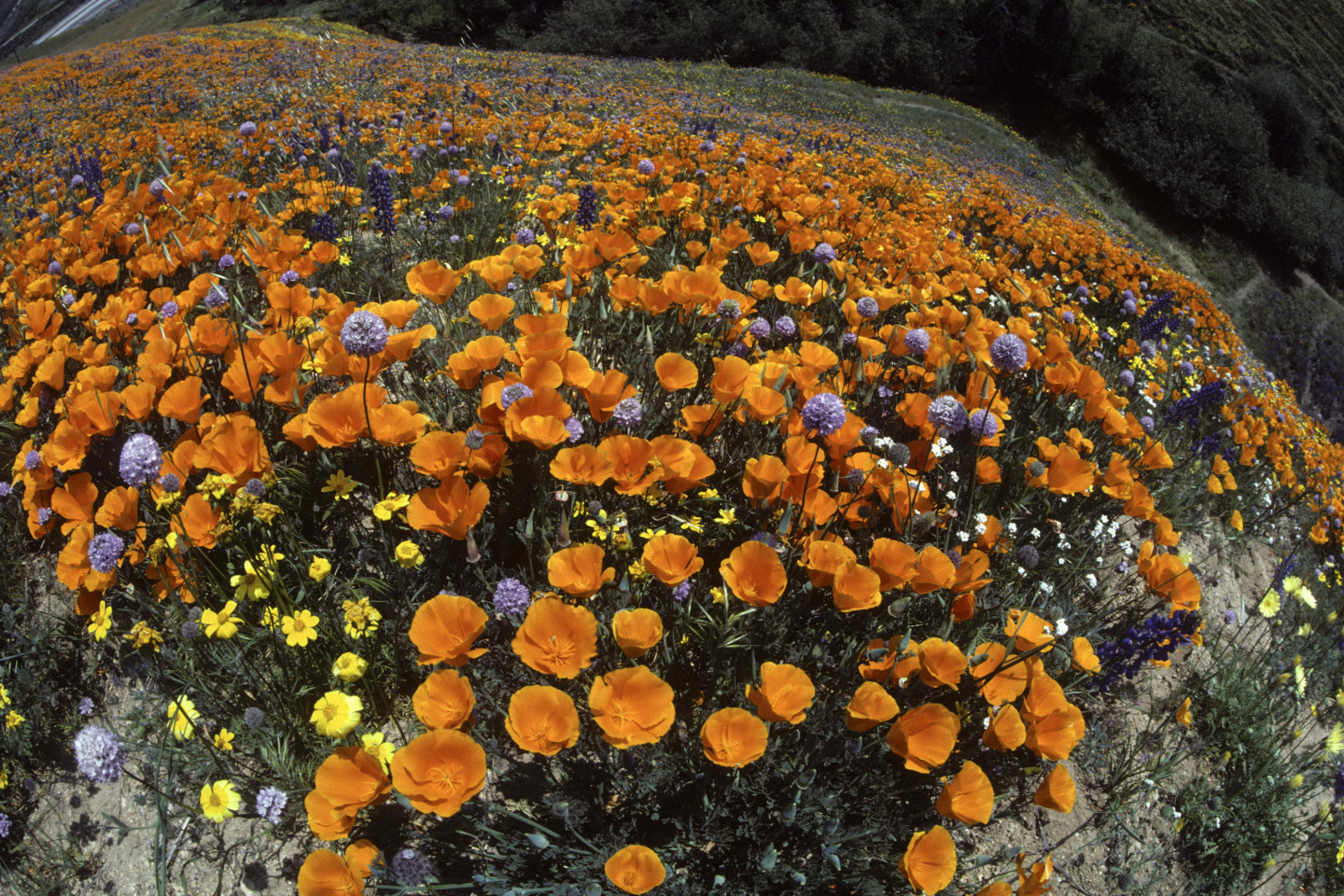 Kalnains apvidus Kalifornijā pārvērties par magoņu lauku