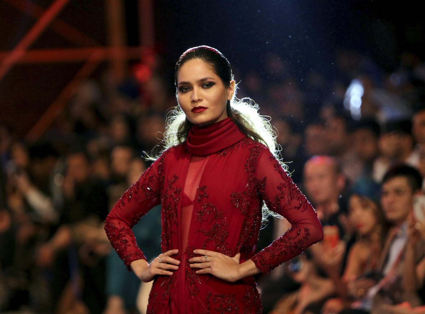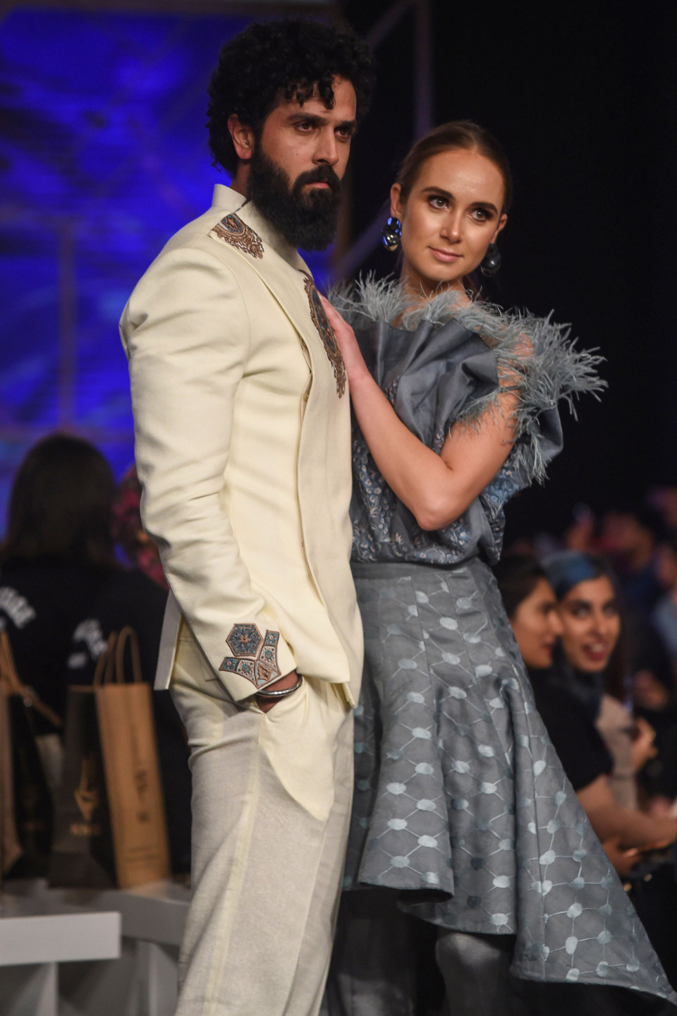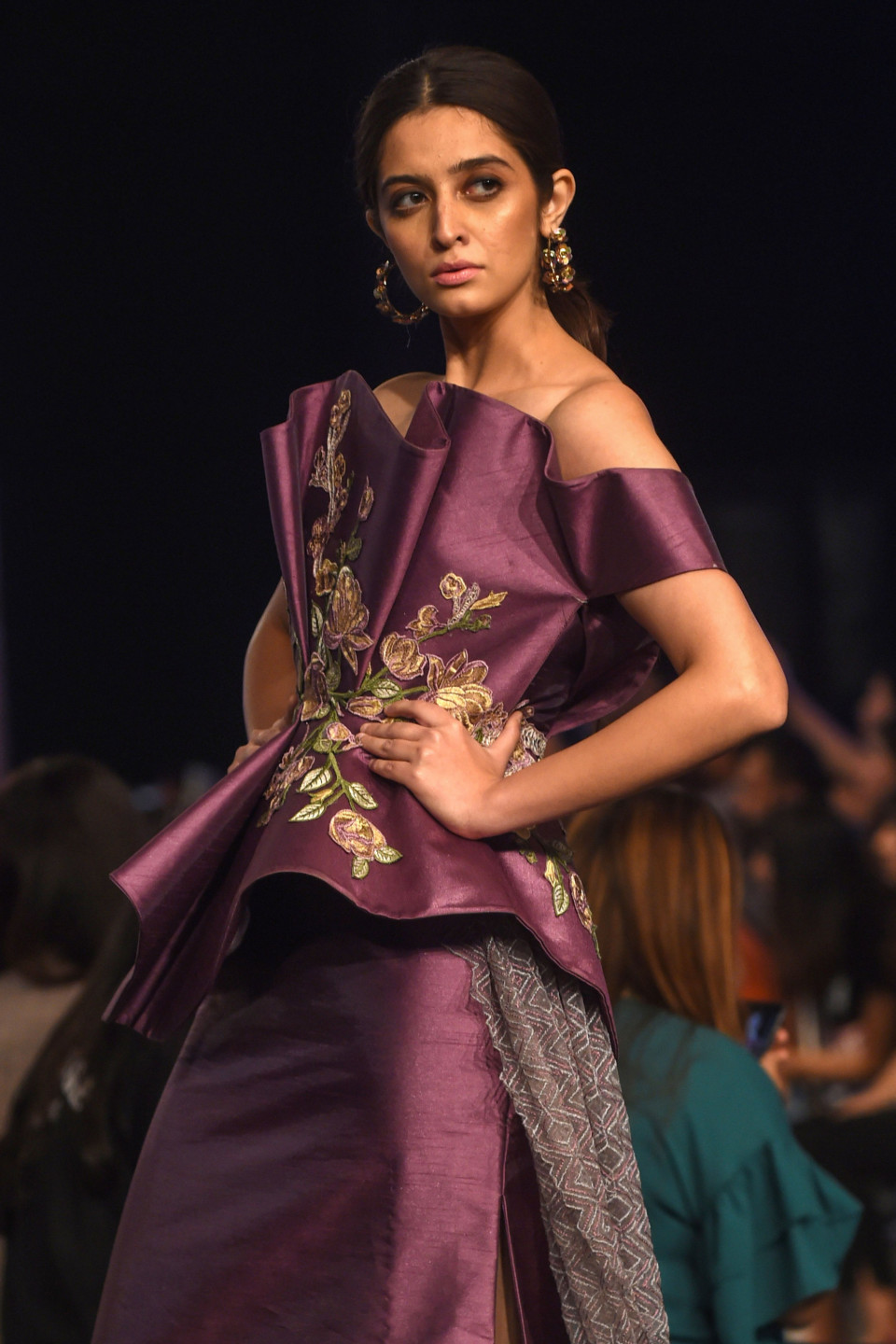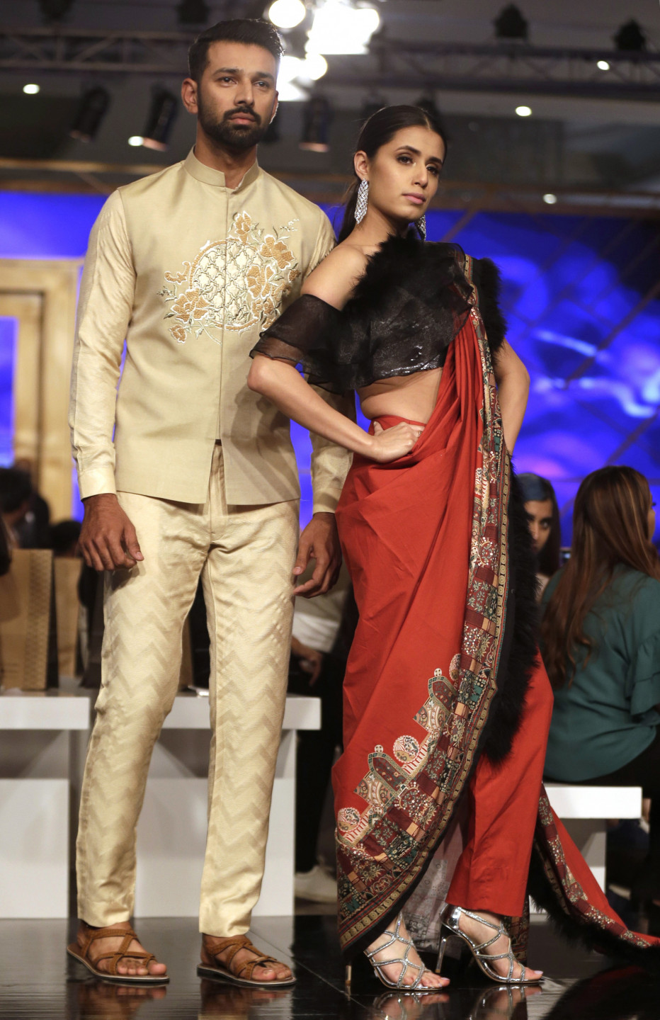 Modeles defilē pa mēli Pakistānas modes nedēļā