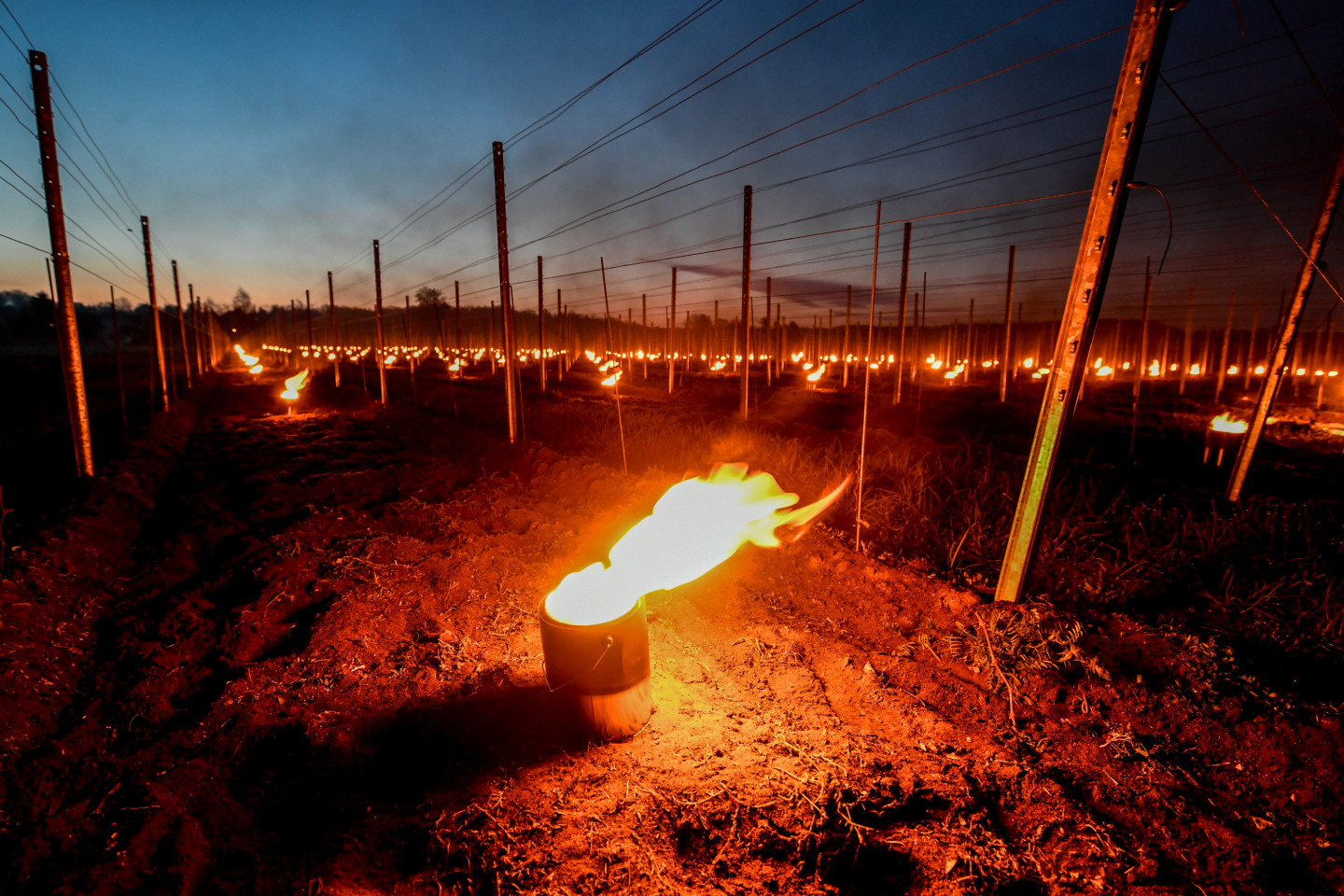 Vēso Eiropas nakšu dēļ vīna ražotāji Drēzdenē apsilda vīnogu laukus