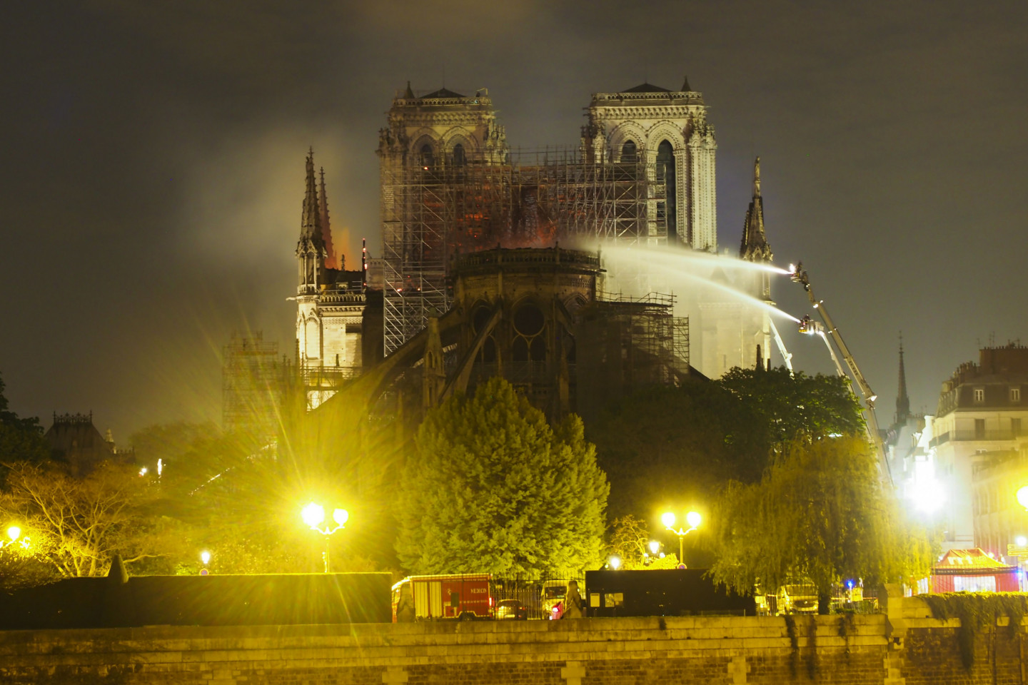Milzu ugunsgrēks, kas pirmdien izcēlās Parīzes Dievmātes katedrālē, "tiek kontrolēts" un ir daļēji nodzēsts, otrdienas rītā paziņoja Parīzes ugunsdzēsēji pēc stundām ilgas cīņas ar liesmām.