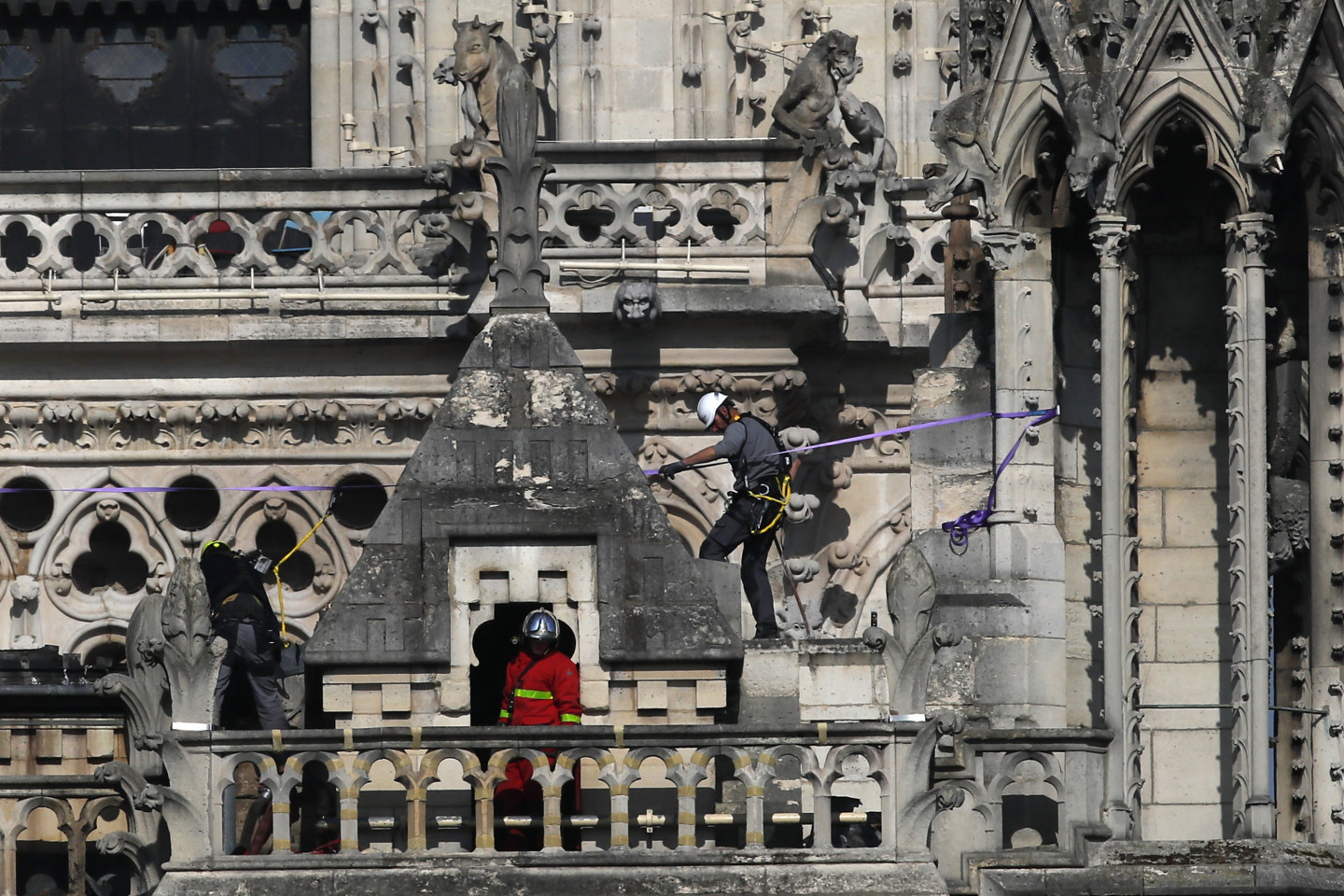 Katedrālē pirmdienas vakarā izcēlās ugunsgrēks, kas nodarījis plašus postījumus pasaulslavenajam dievnamam. Ugunsdzēsējiem izdevies izglābt 850 gadus senās būves akmens pamatstruktūru, taču liesmas iznīcinājušas jumtu un citas katedrāles būvdetaļas, tostarp sabruka katedrāles torņa 93 metrus augstā smaile. Ziņu aģentūra LETA vēsta, ka Parīzes Dievmātes katedrāles atjaunošanai jau saziedots gandrīz miljards eiro un dievnama apkaimē jau darbojas celtnieki.