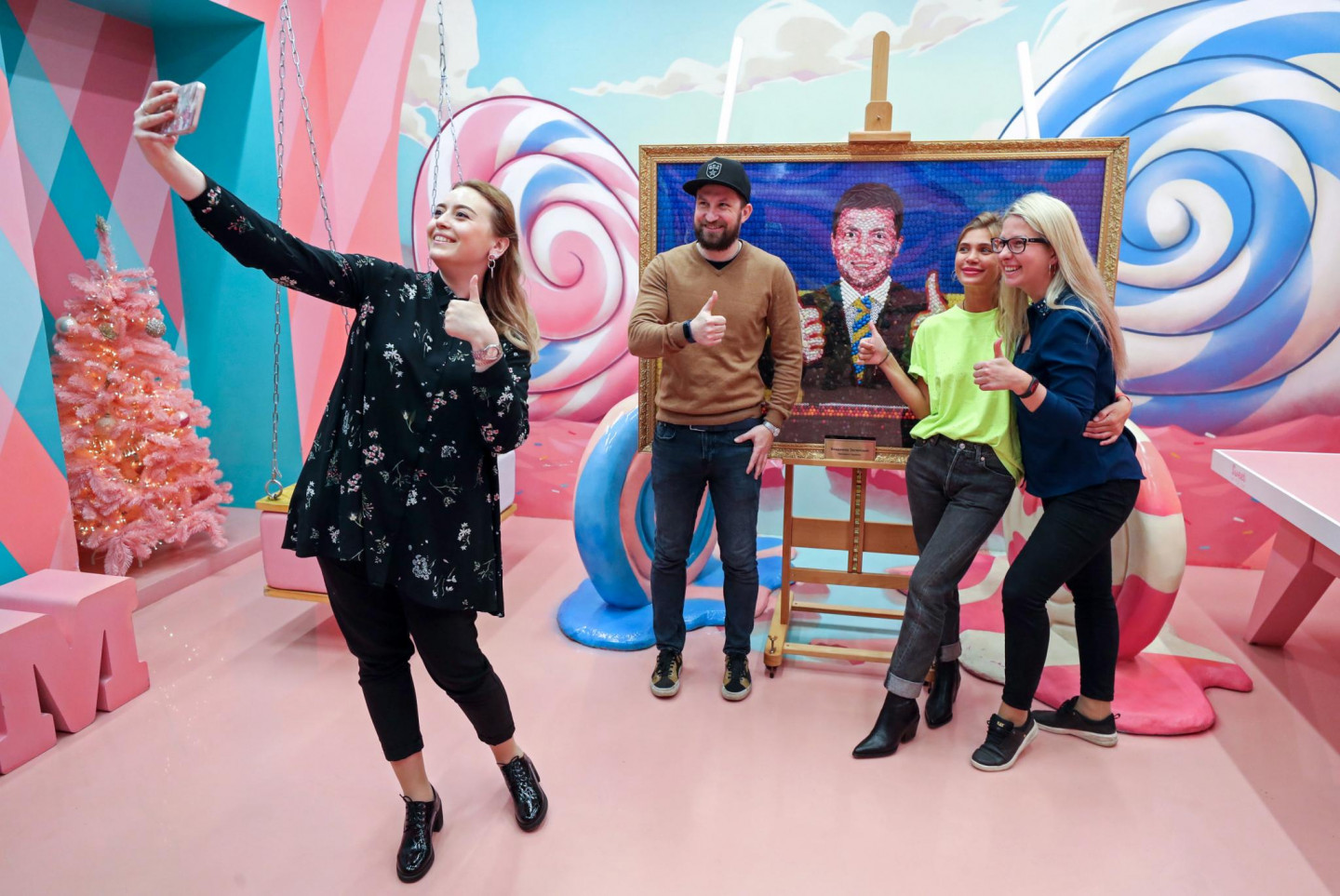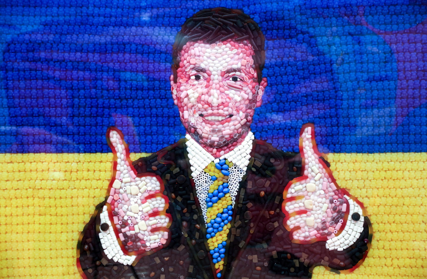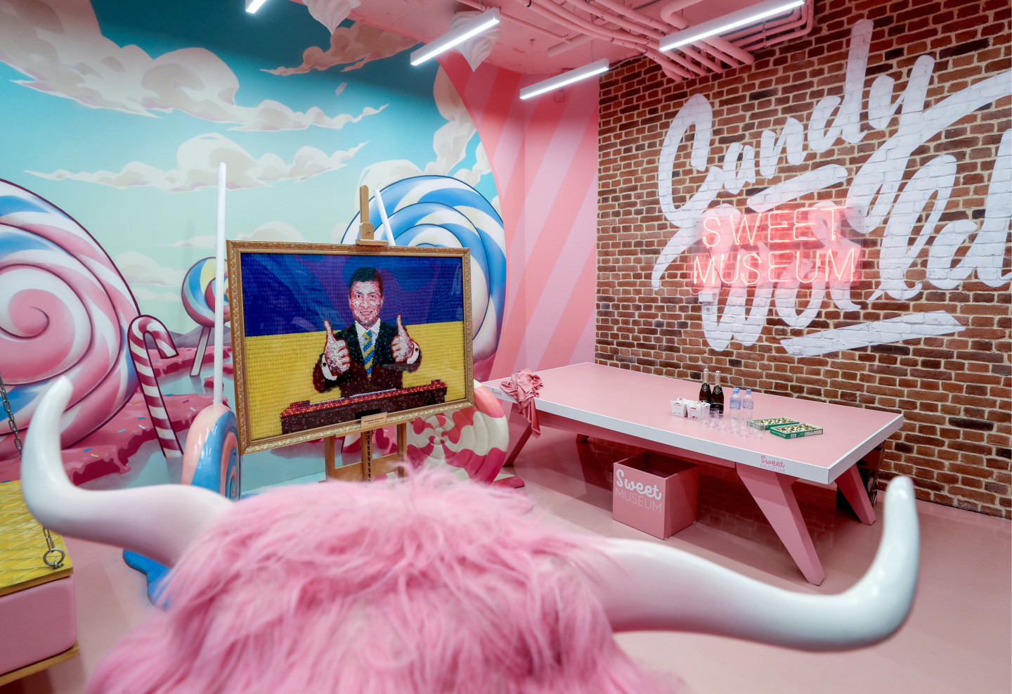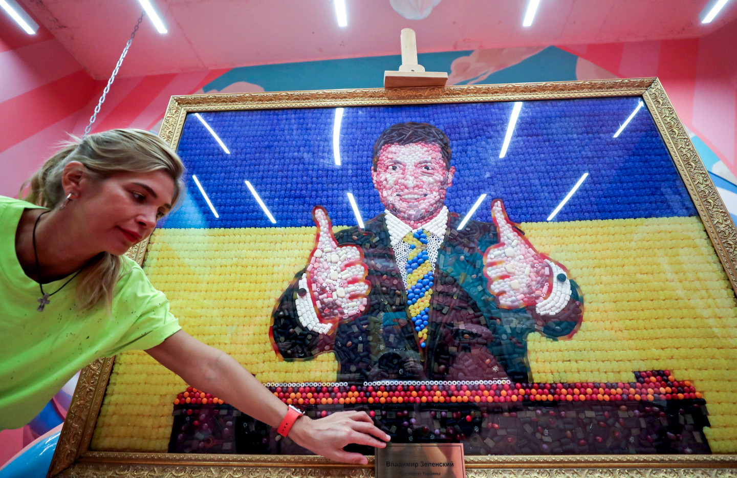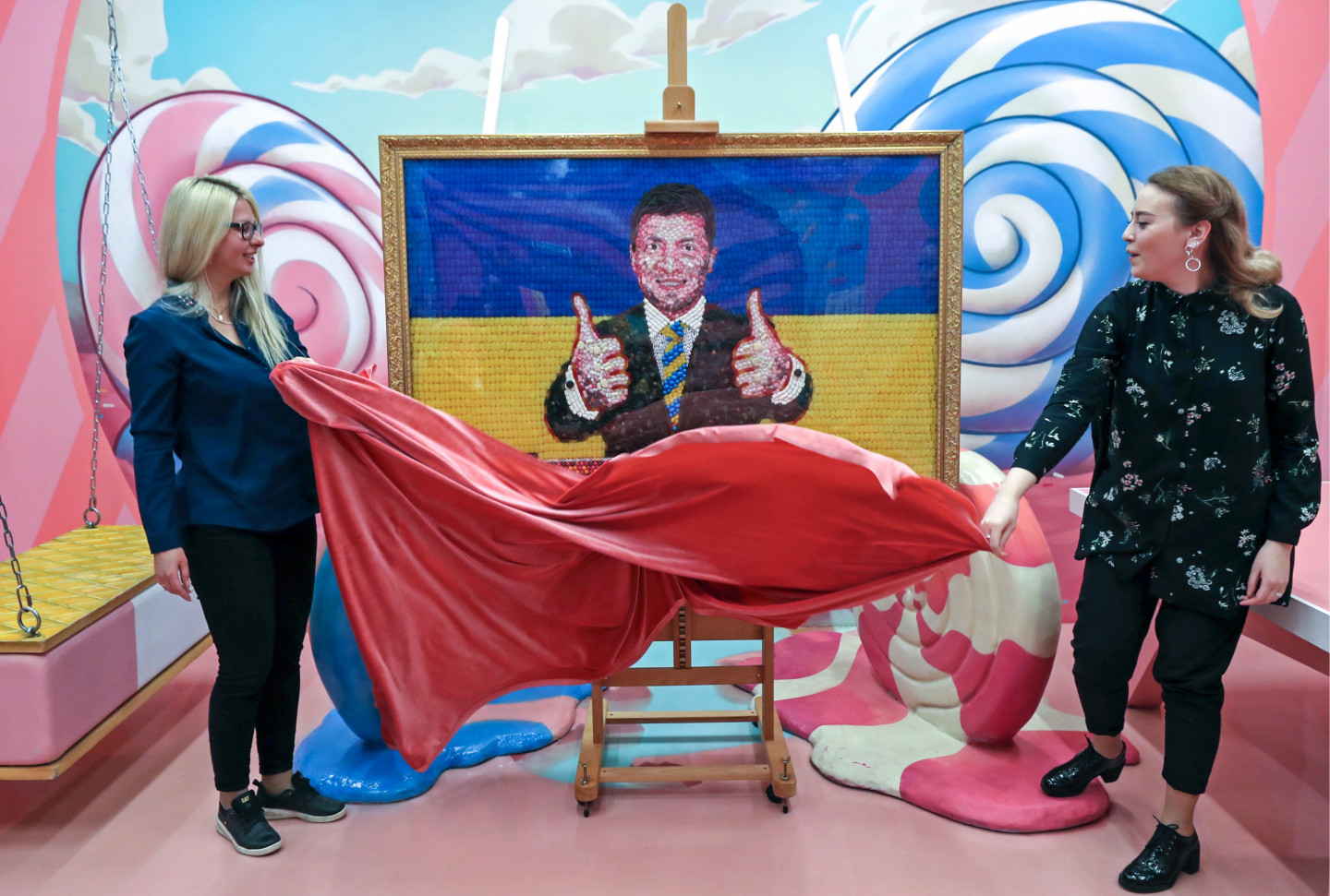 Krievijā, Sanktpēterburgā, Saldumu muzejā jauns eksponāts - jaunā Ukrainas prezidenta Volodimira Zelenska portrets, kas veidots no aptuveni 3000 Roshen firmas saldumiem. Jāpiebilst, ka Roshen pieder bijušajam Ukrainas prezidentam Petro Porošenko.