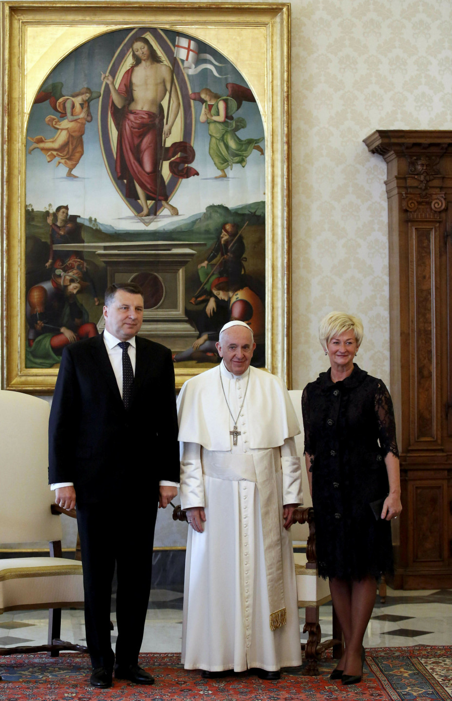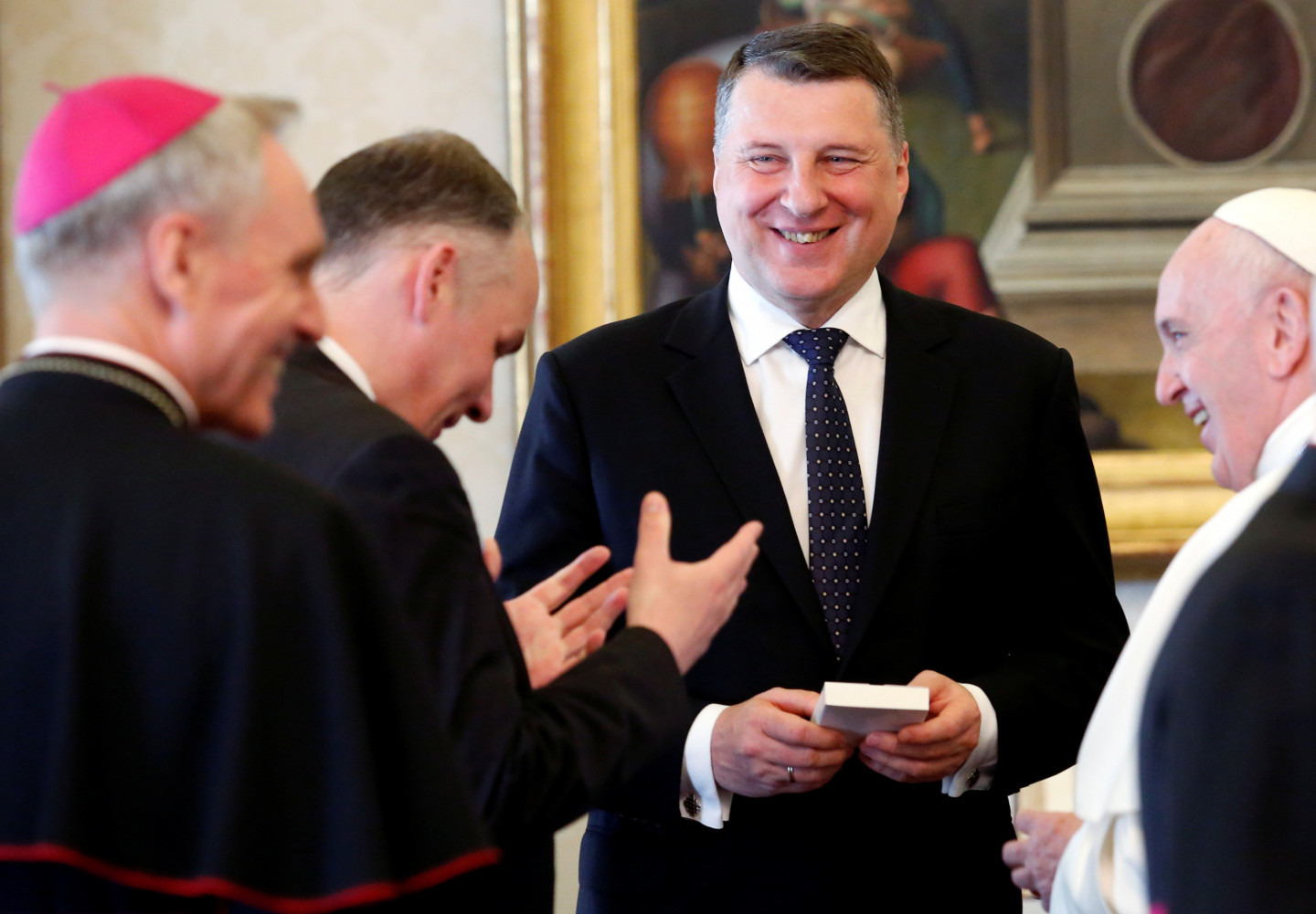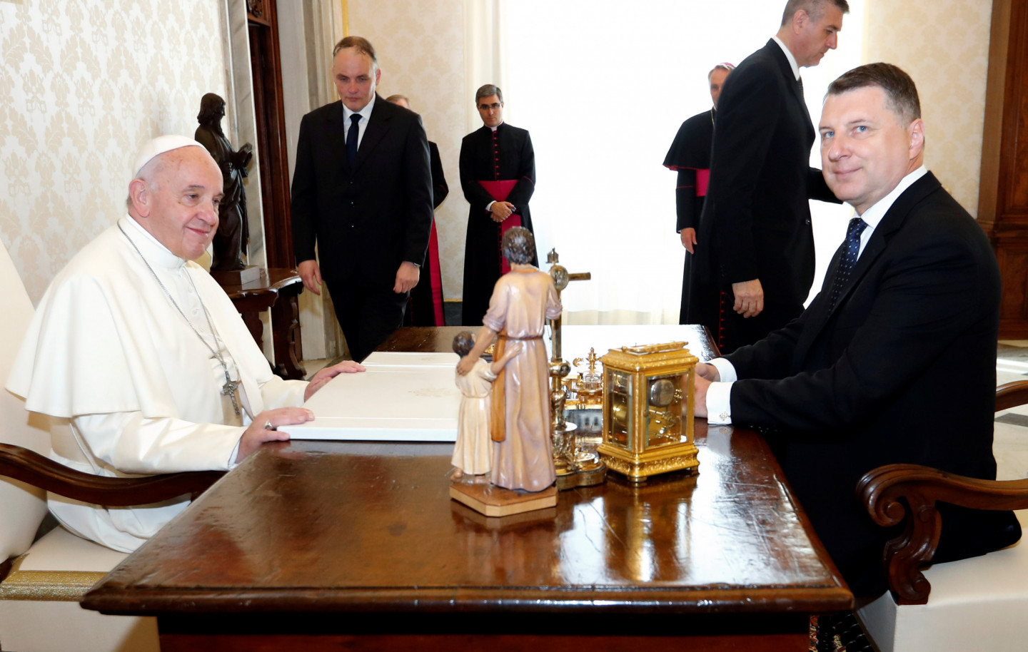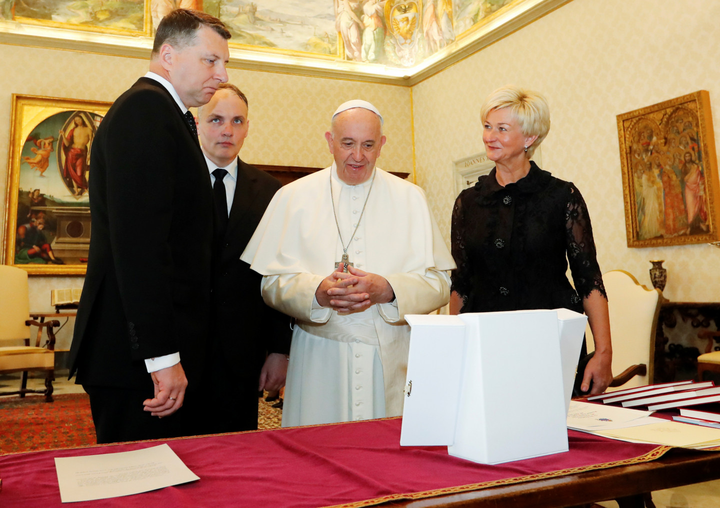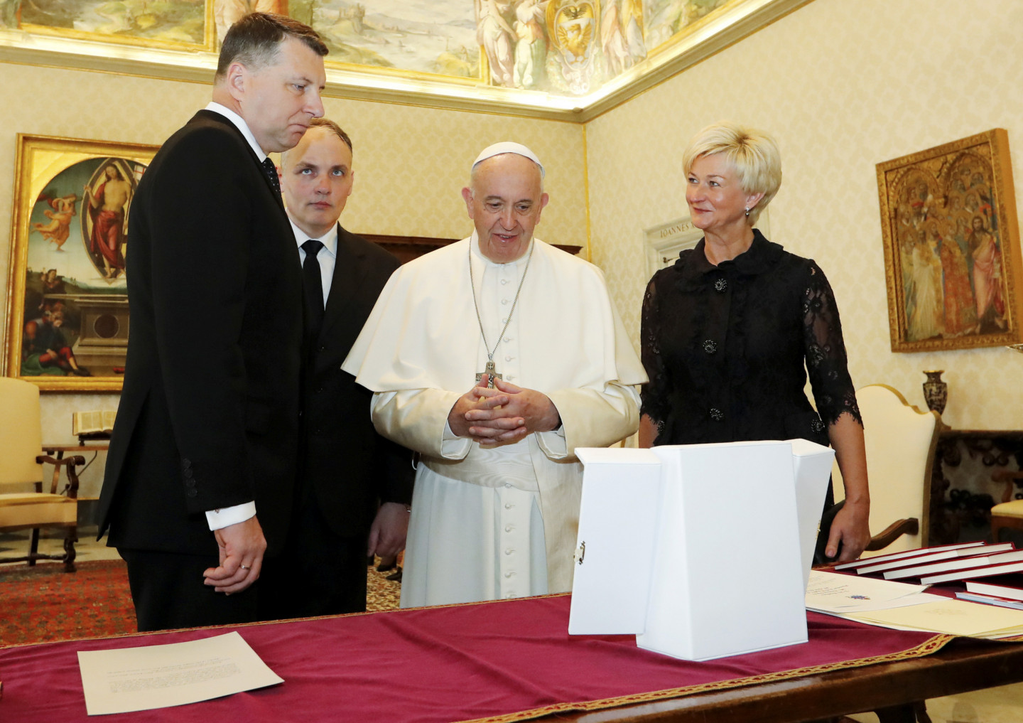 2019. gada 25. aprīlī Valsts prezidents Raimonds Vējonis un Iveta Vējones kundze apmeklēja Vatikānu. Vizītes laikā notika audience pie Viņa Svētības pāvesta Franciska, kā arī tikšanās ar Svētā Krēsla valsts sekretāru Viņa Eminenci kardinālu Pjetro Parolinu. Pateicībā par Viņa Svētības aizvadīto vizīti Latvijā pagājušā gada septembrī Valsts prezidents un Iveta Vējones kundze pasniedza īpaši izgatavotu dāvanu: miniatūru vitrāžu “Dievmāte-Terra Mariana patronese”. Dievmātes attēls ir fragments no Rīgas Doma vitrāžas “Madonna ar Jēzus bērnu mandorlā”, kas veidota 19.gadsimta beigās pēc vēlās gotikas kokgriezuma altāru un gleznu parauga. Dievmātes - Māras zemes patroneses tēls simbolizē svētību senajai Māras zemei un mūsdienu Latvijai. Dāvanu izgatavojusi Mākslas akadēmijas docente, stikla māksliniece Inita Ēmane, savukārt unikālo dāvanas iesaiņojumu no ādas veidojusi māksliniece Ilizane Grīnberga. Viņa Svētības pāvesta Franciska apustuliskā vizīte Baltijas valstīs norisinājās no 2018. gada 22. līdz 25. septembrim. Tās laikā viņš apmeklēja visas trīs Baltijas valstis. Šī bija otrā Viņa Svētības vizīte Latvijas vēsturē - 1993. gadā Latviju apmeklēja pāvests Jānis Pāvils II.
