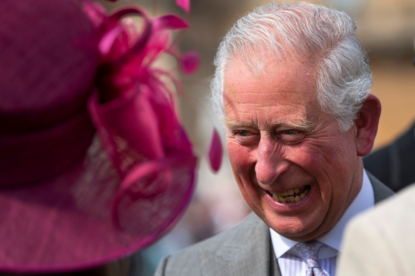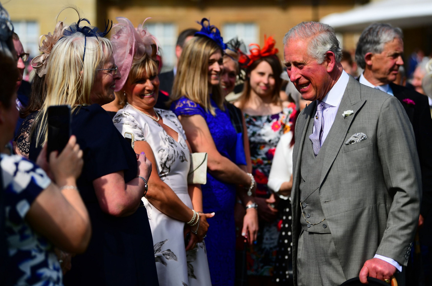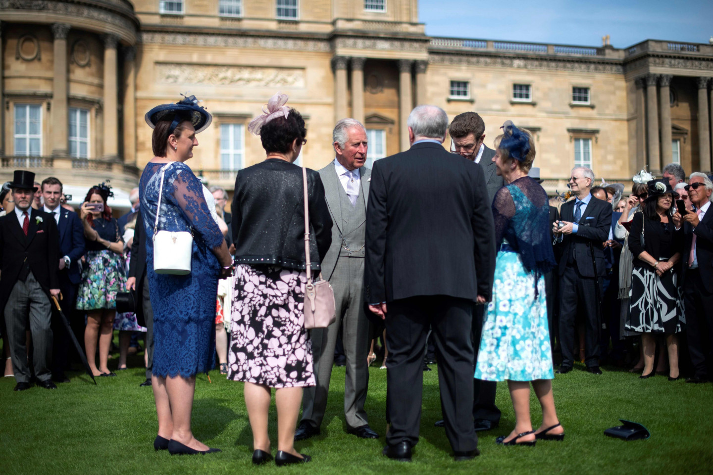 Princis Čārlzs sagaida viesus Bekingemas pils dārza ballītē