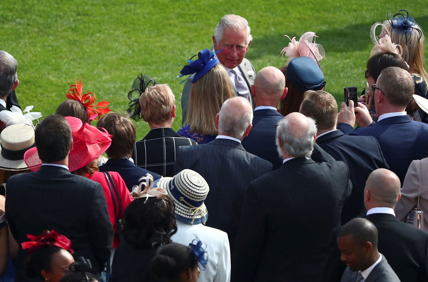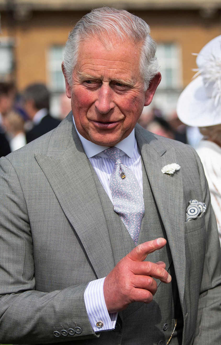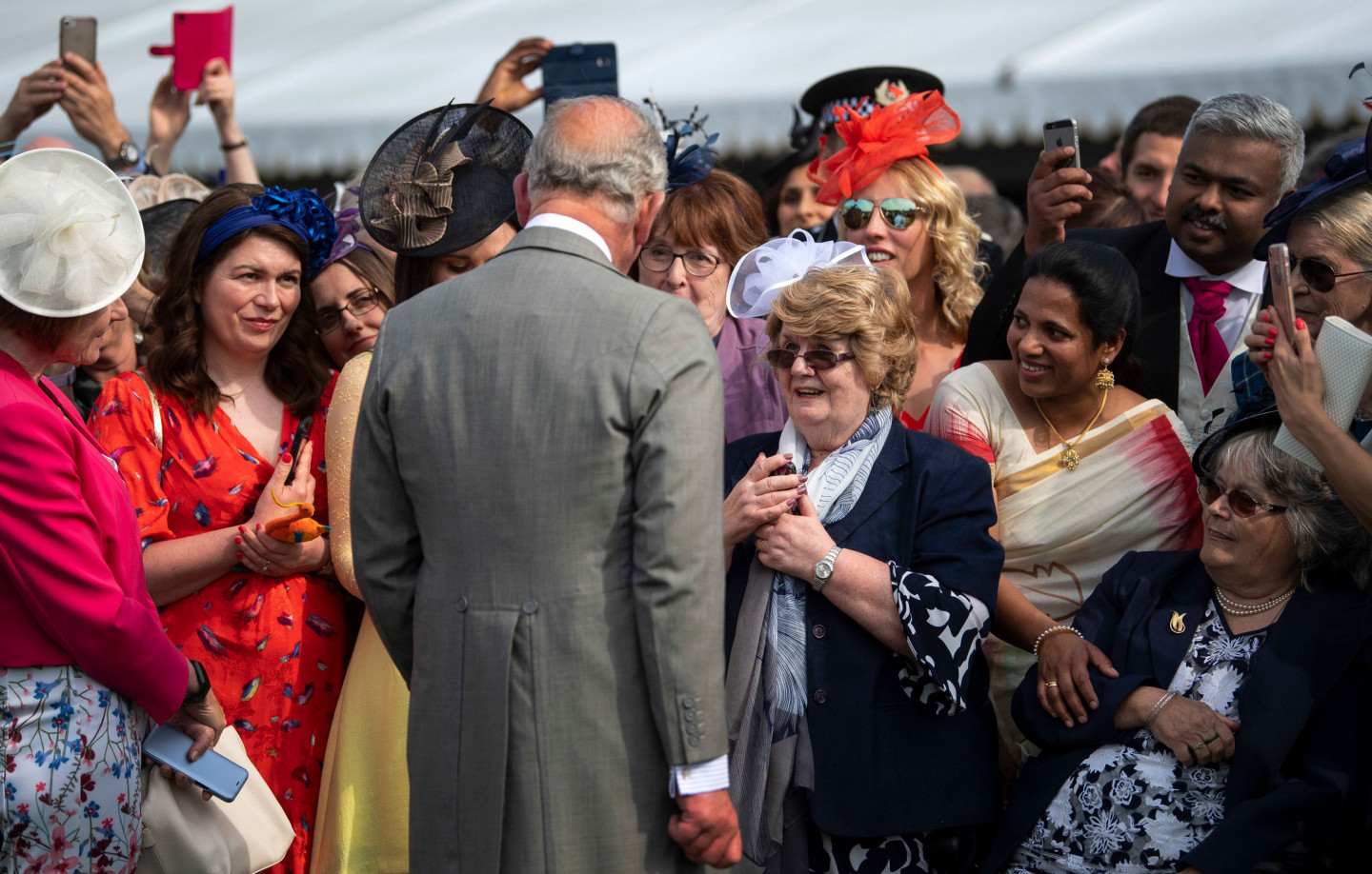 Princis Čārlzs sagaida viesus Bekingemas pils dārza ballītē