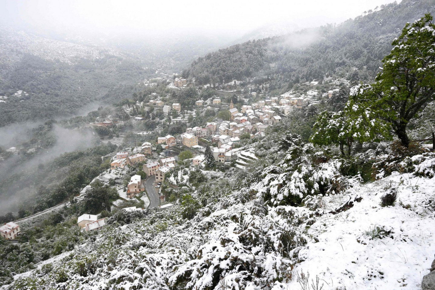Maija vidū Korsikā pēkšņi uzsnidzis sniegs