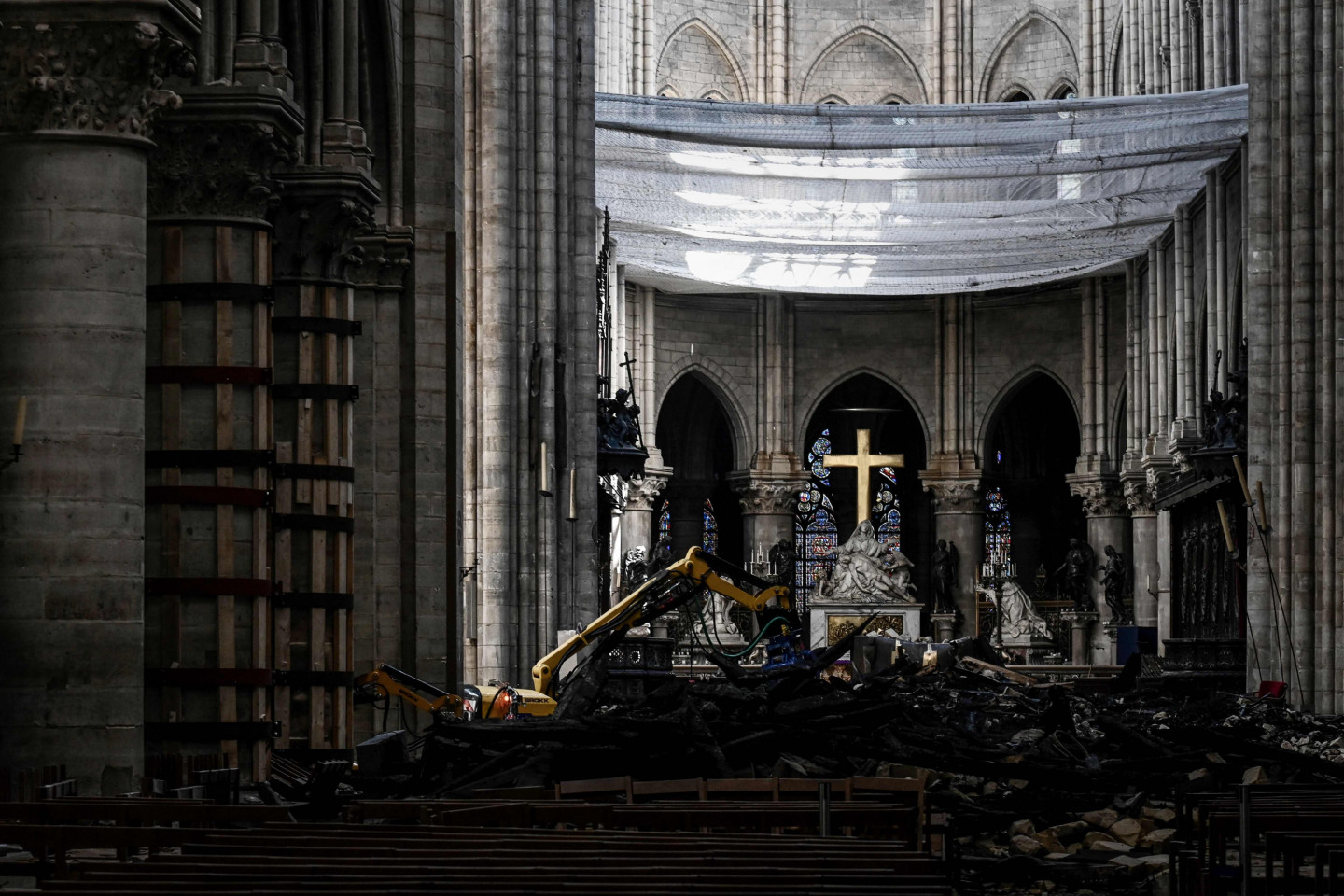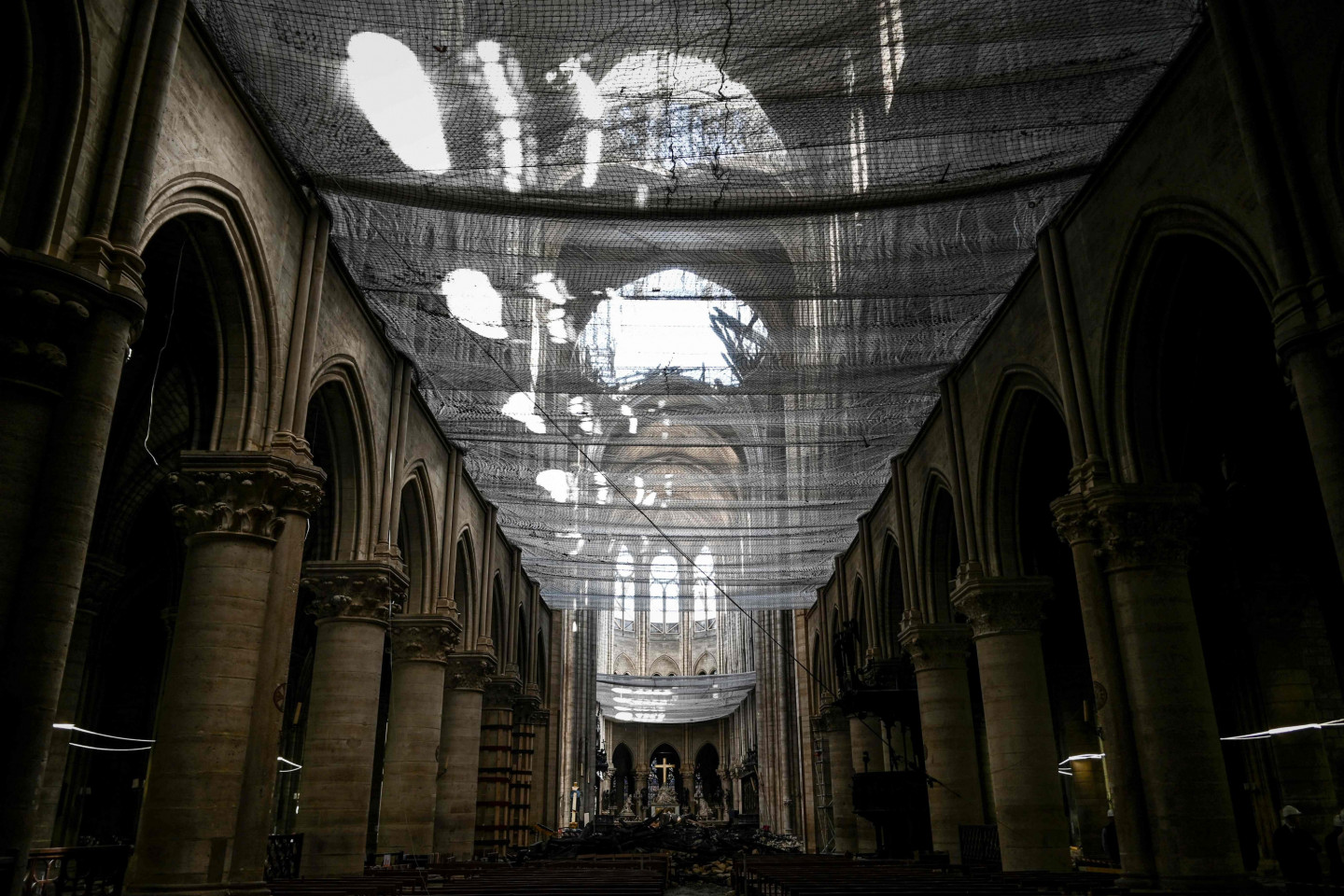 Pirms vairākām nedēļām postošā ugunsnelaimē pamatīgi cieta teju 800 gadus senā Parīzes Dievmātes katedrāli. Fotogrāfi uzņemtajos kadros ļauj ielūkoties, kā šobrīd izskatās katedrāles iekšpusē.
