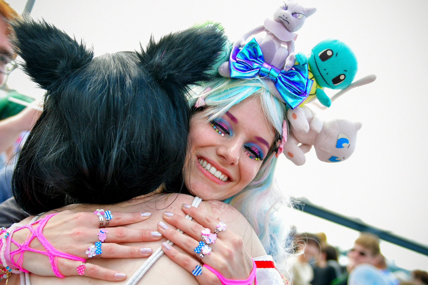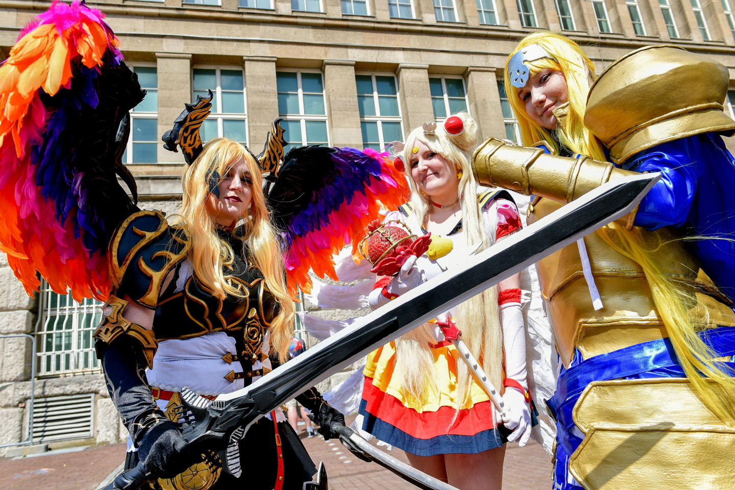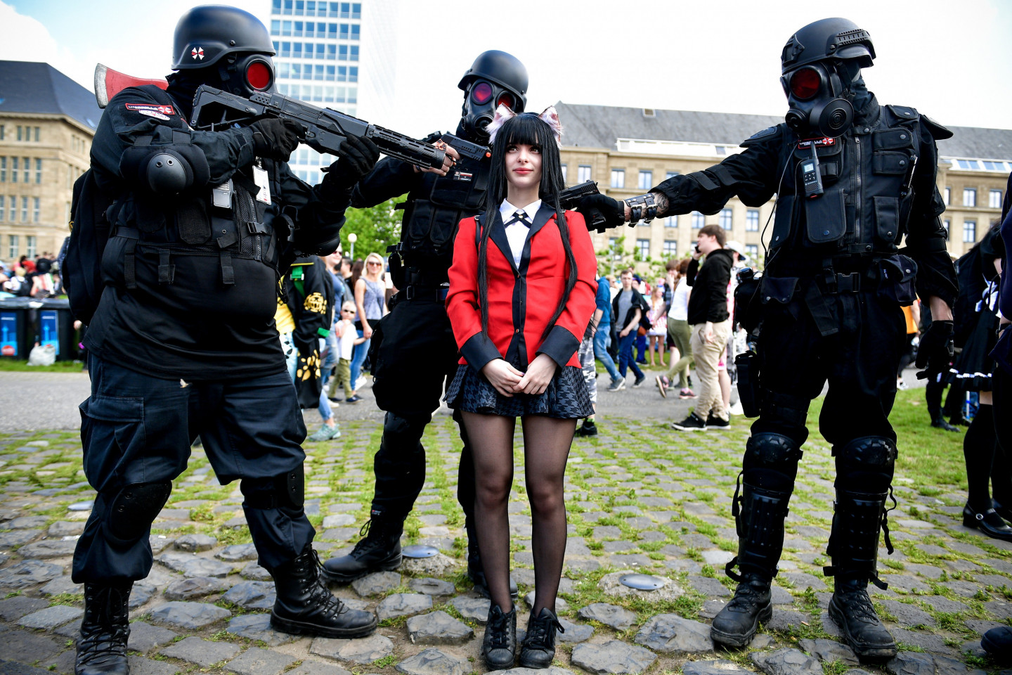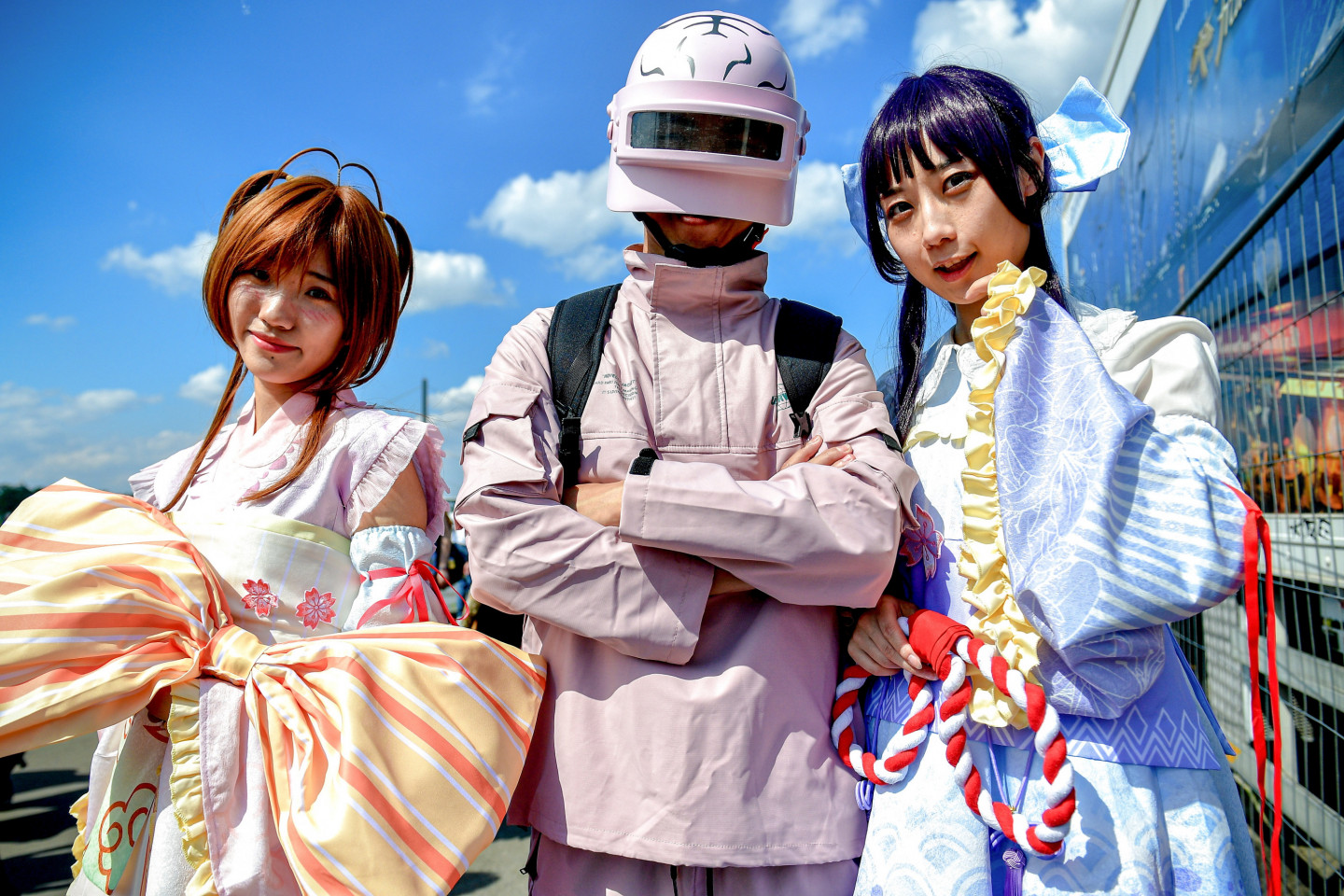 Cilvēki, tērpušies dažādos neparastos kostīmos, Diseldorfā, Vācijā, atzīmējuši 18. Japānas dienu. Tajā piedalījās teju miljons cilvēku.