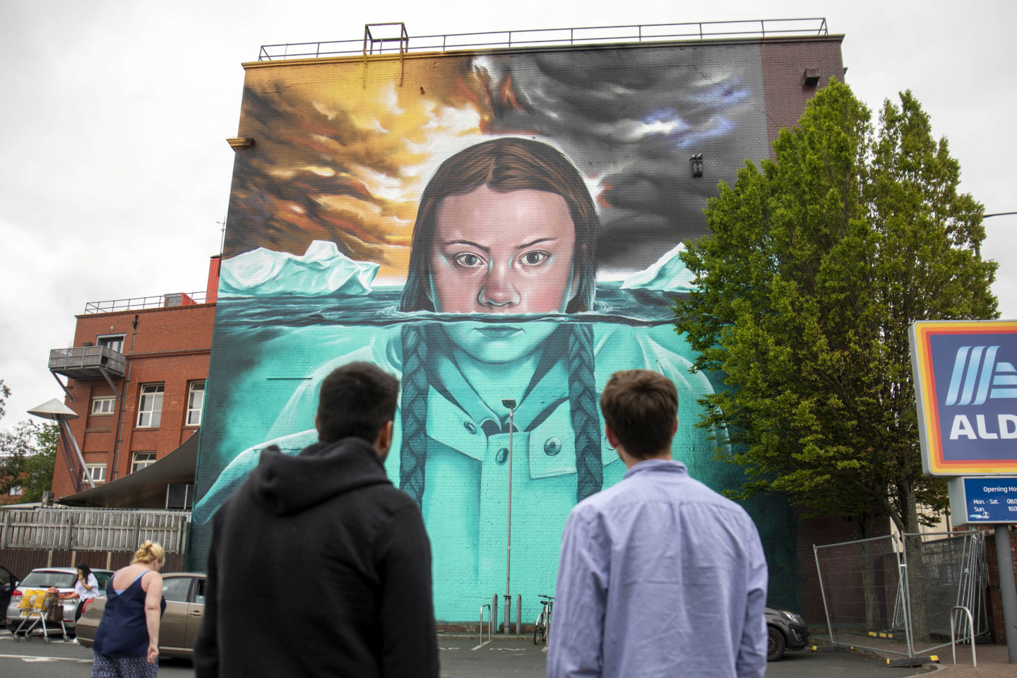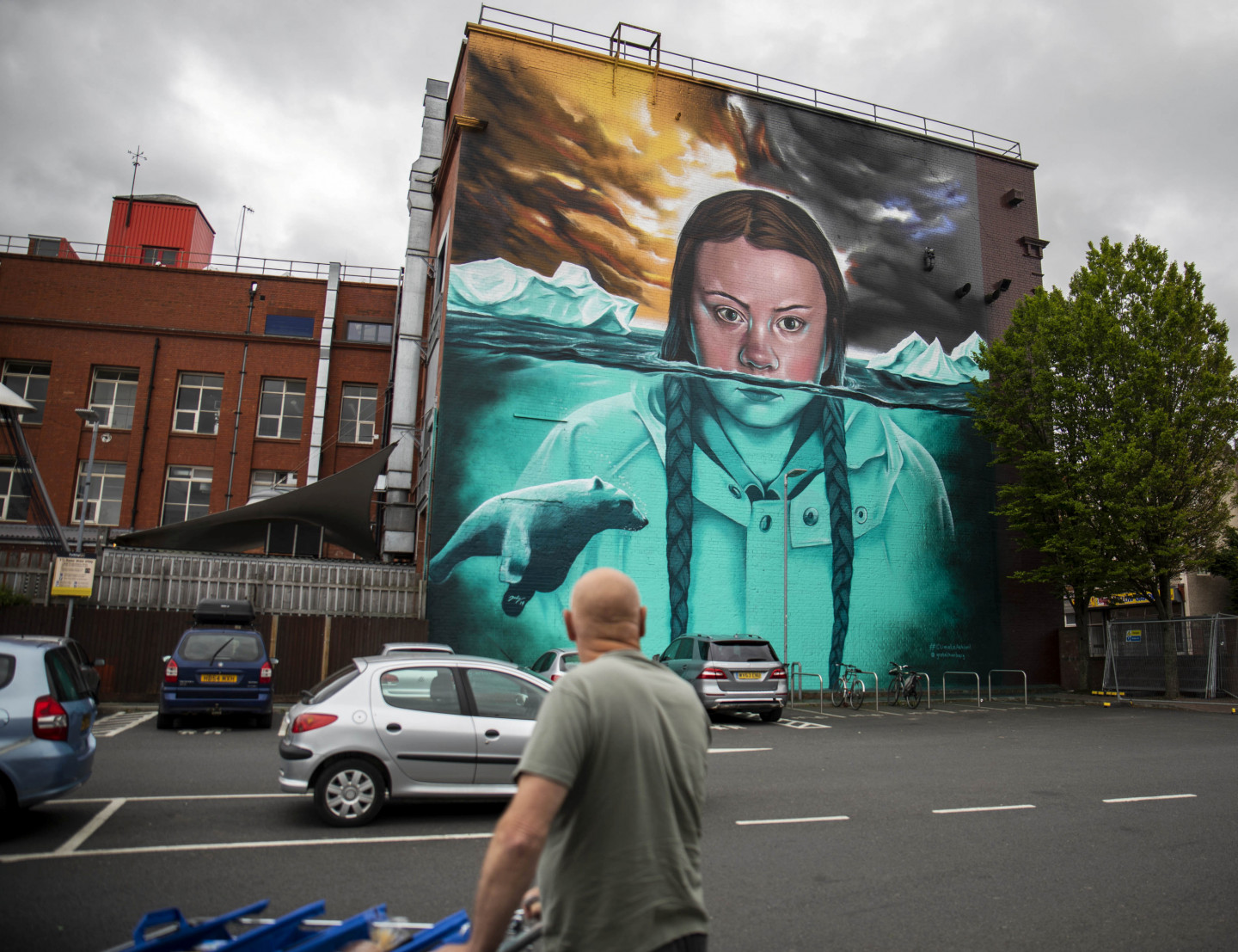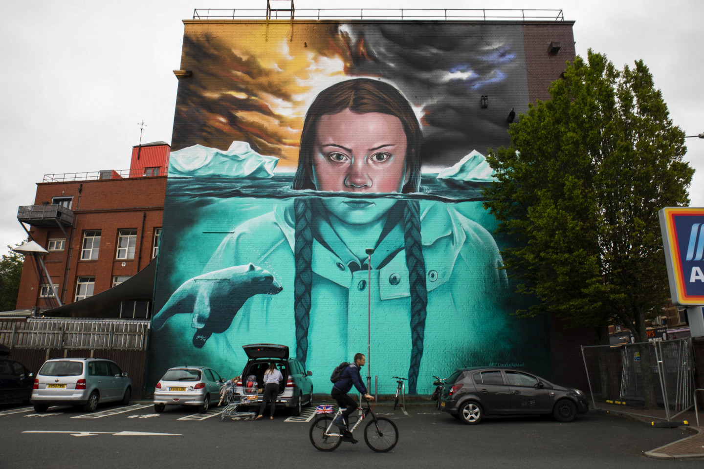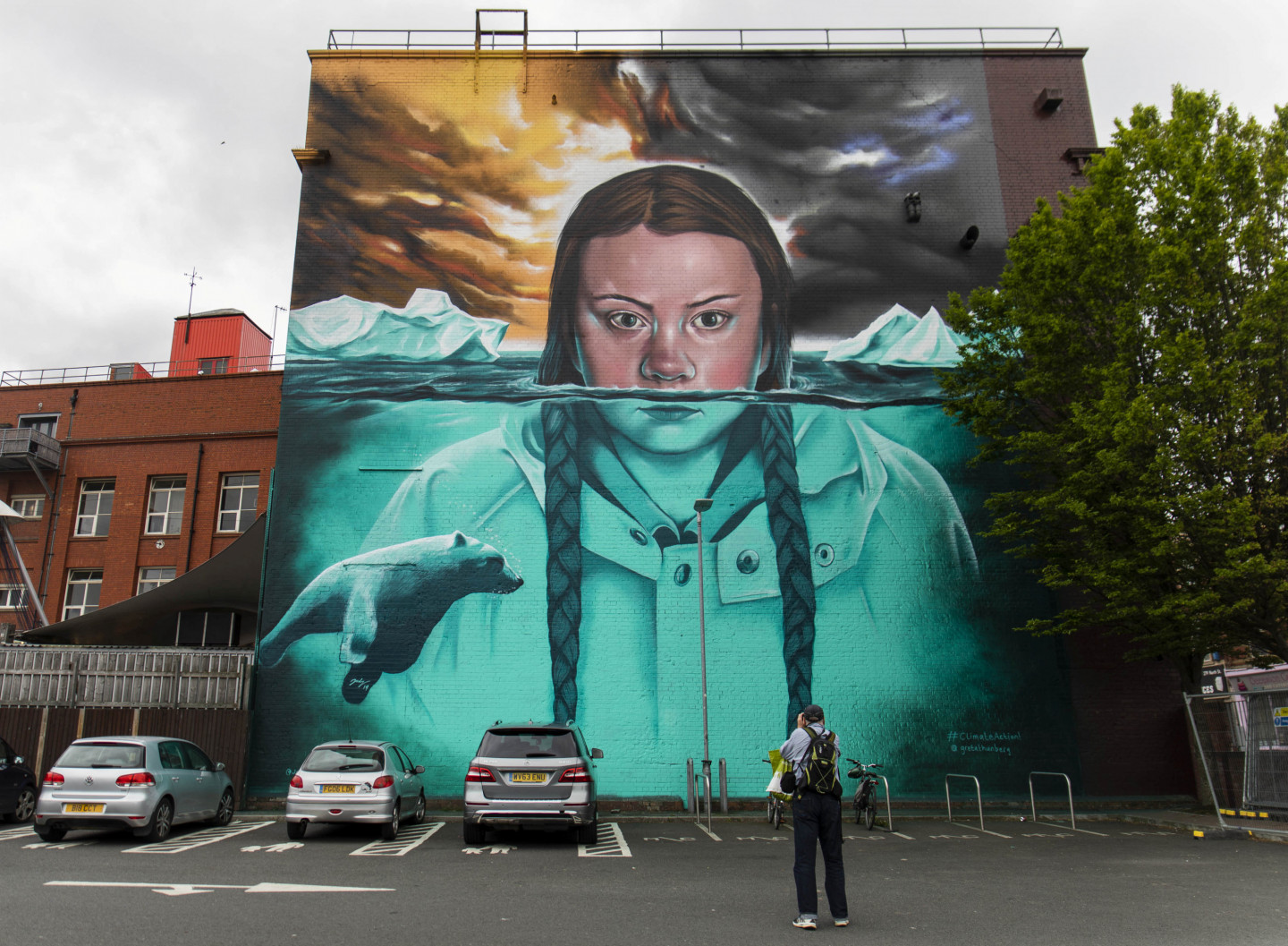 Milzīgs vides aktīvistes Grētas Tūnbergas attēls rotā ēku Bristolē
