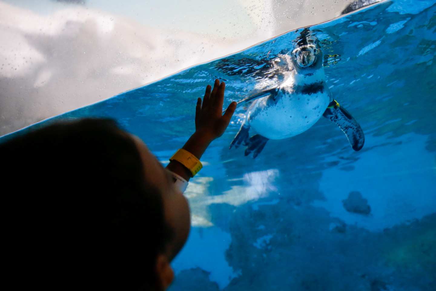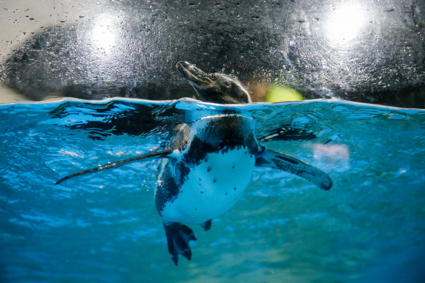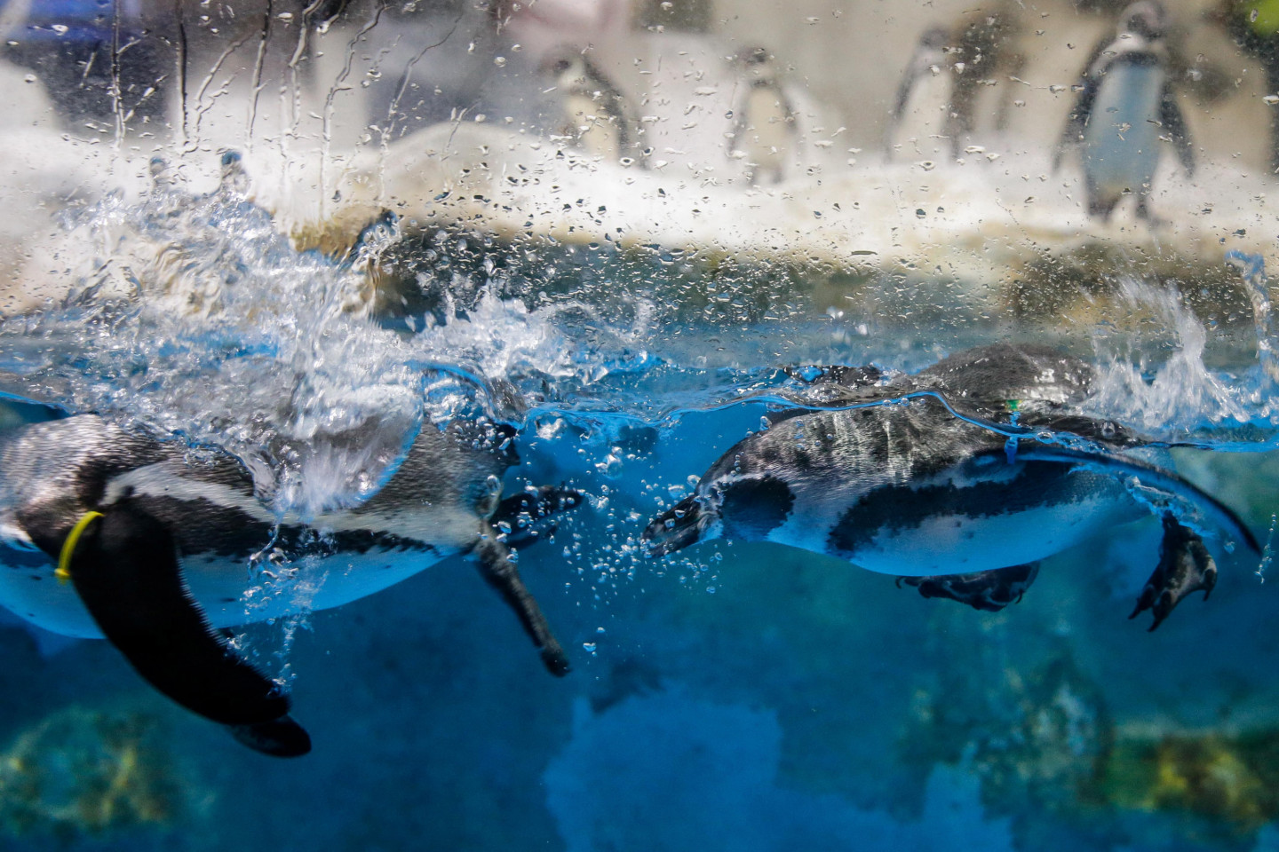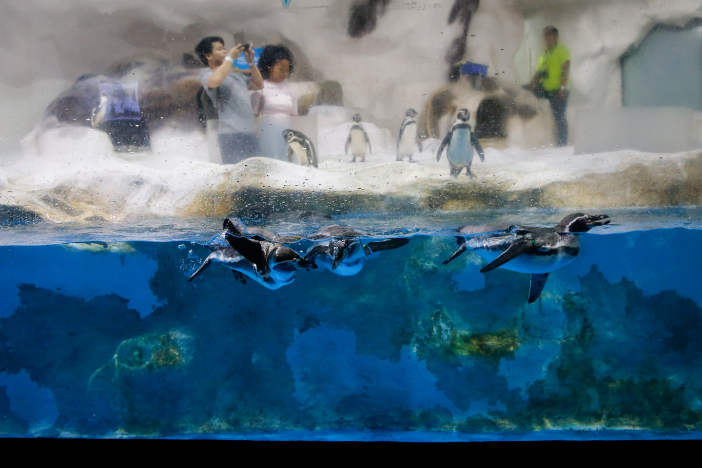 Skaistuļi! Pingvīni plunčājas akvārijā Filipīnās