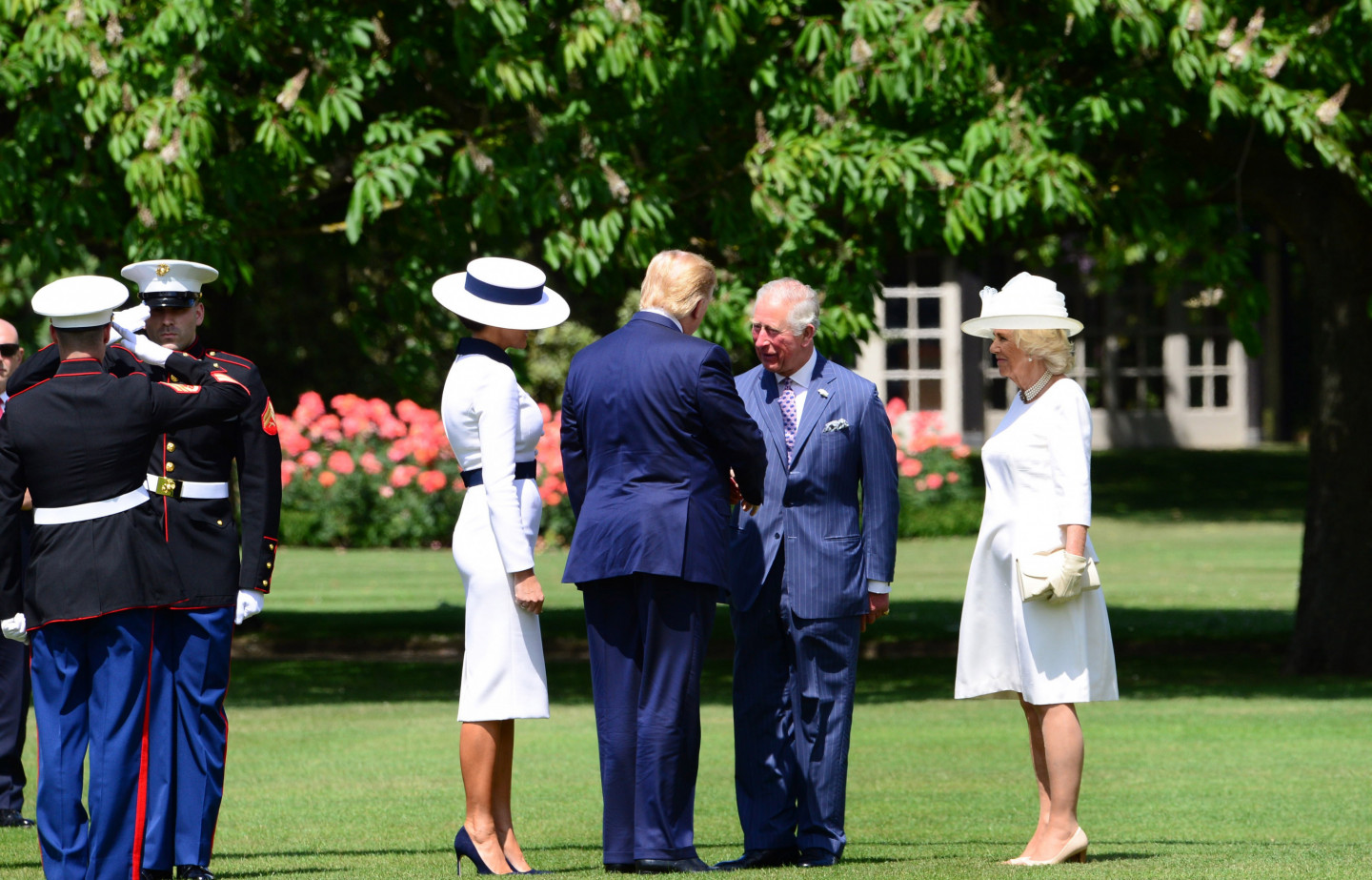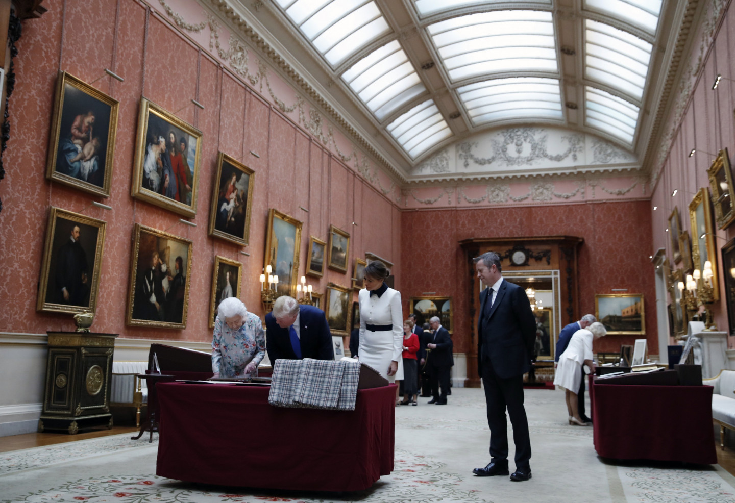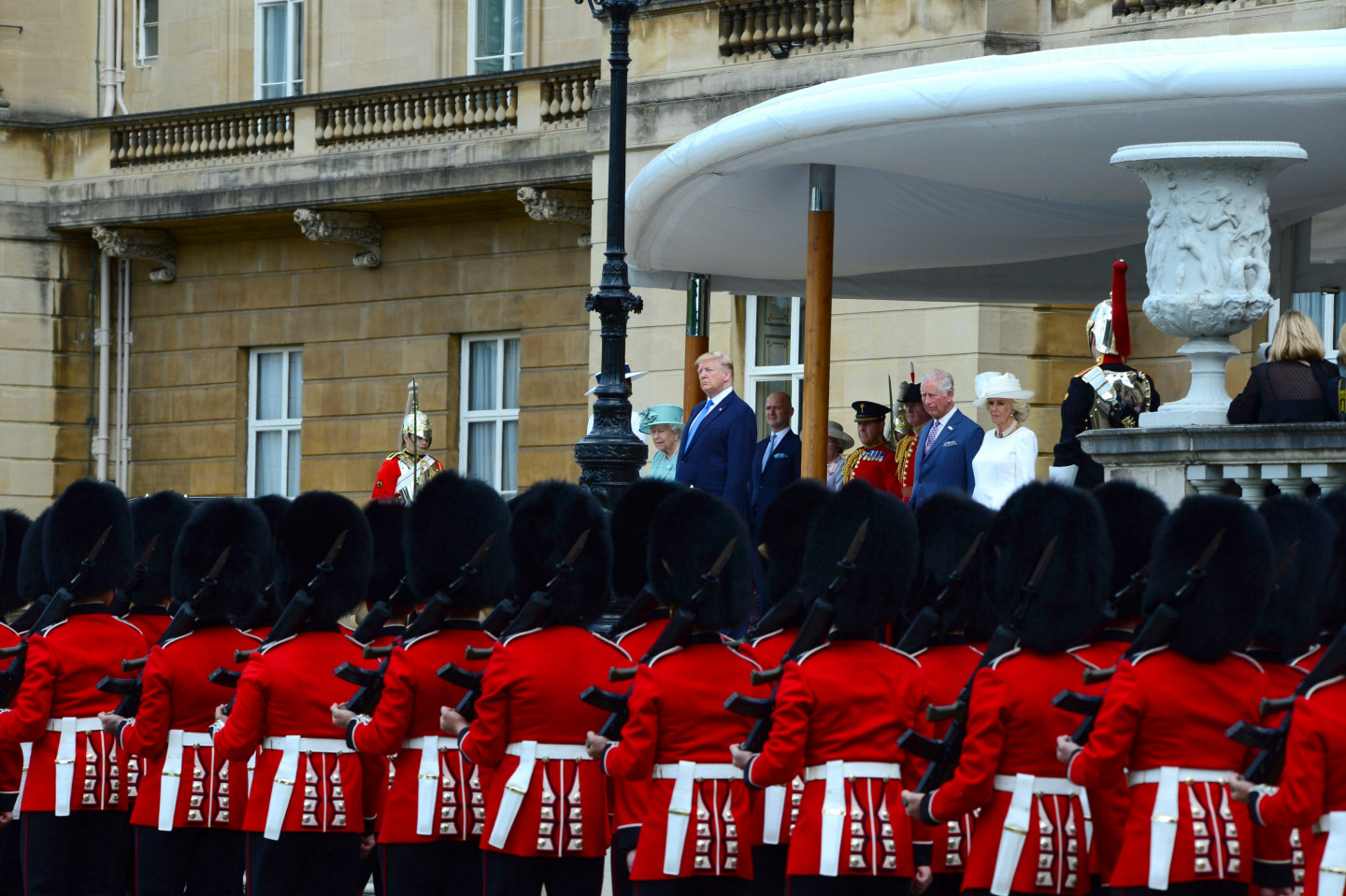 ASV prezidents Donalds Tramps pirmdien ieradies trīs dienu valsts vizītē Lielbritānijā, kur viņu uzņēmusi karaliene Elizabete II un princis Čārlzs. Trampu un viņa sievas Melānijas ierašanos Bekingemas pilī sagaidīja princis Čārlzs un viņa sieva Kamilla. Karaliene iznāca pie pils ieejas, lai apsveicinātos ar Trampu pāri, un viņi kopīgi noskatījās goda sardzi. Vēlāk viņiem paredzētas privātas pusdienas un vakarā bankets.
