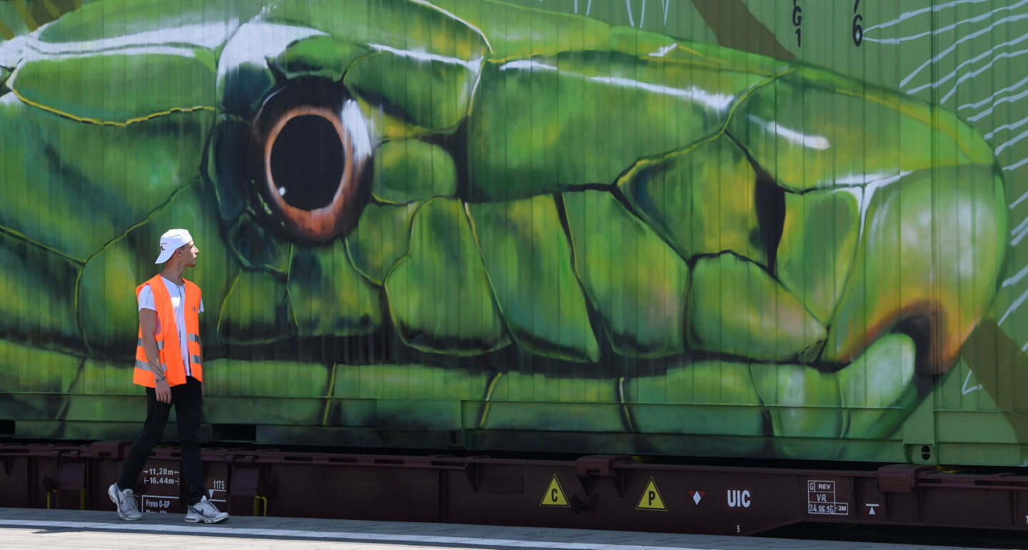 Skaisti! Beļģijas ielu mākslinieki uz vilciena vagoniem uzgleznojuši dzīvniekus