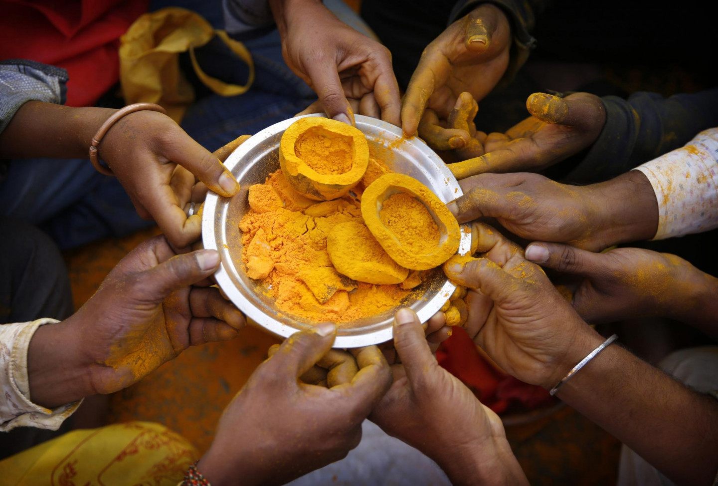 Indijā, pielūdzot dievus, mētājas ar kurkumu
