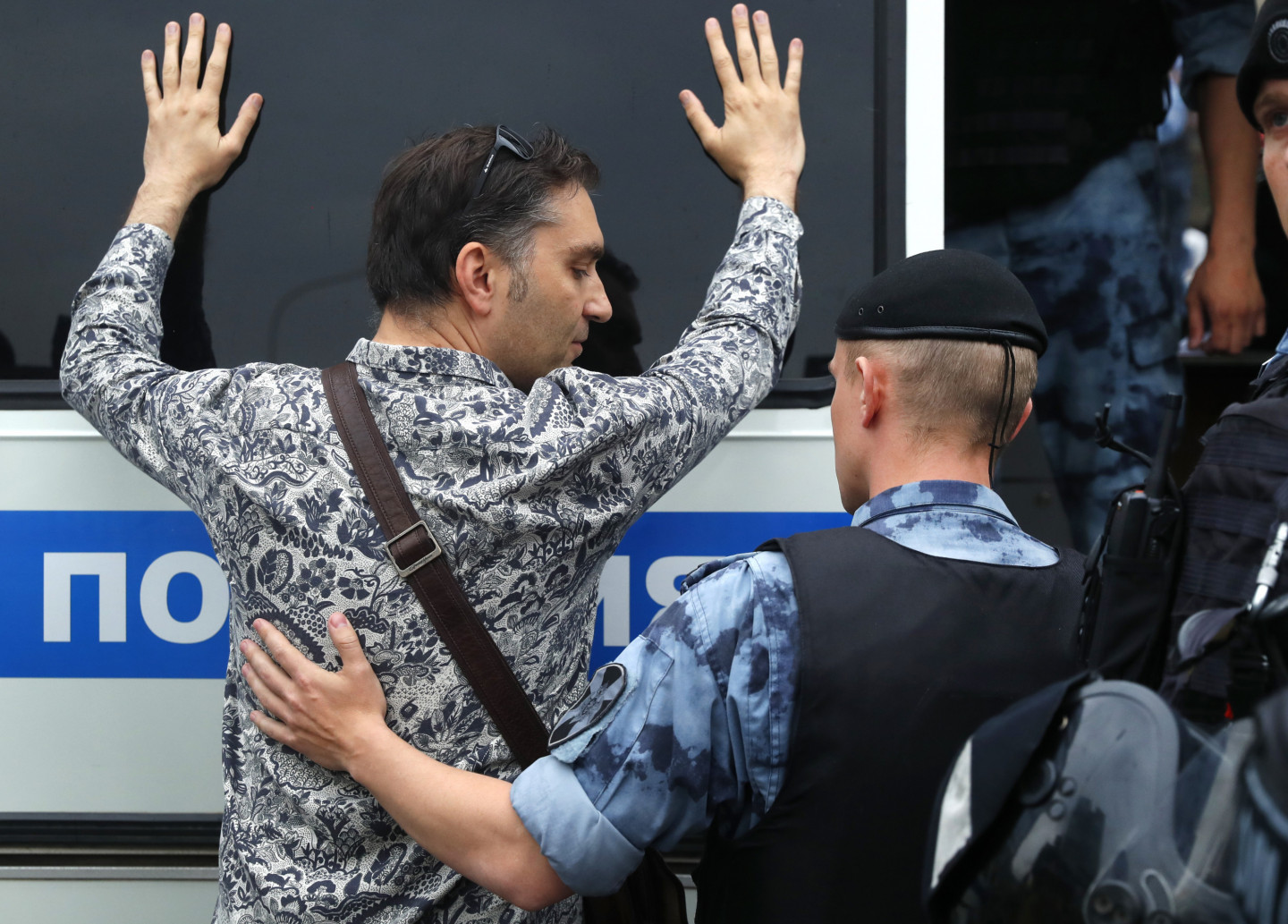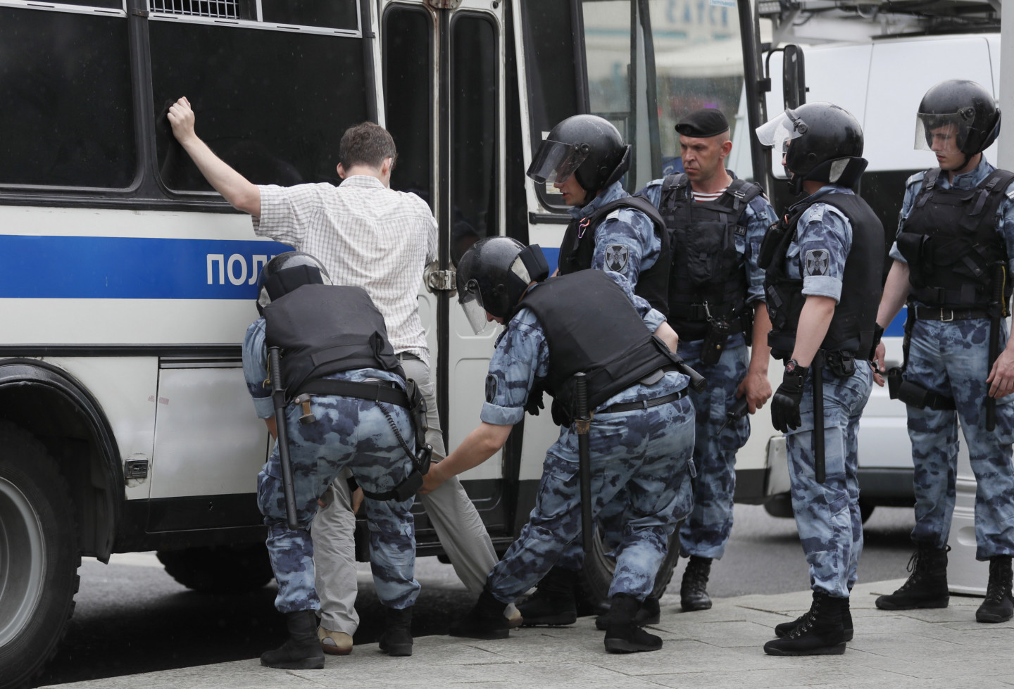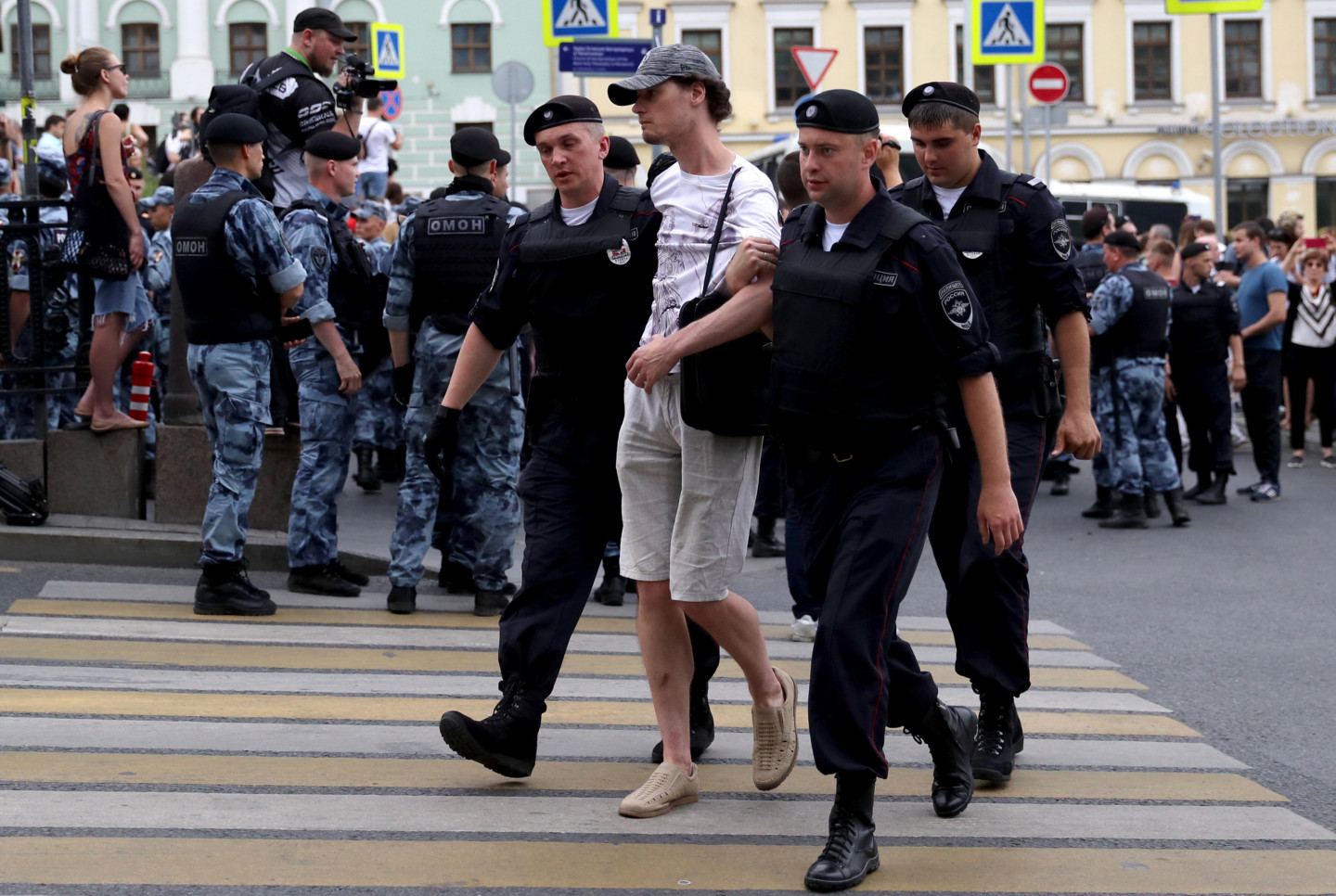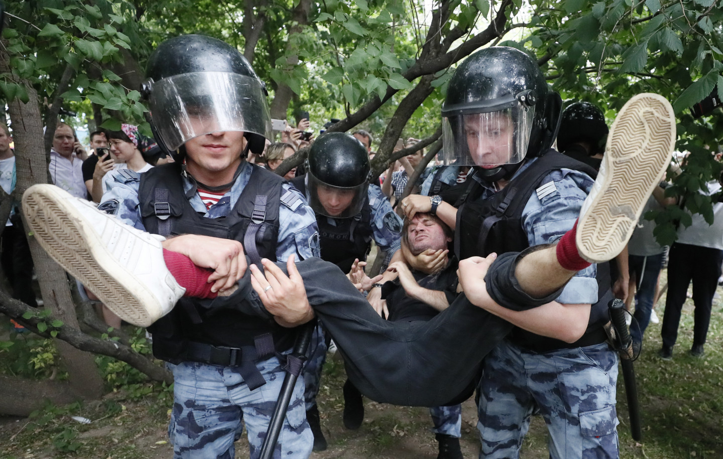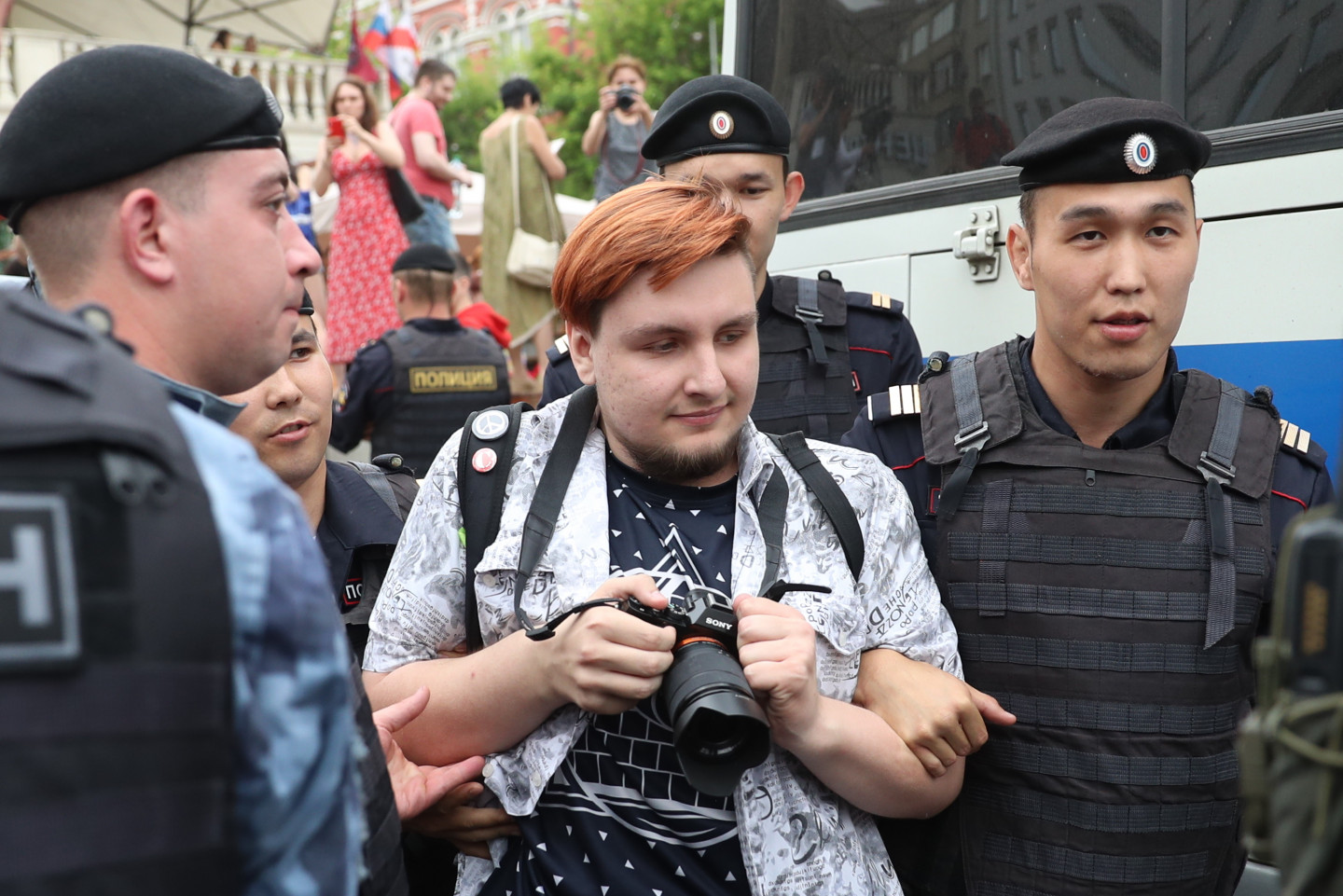Krievijas policija un nacionālā gvarde trešdien Maskavā gājiena laikā tīmekļa medija "Meduza" žurnālista Ivana Golunova atbalstam aizturējusi vairāk nekā 400 cilvēku, liecina organizācijas "OVD-Info" dati. Kā ziņo "Meduza" korespondents, daudzi no aizturētajiem bija uzvilkuši kreklus ar uzrakstu "Es/Mēs Ivans Golunovs". Aizturēto vidū ir "Meduza", "Reuters", "Kommersant", "Doždj" un "MBH-Medija" žurnālisti, kā arī Vācijas izdevuma "Der Spiegel" pārstāvis un Francijas žurnāla "Le Temps" fotogrāfs. Tāpat aizturēts opozīcijas līderis Aleksejs Navaļnijs. "Varasiestādes ir ļoti nobijušās no fantastiskās un vienprātīgās solidaritātes demonstrēšanas Golunova lietā," tviterī paziņojis Navaļnijs. "Tāpēc viņiem ir svarīgi sagraut kopīgo solidaritāti un pēc tam iebiedēt un ielikt cietumā tos, kas neatkāpjas." Kā vēsta "Radio Brīvība", policija vispirms aiztur žurnālistus un fotogrāfus. Radiostacija lēš, ka gājienā piedalās vismaz tūkstotis cilvēku. Savukārt Maskavas policija paziņojusi, ka akcijā piedalījušies aptuveni 1200 cilvēku, no kuriem 200 aizturēti. Aizturētajiem par piedalīšanos nesankcionētā protesta akcijā draud līdz 20 dienām ilgs administratīvais arests. Daļai gājiena dalībnieku izdevies nonākt tā galamērķī - pie Iekšlietu ministrijas Galvenās pārvaldes ēkas, kur notiek individuāli piketi. Gājiens notiek, neskatoties uz krimināllietas izbeigšanu pret Golunovu un viņa atbrīvošanu no mājas aresta iepriekšējā dienā. Gājiena rīkotāji nolēma neatteikties no akcijas, pieprasot veikt izmeklēšanu un sodīt vainīgos par krimināllietas safabricēšanu. Maskavas dome atteicās saskaņot gājienu, apgalvojot, ka tas varētu traucēt trešdien atzīmējamo Krievijas dienu. Arī Krievijas otras lielākās pilsētas Sanktpēterburgas centrā trešdien pulcējās aptuveni 100 cilvēku, kas pieprasīja atbrīvot policijas patvaļas upurus. Jau vēstīts, ka Golunovs otrdien atbrīvots pēc tam, kad tika pieņemts lēmums izbeigt krimināllietu pret viņu. Krievijas iekšlietu ministrs Vladimirs Kolokoļcevs otrdien paziņoja, ka pieņemts lēmums 36 gadus veco Golunovu atbrīvot no atbildības un izbeigt krimināllietu pret viņu. Šāds lēmums pieņemts, jo nav pierādījumu viņa vainai. Golunovs, kurš strādā Rīgā bāzētajā krievu tīmekļa medijā "Meduza", tika aizturēts pagājušajā ceturtdienā Maskavā un viņam tika izvirzītas apsūdzības mēģinājumā tirgot narkotikas, par ko draud 10 līdz 20 gadu cietumsods, un sestdien viņam noteikts pirmstiesas drošības līdzeklis mājas arests. Izmeklētāji skaidroja, ka Golunovs esot mēģinājis pārdot narkotisko vielu mefedronu. Golunovs uzstāj, ka divas paciņas ar nezināmu vielu viņam "piesviestas". Kolokoļcevs otrdien arī pavēstīja, ka no amata atstādināti tiesībsargājošo iestāžu darbinieki, kas nodarbojās ar Golunova lietu. Pret policistiem, kas aizturēja žurnālistu, uzsākta pārbaude.