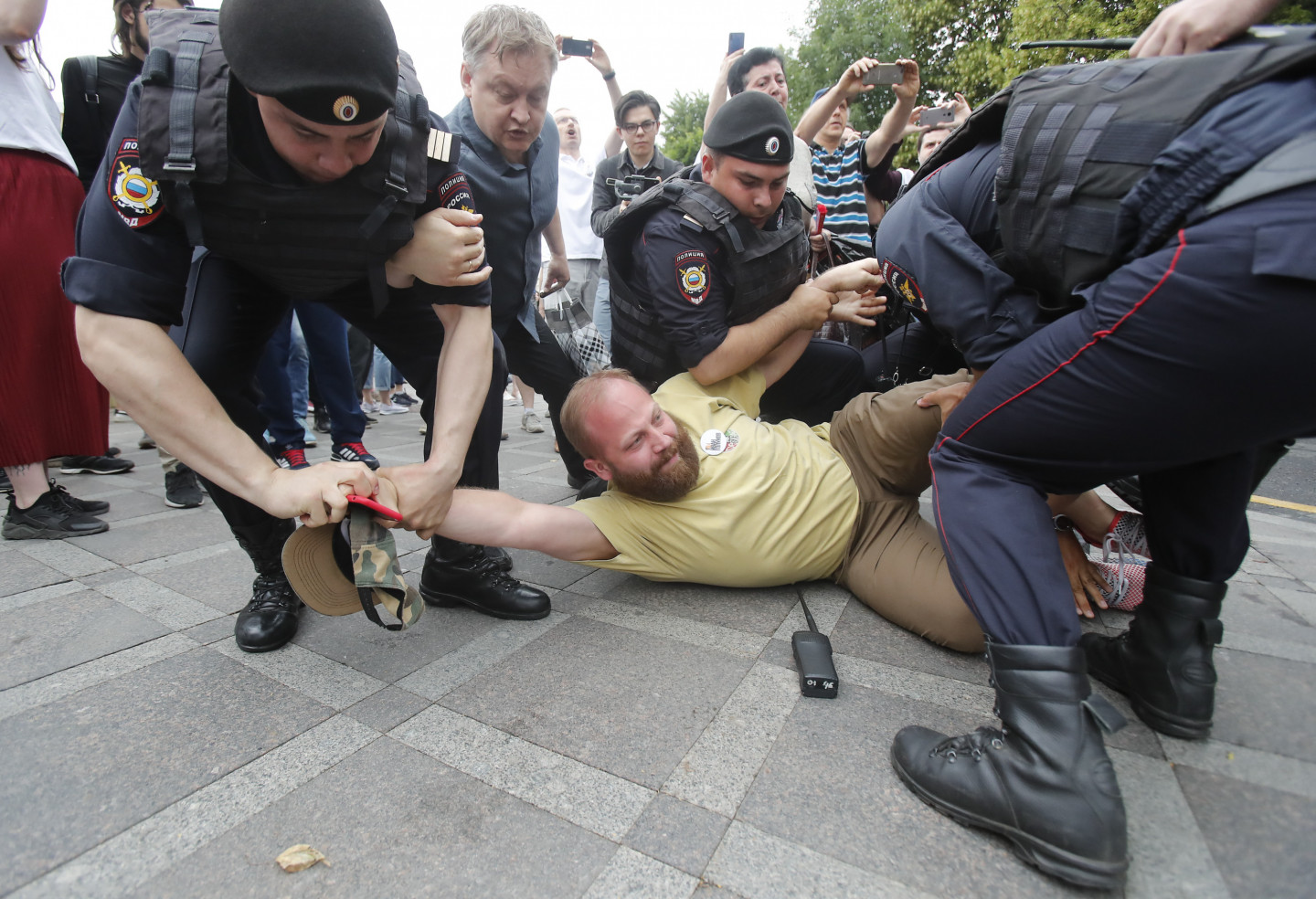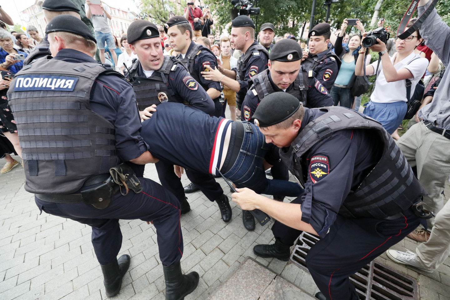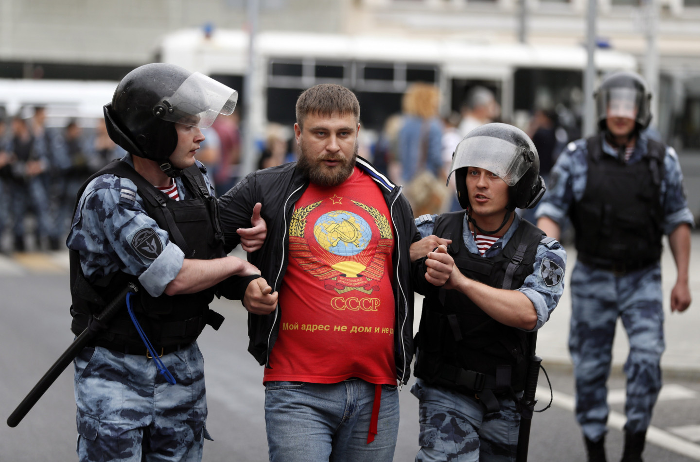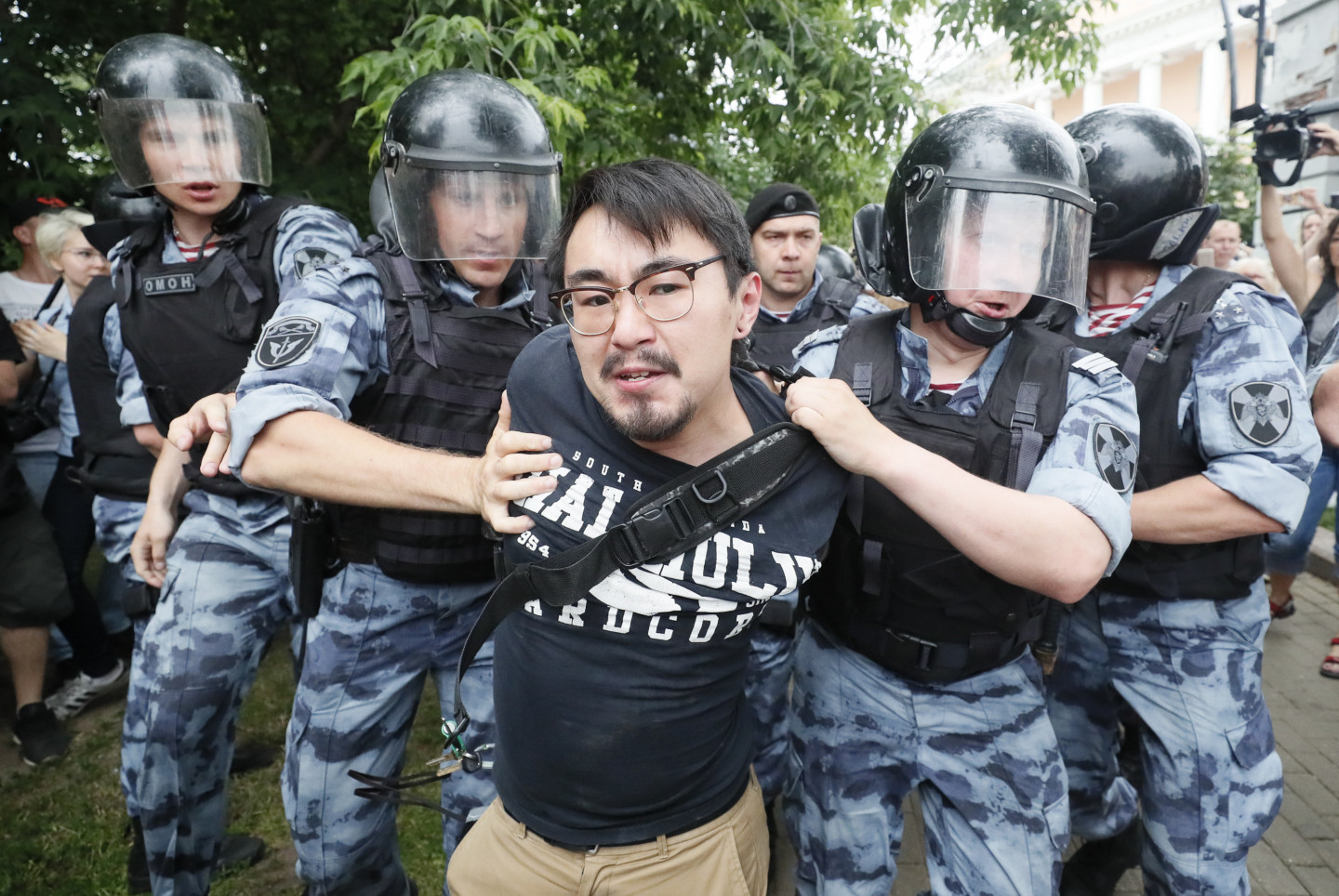 Krievijas policija un nacionālā gvarde trešdien Maskavā gājiena laikā tīmekļa medija "Meduza" žurnālista Ivana Golunova atbalstam aizturējusi vairāk nekā 400 cilvēku, liecina organizācijas "OVD-Info" dati. Kā ziņo "Meduza" korespondents, daudzi no aizturētajiem bija uzvilkuši kreklus ar uzrakstu "Es/Mēs Ivans Golunovs". Aizturēto vidū ir "Meduza", "Reuters", "Kommersant", "Doždj" un "MBH-Medija" žurnālisti, kā arī Vācijas izdevuma "Der Spiegel" pārstāvis un Francijas žurnāla "Le Temps" fotogrāfs. Tāpat aizturēts opozīcijas līderis Aleksejs Navaļnijs. "Varasiestādes ir ļoti nobijušās no fantastiskās un vienprātīgās solidaritātes demonstrēšanas Golunova lietā," tviterī paziņojis Navaļnijs. "Tāpēc viņiem ir svarīgi sagraut kopīgo solidaritāti un pēc tam iebiedēt un ielikt cietumā tos, kas neatkāpjas." Kā vēsta "Radio Brīvība", policija vispirms aiztur žurnālistus un fotogrāfus. Radiostacija lēš, ka gājienā piedalās vismaz tūkstotis cilvēku. Savukārt Maskavas policija paziņojusi, ka akcijā piedalījušies aptuveni 1200 cilvēku, no kuriem 200 aizturēti. Aizturētajiem par piedalīšanos nesankcionētā protesta akcijā draud līdz 20 dienām ilgs administratīvais arests. Daļai gājiena dalībnieku izdevies nonākt tā galamērķī - pie Iekšlietu ministrijas Galvenās pārvaldes ēkas, kur notiek individuāli piketi. Gājiens notiek, neskatoties uz krimināllietas izbeigšanu pret Golunovu un viņa atbrīvošanu no mājas aresta iepriekšējā dienā. Gājiena rīkotāji nolēma neatteikties no akcijas, pieprasot veikt izmeklēšanu un sodīt vainīgos par krimināllietas safabricēšanu. Maskavas dome atteicās saskaņot gājienu, apgalvojot, ka tas varētu traucēt trešdien atzīmējamo Krievijas dienu. Arī Krievijas otras lielākās pilsētas Sanktpēterburgas centrā trešdien pulcējās aptuveni 100 cilvēku, kas pieprasīja atbrīvot policijas patvaļas upurus. Jau vēstīts, ka Golunovs otrdien atbrīvots pēc tam, kad tika pieņemts lēmums izbeigt krimināllietu pret viņu. Krievijas iekšlietu ministrs Vladimirs Kolokoļcevs otrdien paziņoja, ka pieņemts lēmums 36 gadus veco Golunovu atbrīvot no atbildības un izbeigt krimināllietu pret viņu. Šāds lēmums pieņemts, jo nav pierādījumu viņa vainai. Golunovs, kurš strādā Rīgā bāzētajā krievu tīmekļa medijā "Meduza", tika aizturēts pagājušajā ceturtdienā Maskavā un viņam tika izvirzītas apsūdzības mēģinājumā tirgot narkotikas, par ko draud 10 līdz 20 gadu cietumsods, un sestdien viņam noteikts pirmstiesas drošības līdzeklis mājas arests. Izmeklētāji skaidroja, ka Golunovs esot mēģinājis pārdot narkotisko vielu mefedronu. Golunovs uzstāj, ka divas paciņas ar nezināmu vielu viņam "piesviestas". Kolokoļcevs otrdien arī pavēstīja, ka no amata atstādināti tiesībsargājošo iestāžu darbinieki, kas nodarbojās ar Golunova lietu. Pret policistiem, kas aizturēja žurnālistu, uzsākta pārbaude.