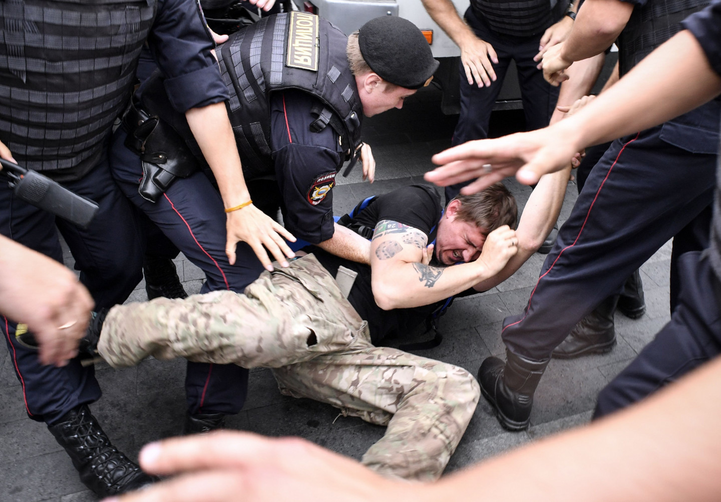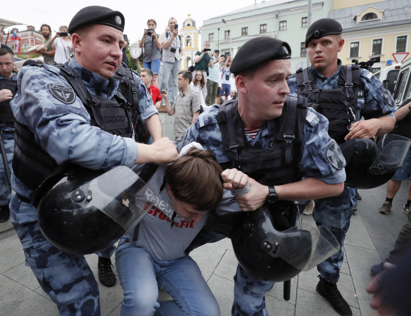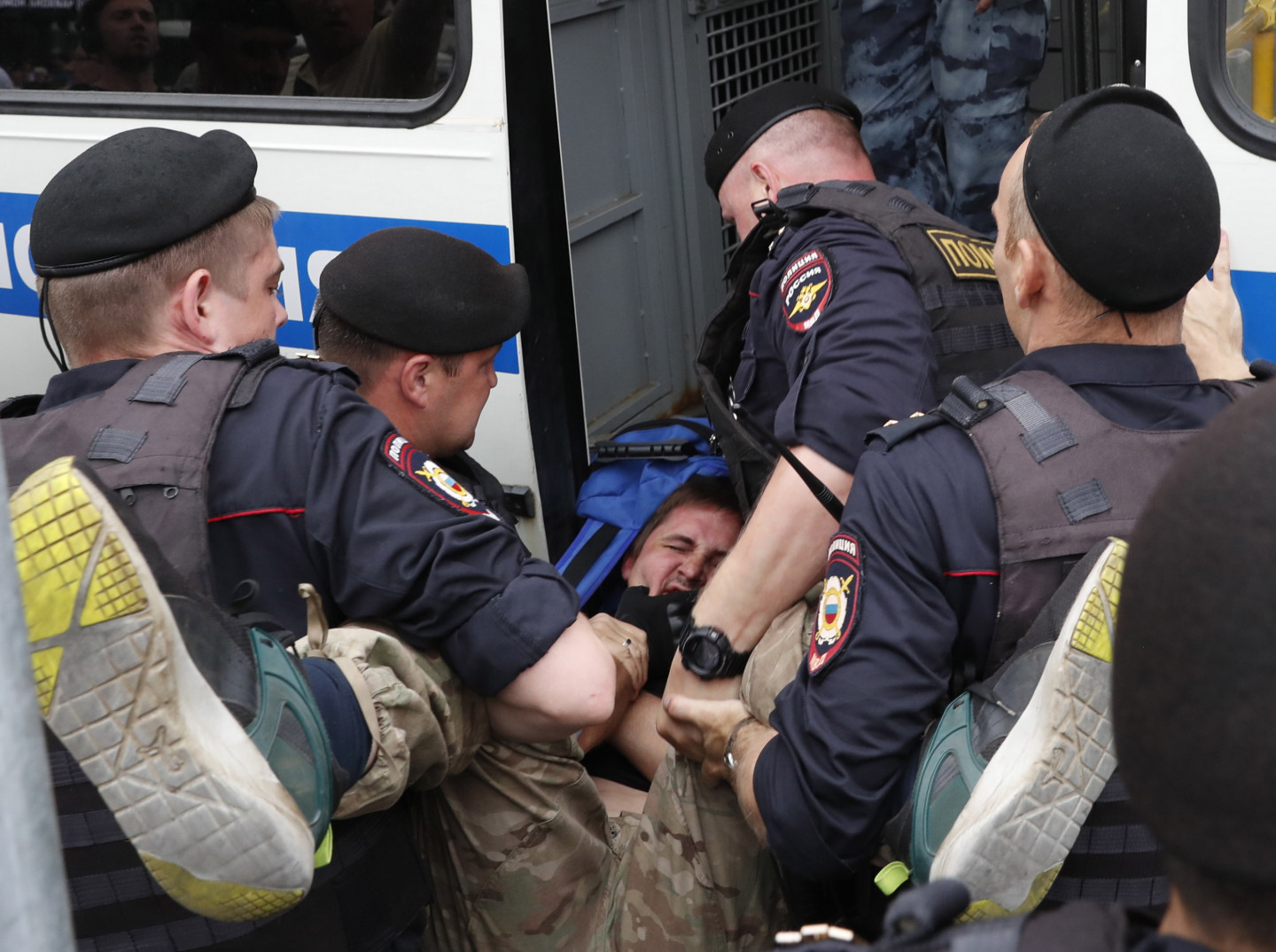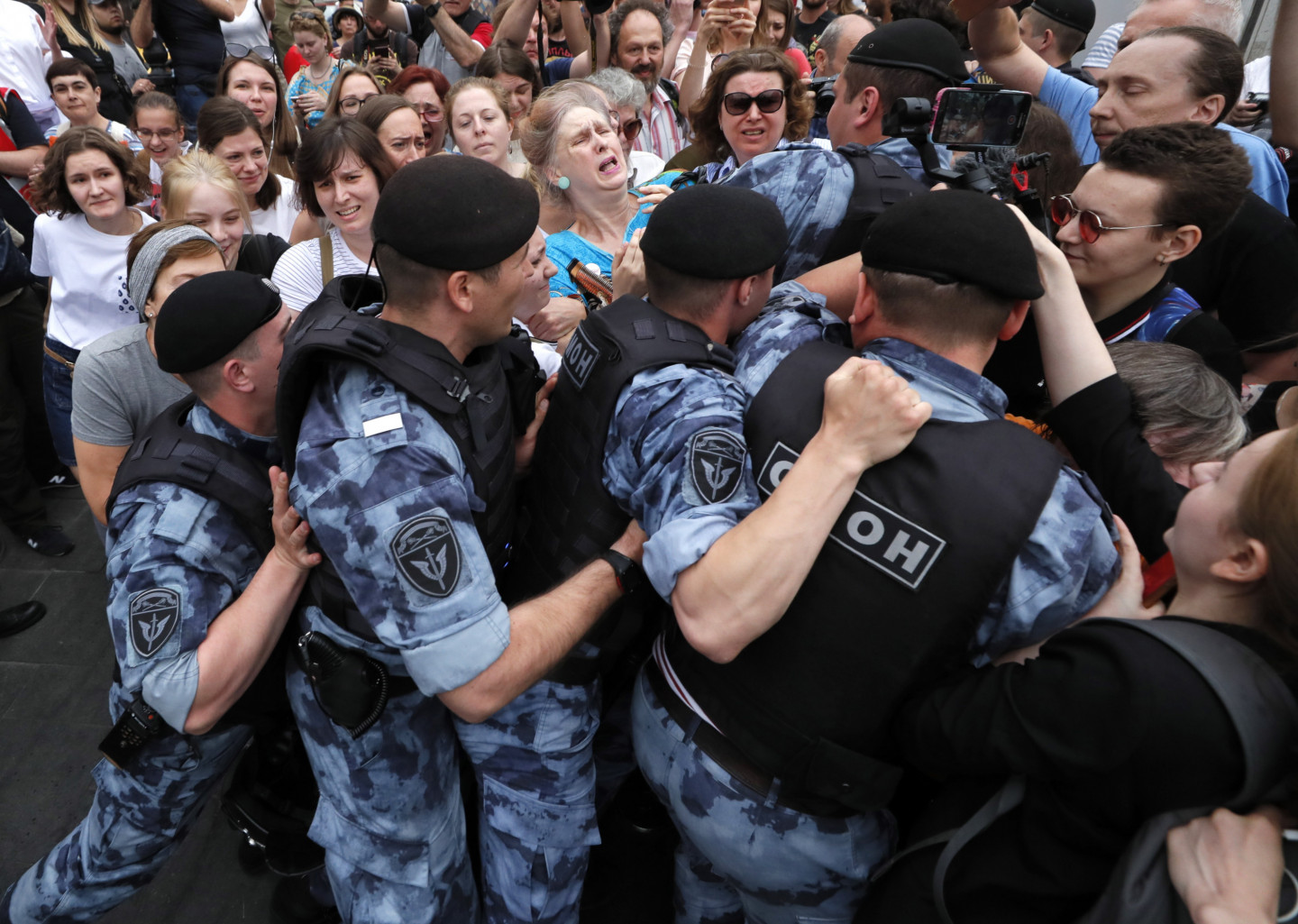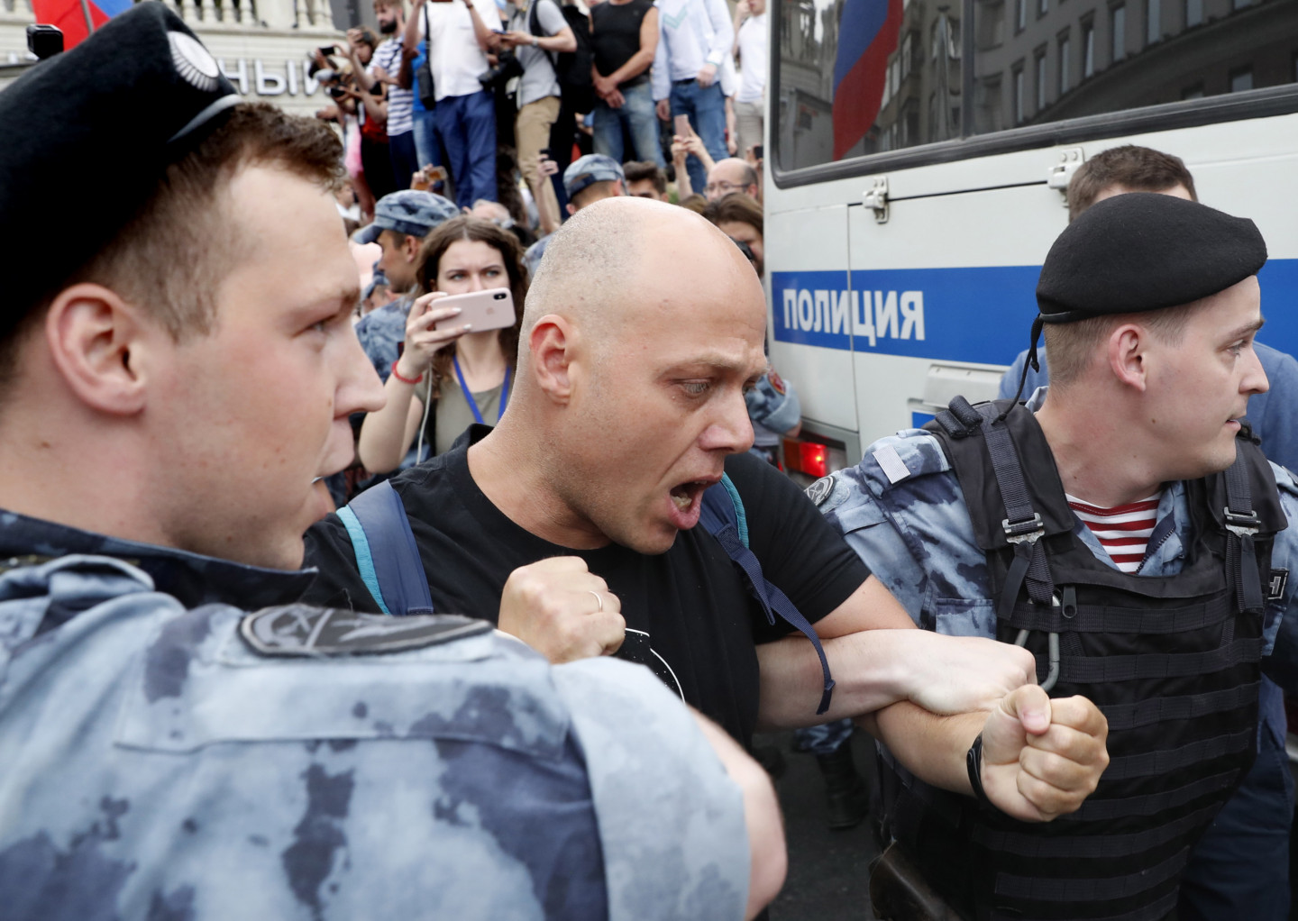 Krievijas policija un nacionālā gvarde trešdien Maskavā gājiena laikā tīmekļa medija "Meduza" žurnālista Ivana Golunova atbalstam aizturējusi vairāk nekā 400 cilvēku, liecina organizācijas "OVD-Info" dati. Kā ziņo "Meduza" korespondents, daudzi no aizturētajiem bija uzvilkuši kreklus ar uzrakstu "Es/Mēs Ivans Golunovs". Aizturēto vidū ir "Meduza", "Reuters", "Kommersant", "Doždj" un "MBH-Medija" žurnālisti, kā arī Vācijas izdevuma "Der Spiegel" pārstāvis un Francijas žurnāla "Le Temps" fotogrāfs. Tāpat aizturēts opozīcijas līderis Aleksejs Navaļnijs. "Varasiestādes ir ļoti nobijušās no fantastiskās un vienprātīgās solidaritātes demonstrēšanas Golunova lietā," tviterī paziņojis Navaļnijs. "Tāpēc viņiem ir svarīgi sagraut kopīgo solidaritāti un pēc tam iebiedēt un ielikt cietumā tos, kas neatkāpjas." Kā vēsta "Radio Brīvība", policija vispirms aiztur žurnālistus un fotogrāfus. Radiostacija lēš, ka gājienā piedalās vismaz tūkstotis cilvēku. Savukārt Maskavas policija paziņojusi, ka akcijā piedalījušies aptuveni 1200 cilvēku, no kuriem 200 aizturēti. Aizturētajiem par piedalīšanos nesankcionētā protesta akcijā draud līdz 20 dienām ilgs administratīvais arests. Daļai gājiena dalībnieku izdevies nonākt tā galamērķī - pie Iekšlietu ministrijas Galvenās pārvaldes ēkas, kur notiek individuāli piketi. Gājiens notiek, neskatoties uz krimināllietas izbeigšanu pret Golunovu un viņa atbrīvošanu no mājas aresta iepriekšējā dienā. Gājiena rīkotāji nolēma neatteikties no akcijas, pieprasot veikt izmeklēšanu un sodīt vainīgos par krimināllietas safabricēšanu. Maskavas dome atteicās saskaņot gājienu, apgalvojot, ka tas varētu traucēt trešdien atzīmējamo Krievijas dienu. Arī Krievijas otras lielākās pilsētas Sanktpēterburgas centrā trešdien pulcējās aptuveni 100 cilvēku, kas pieprasīja atbrīvot policijas patvaļas upurus. Jau vēstīts, ka Golunovs otrdien atbrīvots pēc tam, kad tika pieņemts lēmums izbeigt krimināllietu pret viņu. Krievijas iekšlietu ministrs Vladimirs Kolokoļcevs otrdien paziņoja, ka pieņemts lēmums 36 gadus veco Golunovu atbrīvot no atbildības un izbeigt krimināllietu pret viņu. Šāds lēmums pieņemts, jo nav pierādījumu viņa vainai. Golunovs, kurš strādā Rīgā bāzētajā krievu tīmekļa medijā "Meduza", tika aizturēts pagājušajā ceturtdienā Maskavā un viņam tika izvirzītas apsūdzības mēģinājumā tirgot narkotikas, par ko draud 10 līdz 20 gadu cietumsods, un sestdien viņam noteikts pirmstiesas drošības līdzeklis mājas arests. Izmeklētāji skaidroja, ka Golunovs esot mēģinājis pārdot narkotisko vielu mefedronu. Golunovs uzstāj, ka divas paciņas ar nezināmu vielu viņam "piesviestas". Kolokoļcevs otrdien arī pavēstīja, ka no amata atstādināti tiesībsargājošo iestāžu darbinieki, kas nodarbojās ar Golunova lietu. Pret policistiem, kas aizturēja žurnālistu, uzsākta pārbaude.