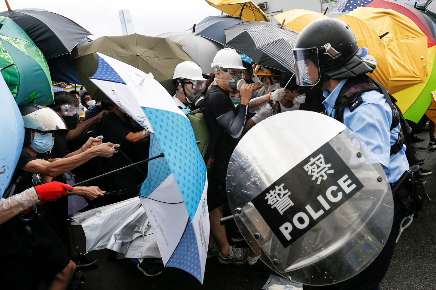 Honkongas policija pirmdienas rītā lika lietā stekus un piparu gāzi pret protestētājiem, kas bija sapulcējušies uz ceļa līdzās pilsētas valdības kompleksam. Demonstranti bija palikuši līdzās kompleksam visu nakti, lai rīkotu protestus plkst.8 karoga pacelšanas ceremonijā par godu 22 gadiem kopš Honkongas pievienošanas Ķīnai. Protesti pret Ķīnas valdību Honkongā 1.jūlijā notiek katru gadu, bet šogad situācija ir īpaši spraiga, jo Honkongu satricinājuši protesti pret strīdīgus vērtējumus izsaukušo likumprojektu par aizdomās turēto izdošanu Ķīnai. Vēlāk pirmdien paredzēta demonstrācija, kuru rīko organizācija "Civil Human Rights Fronts", kas koordinēja divas demonstrācijas pret izdošanas likumprojektu ar rekordlielu dalībnieku skaitu - vienu un diviem miljoniem cilvēku. Honkongas līdere Kerija Lama solījusi apturēt strīdīgā likumprojekta izskatīšanu, tomēr citām protestētāju prasībām nav piekāpusies, arī ne attiecībā uz likumprojekta pilnīgu atsaukšanu vai atkāpšanos. Viņa arī noraidījusi aicinājumus veikt neatkarīgu izmeklēšanu par policijas vardarbību 12.jūnija protestos. Kaut arī Lama atvainojusies divas reizes, sabiedrība atvainošanos nav pieņēmusi, un Lamas atbalsta reitings šobrīd noslīdējis līdz zemākajām atzīmēm kopš stāšanās amatā 2017.gadā. Honkongai kā bijušajai Lielbritānijas kolonijai, kas kopš 1997.gada iekļauta Ķīnas sastāvā, tomēr ir autonomas teritorijas statuss, atšķirīga tieslietu sistēma, un tās pilsoņi bauda plašākas tiesības nekā kontinentālajā Ķīnā. Īpašās tiesības un brīvības noteiktas līdz 2047.gadam.