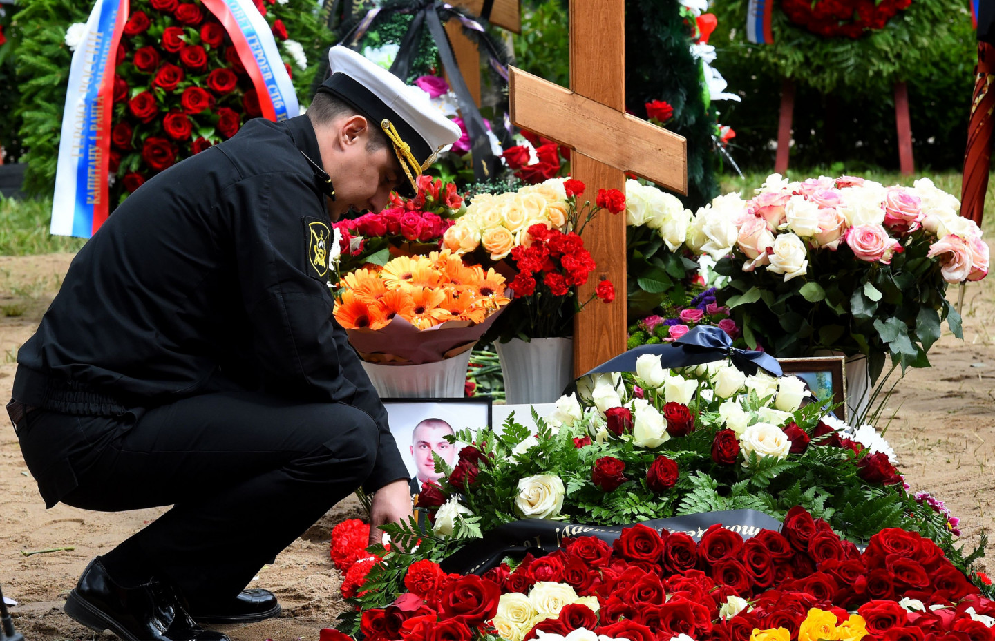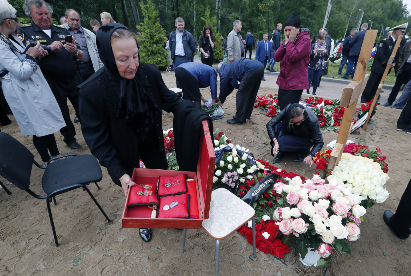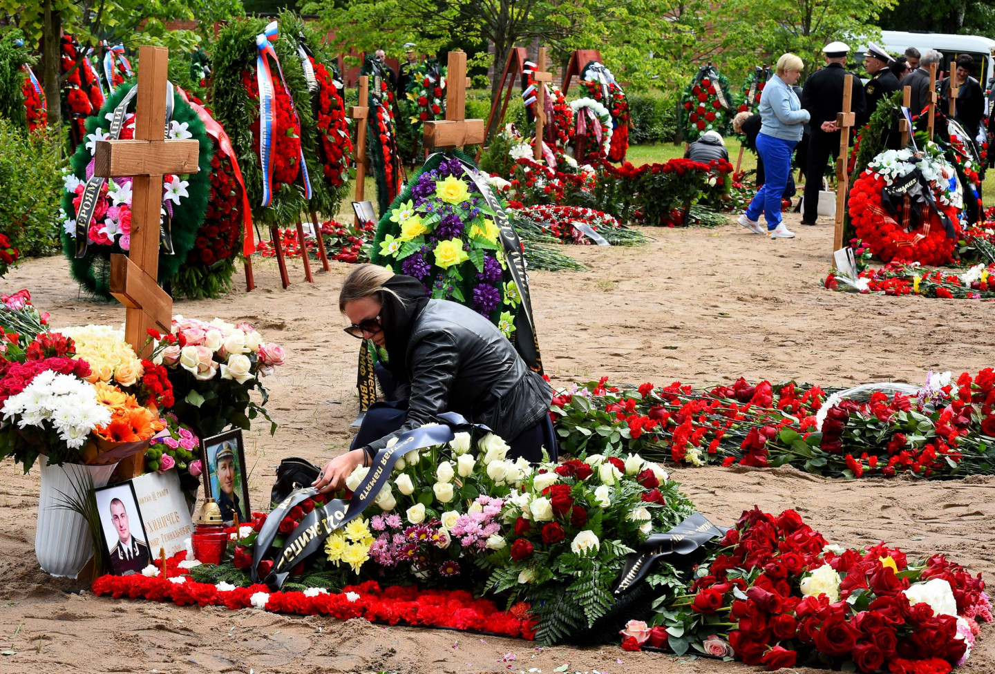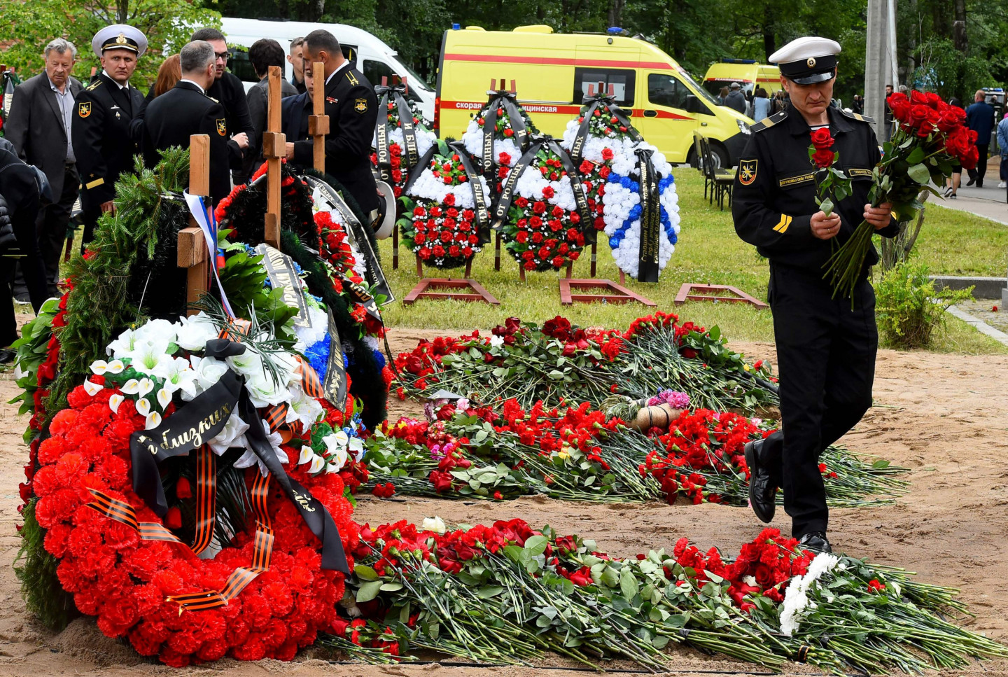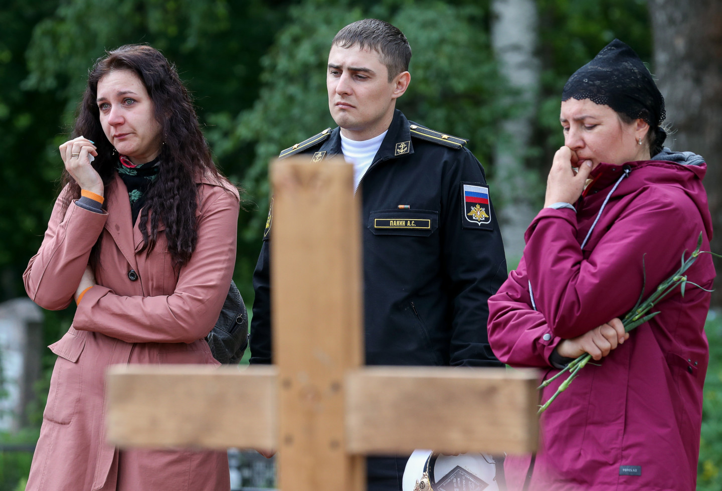 Ugunsgrēkā, kas izcēlies Krievijas karaflotes dziļjūras kodolzemūdenē "AS-12", 2.jūlijā gājuši bojā 14 jūrnieki. Šodien kapsētā Krievijā viņi guldīti zemes klēpī.