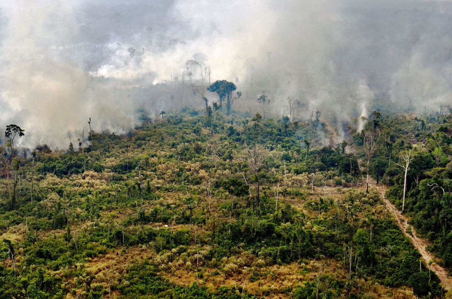 Jau ziņots, ka Brazīlijā izcēlušies postoši ugunsgrēki, kas iznīcina Amazones lietus mežus. Brazīlija svētdien nosūtīja divas armijas lidmašīnas "Hercules C-130" palīdzēt cīņā pret ugunsgrēkiem Amazones lietusmežos, kur sākušiem simtiem jaunu ugunsgrēku. Aizsardzības ministrija paziņoja, ka lidmašīnas sākušas mest tūkstošiem litru ūdens Portuvelju, Rondonijas štatā Brazīlijas ziemeļrietumos, kuru pārņēmuši biezi dūmi. Ugunsgrēki pārņēmuši plašas teritorijas netālu no Bolīvijas robežas, pastiprinot gaisa piesārņojumu pasaules lielākajā lietusmežā. Eksperti norādījuši, ka šogad problēma saasinājusies, ko lauksaimniecības platību iegūšanai nepieciešamā izciršana notikusi mēnešiem ilgušā sausuma laikā. Vismaz septiņi Brazīlijas štati, tostarp Rondonija, ir lūguši armijas palīdzību Amazonē, kur bāzēti vairāk nekā 43 000 karavīru, kas ir pieejami cīņā pret ugunsgrēkiem, paziņojušas amatpersonas.