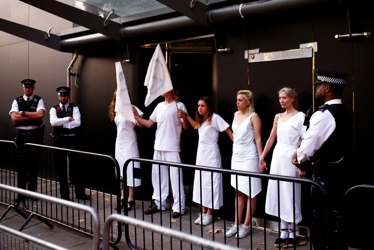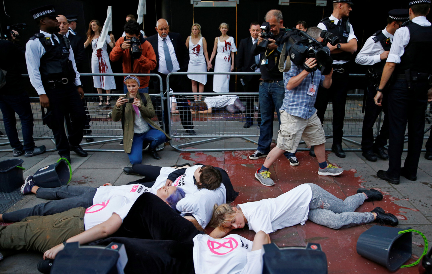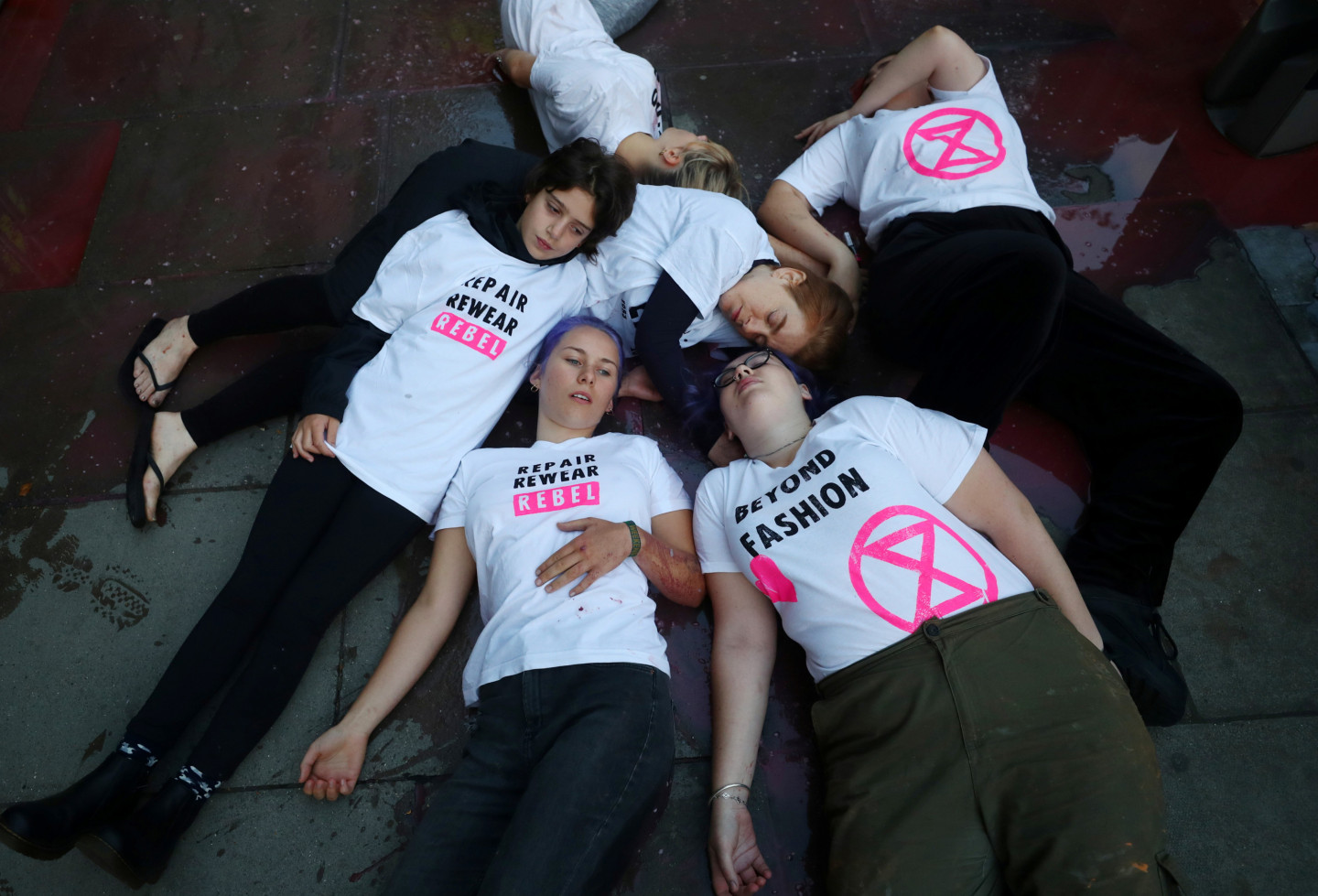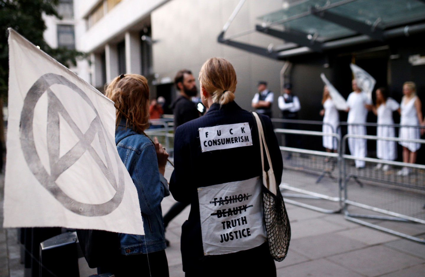 Kustības "Extinction Rebellion" vides aktīvisti piektdien pielīmējušies pie ieejas ēkā, kur norisinās Londonas modes nedēļa. Kustība paziņoja, ka pieci tās aktīvisti notriepuši sevi ar mākslīgajām asinīm un aizšķērsojuši ieeju pasākumā, lai protestētu pret modes devumu "klimata un ekoloģiskajā krīzē". "Extinction Rebellion" informēja, ka plāno protestēt piecas dienas. Londonas Modes nedēļa sākas šodien un ilgs līdz otrdienai.