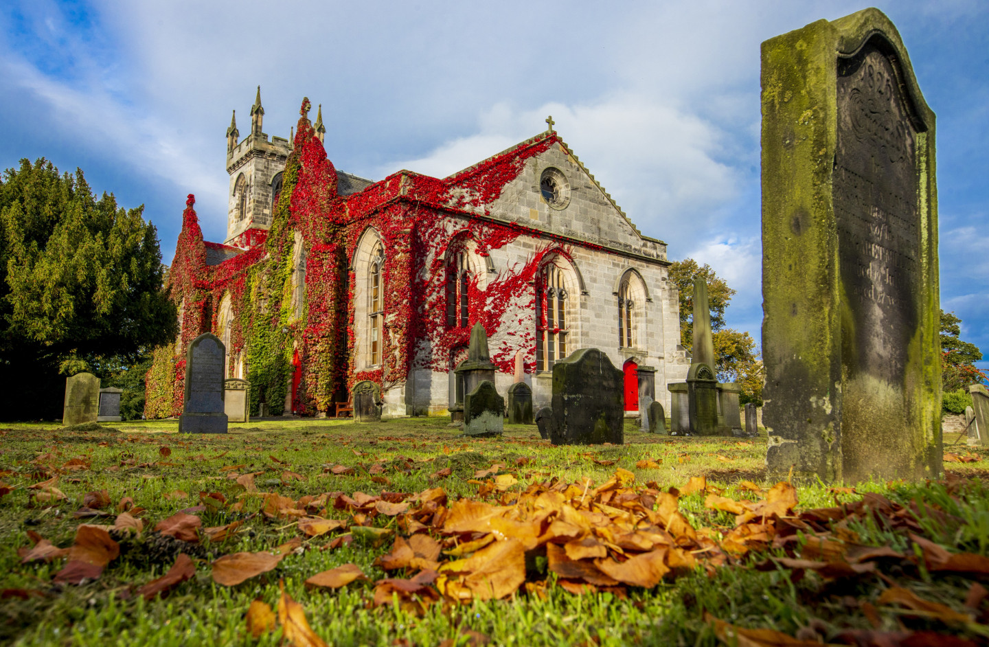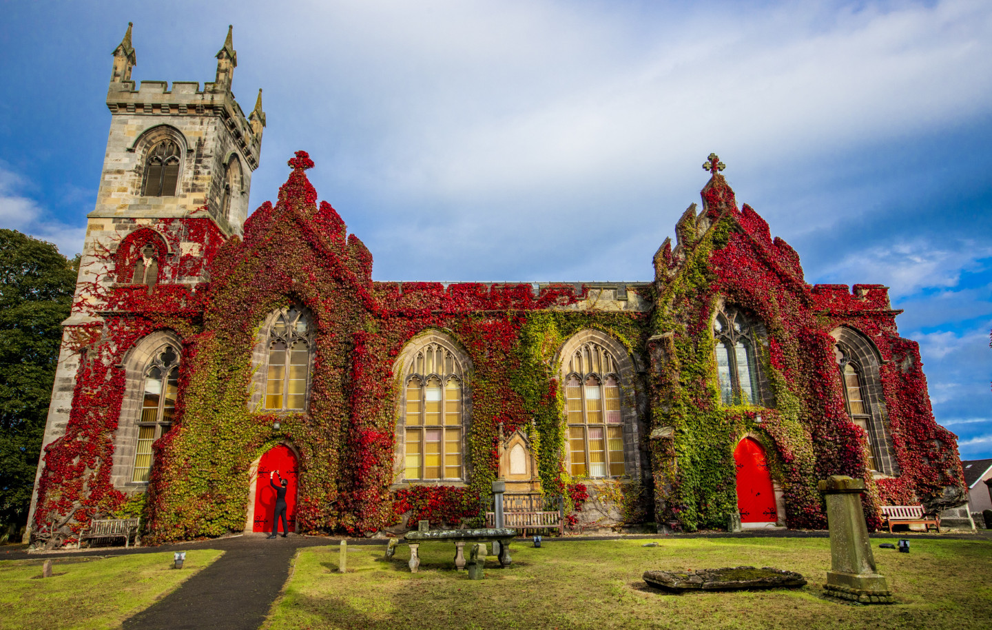 Ēka Edinburgā rudenī pārvērtusies gluži par pasaku namiņu