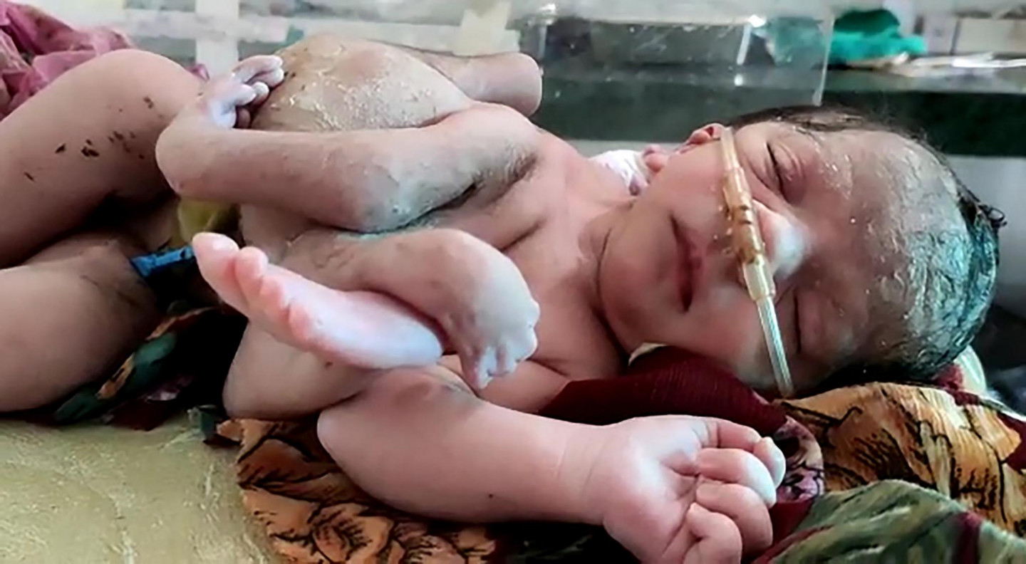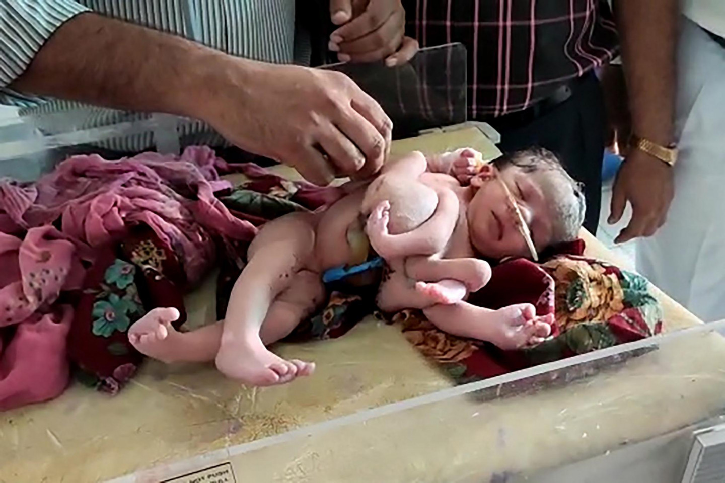 Tā izskatās meitene, kura piedzima ar četrām kājām un trim rokām
