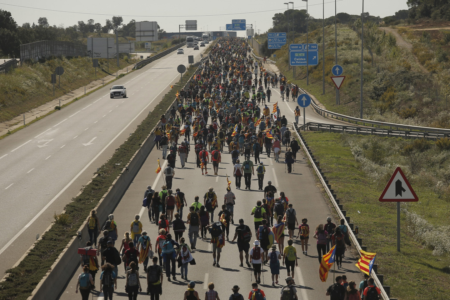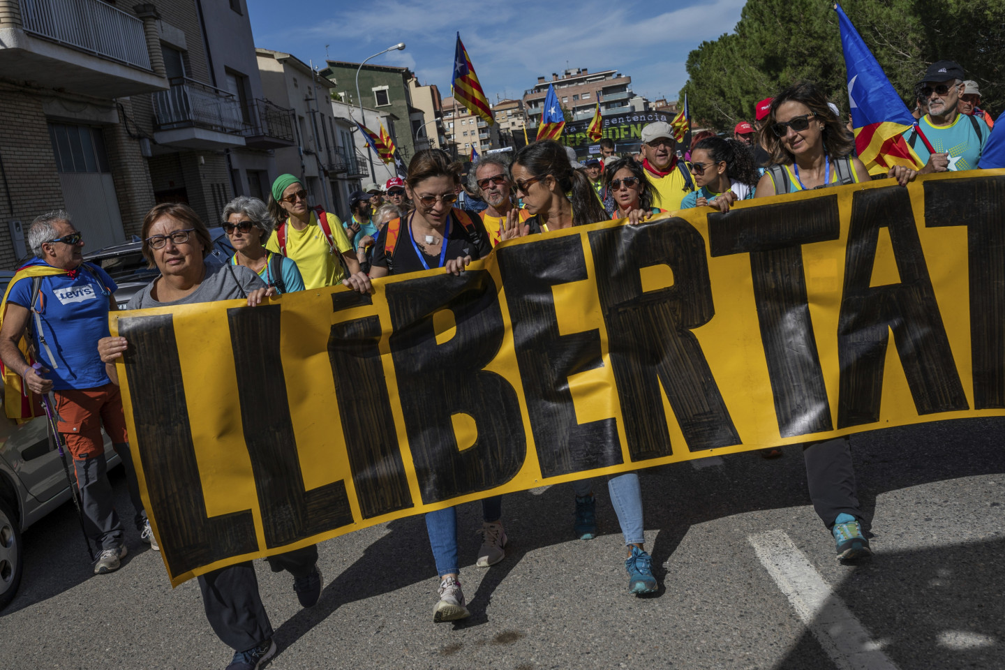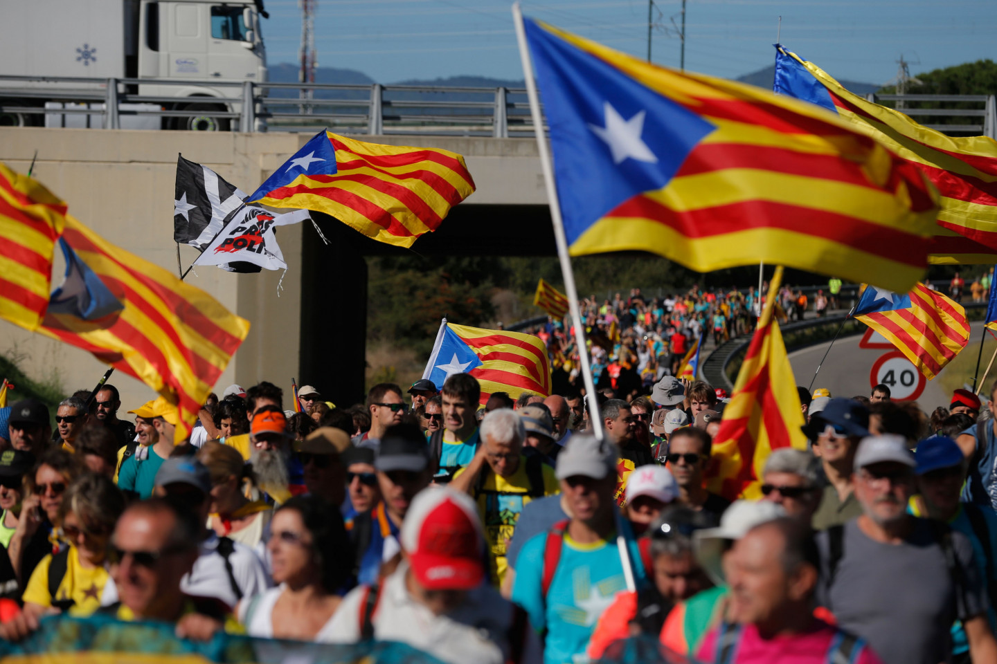 Neskatoties uz Madrides brīdinājumiem, Katalonijā trešdien atsākušies protesti pret cietumsodu piespriešanu deviņiem separātistu līderiem. Madride paziņojusi, ka rīkosies stingri un atbilstoši, lai uzturētu kārtību. Barselonā protestētāji apmētāja policistus ar akmeņiem, petardēm un citiem priekšmetiem un aizdedzināja atkritumu tvertnes. Policija aizturēja 30 cilvēkus. Barselonā, kā arī citviet Katalonijā protestētāji nobloķējuši ceļus un vilcienu satiksmi. Aktīvisti, kas atbalsta Katalonijas atdalīšanos no Spānijas, no vairākām pašvaldībām devušies gājienos uz Barselonu. Šos protestus rīko organizācijas - Katalāņu Nacionālā sapulce (ANC) un "Omnium Cultural". Protestētāji plāno sasniegt Barselonu piektdien, kad Katalonijas neatkarības atbalstītāji un vietējās arodbiedrības plāno ģenerālstreiku un demonstrācijas visā reģionā. Otrdien Barselonā protesti sākās mierīgi, bet vēlāk izcēlās sadursmes ar policiju. Veselības aprūpes dienesta amatpersonas ziņo, ka pirmā palīdzība sniegta 125 cilvēkiem, bet reģionālā policija vēsta, ka ievainoti 43 policisti. Jau vēstīts, ka Spānijas Augstākā tiesa pirmdien piesprieda 13 gadu cietumsodu bijušajam Katalonijas vicepremjeram Urialam Džunkerasam, atzīstot viņu par vainīgu musināšanā uz dumpi un valsts līdzekļu izšķērdēšanā. Vēl trim katalāņu separātistu līderiem, kas stājās tiesas priekšā saistībā ar neatkarības referenduma sarīkošanu 2017.gadā, piespriesti 12 gadu ilgi cietumsodi, bet pieciem citiem apsūdzētajiem - nedaudz īsāki cietumsodi. Neilgi pēc sprieduma nolasīšanas tiesa izdeva jaunu starptautisko orderi Katalonijas ekspremjera Karlesa Pudždemona aizturēšanai, kurš aizbēga uz Beļģiju, lai izvairītos no tiesāšanas.