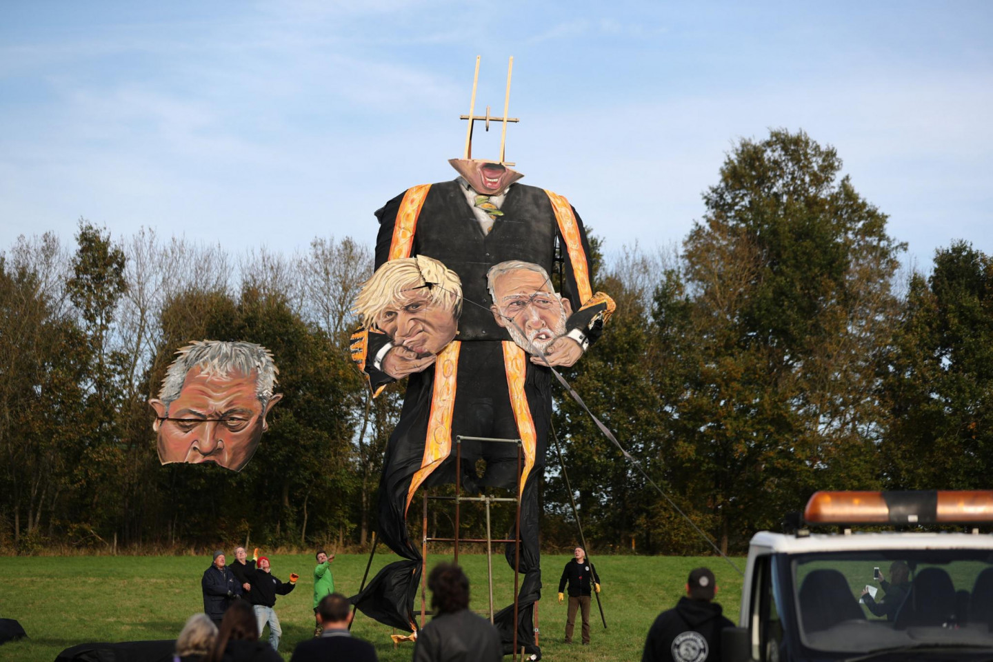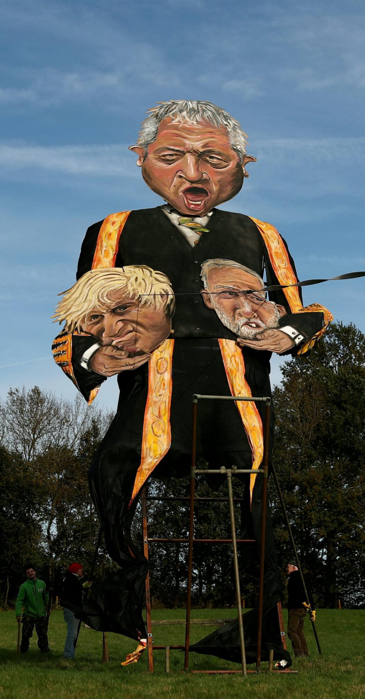 Anglijā tapusi iespaidīga izmēra vides instalācija, kurā kariķēts Boriss Džonsons.