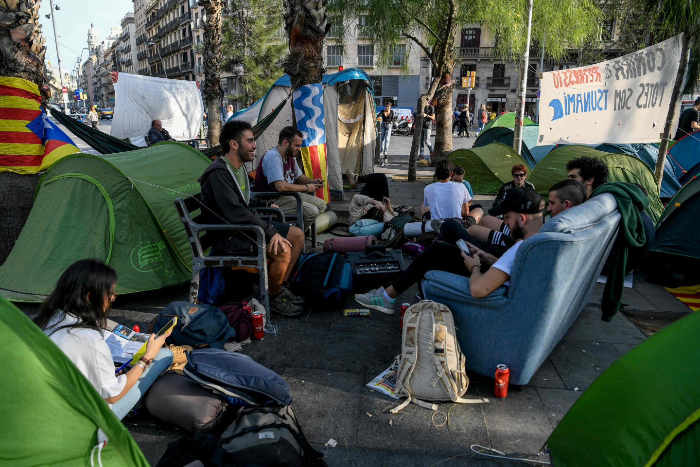Simtiem jaunu cilvēku, galvenokārt studenti, trešdien ierīkojuši protesta nometni Barselonas centrā, iestājoties pret cietumsodu piespriešanu katalāņu separātistu līderiem. Barselonas Universitātes laukumā uzslietas aptuveni 50 teltis, kas izdekorētas separātistu karogiem un plakātiem, no kuriem daudzi vēsta "Mēs esam 14.oktobra paaudze". Spānijas Augstākā tiesa 14.oktobrī piesprieda 13 gadu cietumsodu bijušajam Katalonijas vicepremjeram Urialam Džunkerasam, atzīstot viņu par vainīgu musināšanā uz dumpi un valsts līdzekļu izšķērdēšanā. Vēl trim katalāņu separātistu līderiem, kas stājās tiesas priekšā saistībā ar neatkarības referenduma sarīkošanu 2017.gadā, tika piespriesti 12 gadu ilgi cietumsodi, bet pieciem citiem apsūdzētajiem - nedaudz īsāki cietumsodi. Kopš sprieduma pasludināšanas Kataloniju pārņēmuši nemieri, kas bieži pārauguši vardarbībā, demonstrantiem apmētājot policistus ar akmeņiem un Molotova kokteiļiem, uz ko kārtības sargi atbildējuši ar stekiem, asaru gāzi un gumijas lodēm.