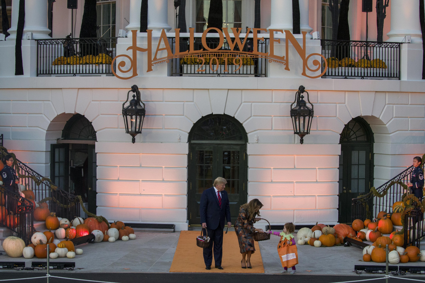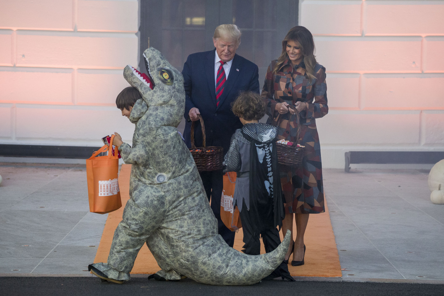 Tradicionāli ASV prezidents Donalds Tramps kopā ar sievu Melāniju Baltajā namā sagaidījuši Halovīna svinētājus.