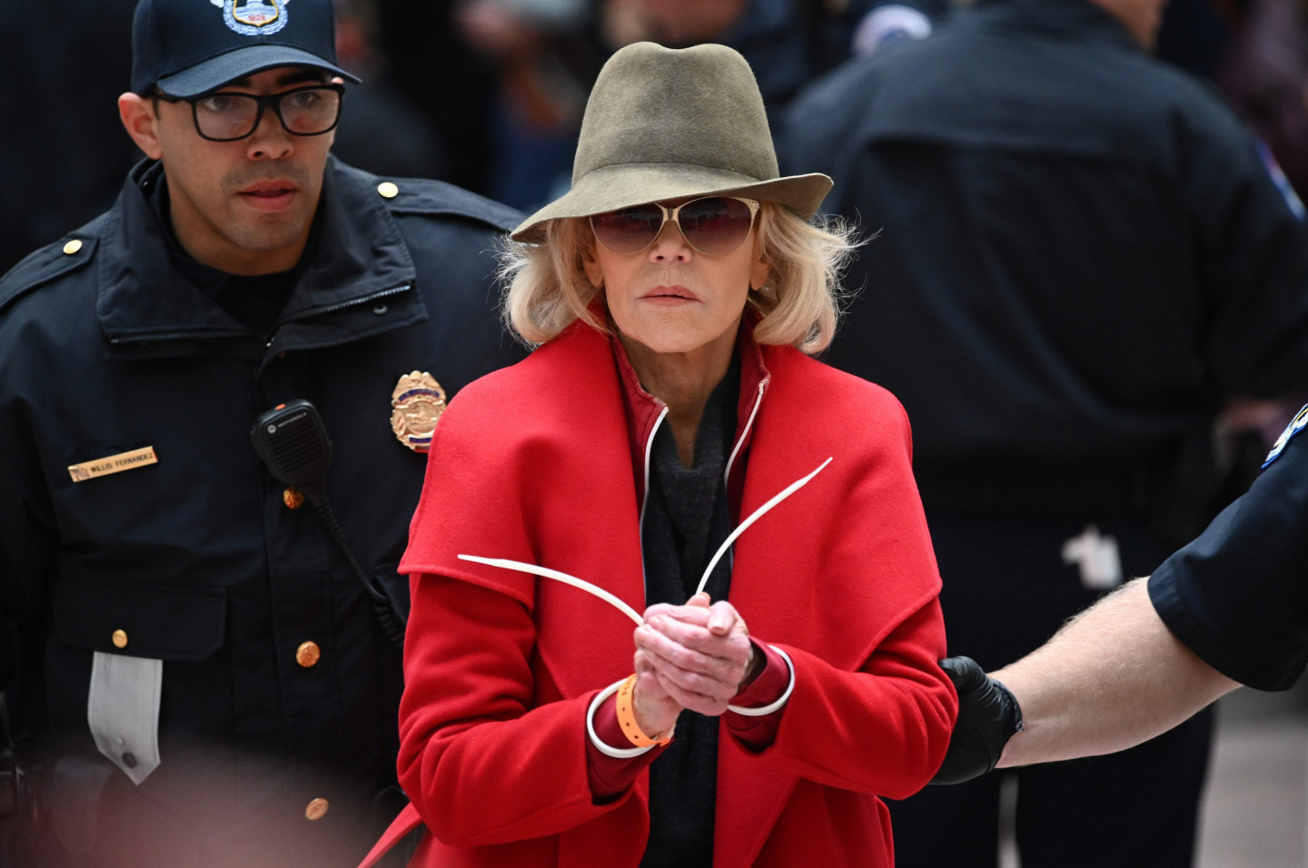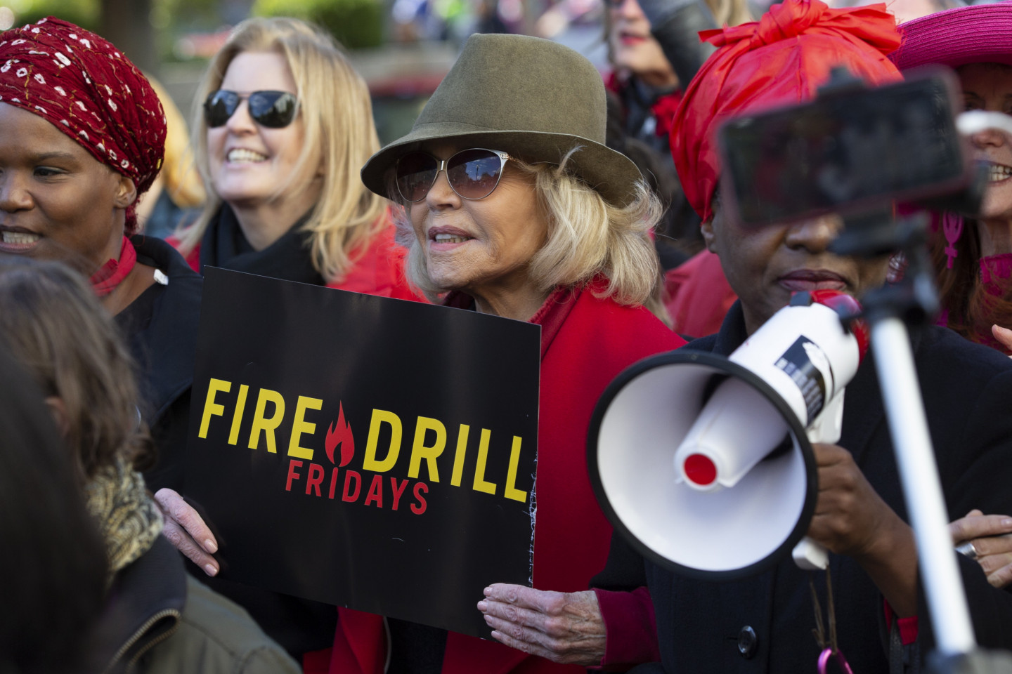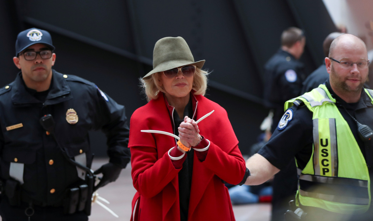 Holivudas leģenda un aktīviste Džeina Fonda piektdien Vašingtonā atkal aizturēta, protestējot pret politiķu nepietiekamo reakciju uz klimata izmaiņām. "Šoreiz mani varētu apcietināt uz nakti, un uz vienu nakti tas nav nekas traks. Baigā lieta," žurnālistiem jokojoties sacīja aktrise, atgādinot, ka šī nav pirmā reize, kad viņa tiek aizturēta. Fonda kopā ar vairākiem desmitiem aktīvistu, arī aktrisēm Rozannu Ārketi un Ketrinu Kīneri, piedalījās akcijā Senātā, kur demonstrācijas nav atļautas. Fonda, kas ir bijusi pacifiste un feminisma kustības aktīviste kopš 70.gadiem, sacīja, ka viņa klimata kustībā iesaistījusies, pateicoties zviedru aktīvistei Grētai Tūnbergai. "Ir daudz ceļu, kā cīnīties, bet mani iedvesmoja Grēta Tūnberga un jaunie studenti streikotāji visā pasaulē," skaidroja aktrise. "Es esmu slavenība. Šis ir veids, kā izmantot manu slavu, lai panāktu, ka izskan vēstījums - mums draud krīze, kas var noteikt to, vai mūsu bērniem un mazbērniem būs nākotne, kurā vispār var dzīvot." Jārīkojas ir steidzami, sacīja Fonda, kas 1972.gadā devās uz Vjetnamu, lai protestētu pret karu, ar to iemantojot Hanojas Džeinas iesauku.