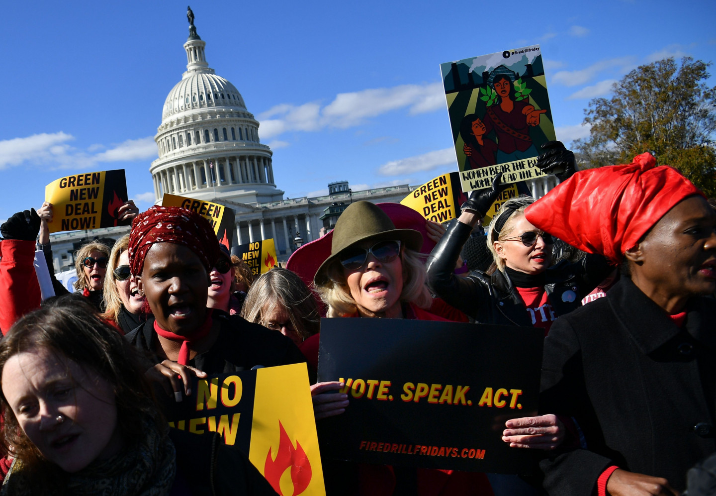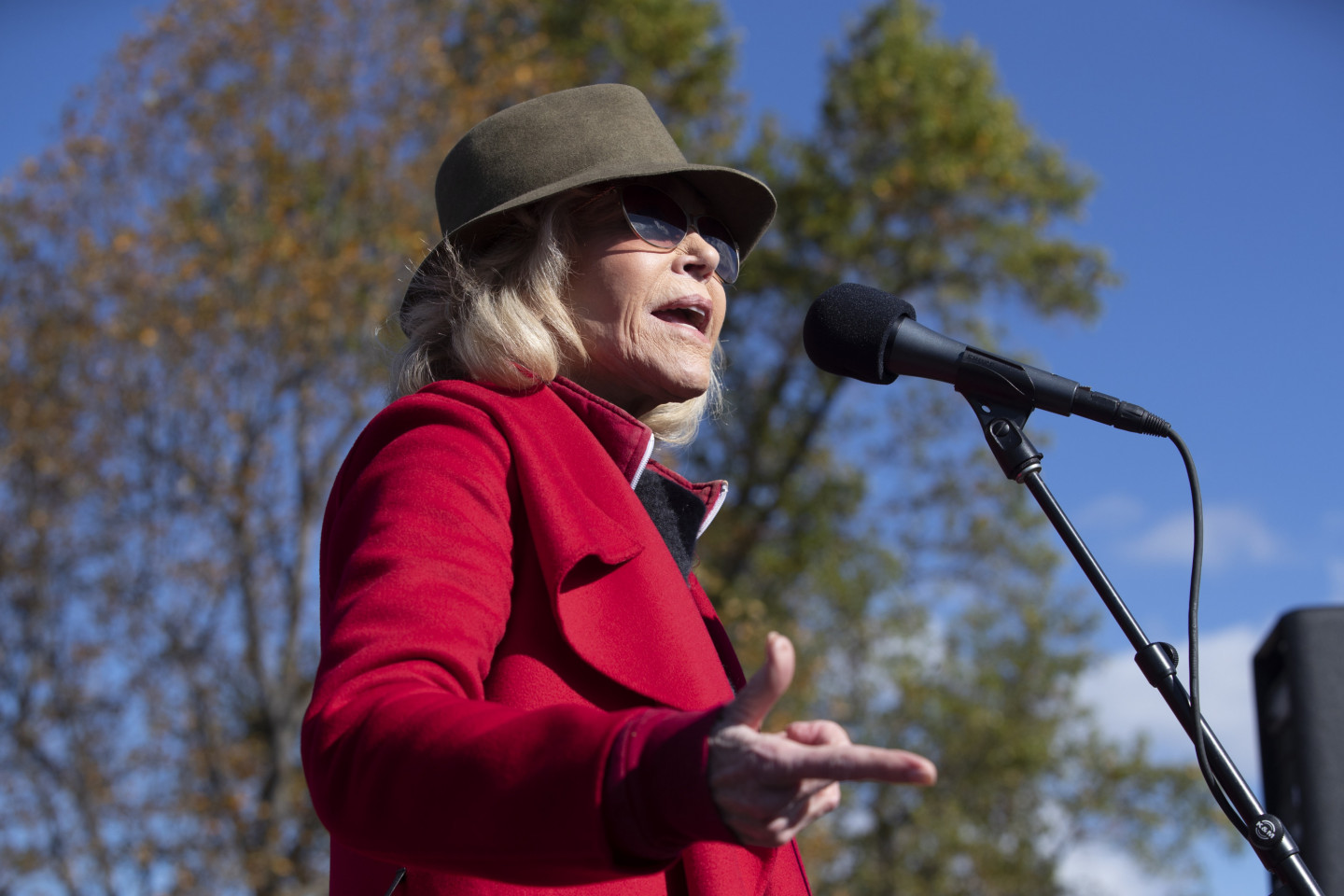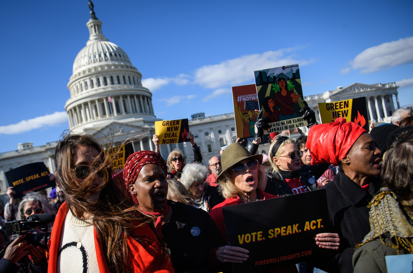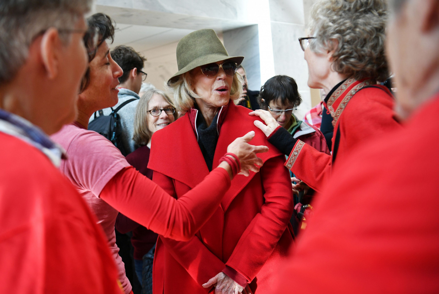 Holivudas leģenda un aktīviste Džeina Fonda piektdien Vašingtonā atkal aizturēta, protestējot pret politiķu nepietiekamo reakciju uz klimata izmaiņām. "Šoreiz mani varētu apcietināt uz nakti, un uz vienu nakti tas nav nekas traks. Baigā lieta," žurnālistiem jokojoties sacīja aktrise, atgādinot, ka šī nav pirmā reize, kad viņa tiek aizturēta. Fonda kopā ar vairākiem desmitiem aktīvistu, arī aktrisēm Rozannu Ārketi un Ketrinu Kīneri, piedalījās akcijā Senātā, kur demonstrācijas nav atļautas. Fonda, kas ir bijusi pacifiste un feminisma kustības aktīviste kopš 70.gadiem, sacīja, ka viņa klimata kustībā iesaistījusies, pateicoties zviedru aktīvistei Grētai Tūnbergai. "Ir daudz ceļu, kā cīnīties, bet mani iedvesmoja Grēta Tūnberga un jaunie studenti streikotāji visā pasaulē," skaidroja aktrise. "Es esmu slavenība. Šis ir veids, kā izmantot manu slavu, lai panāktu, ka izskan vēstījums - mums draud krīze, kas var noteikt to, vai mūsu bērniem un mazbērniem būs nākotne, kurā vispār var dzīvot." Jārīkojas ir steidzami, sacīja Fonda, kas 1972.gadā devās uz Vjetnamu, lai protestētu pret karu, ar to iemantojot Hanojas Džeinas iesauku.